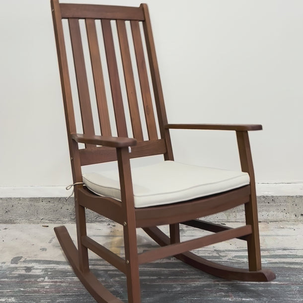 Classic comfort meets timeless style with the Rockwell Rocking Chair. Crafted in a warm walnut finish with a slatted back and gently curved rockers, it’s perfect for relaxing with a book, bringing a touch of heritage charm to your living space. The removable padded cushion in a neutral fabric adds extra comfort for everyday use.