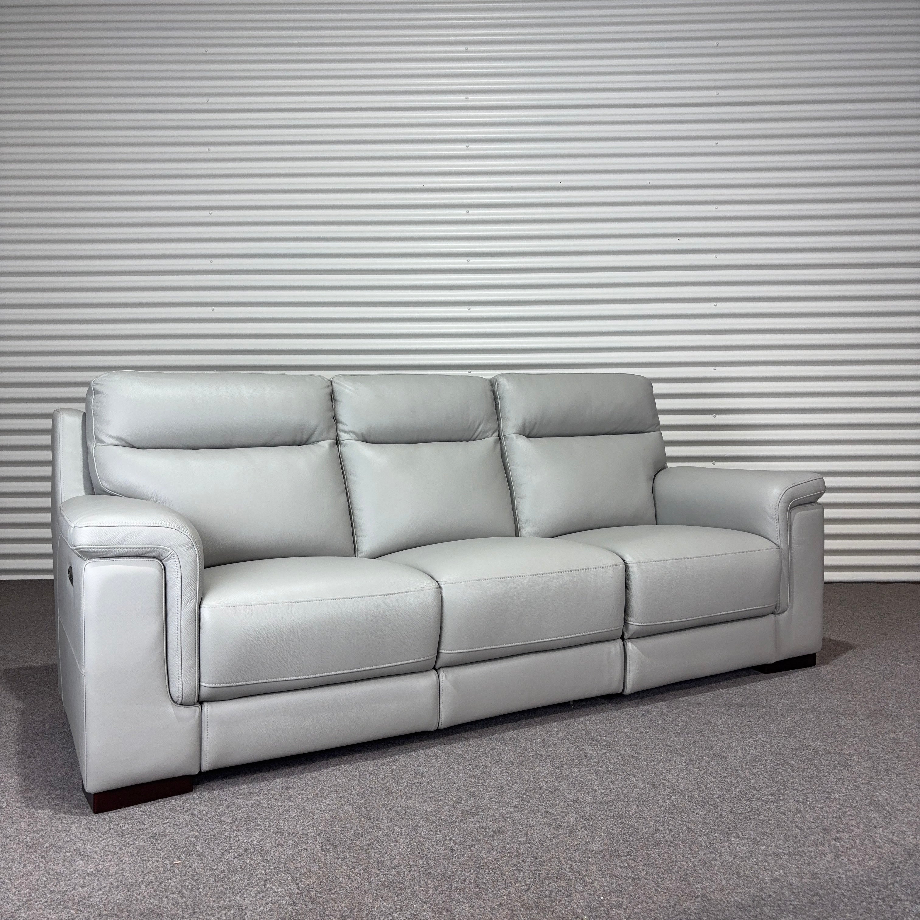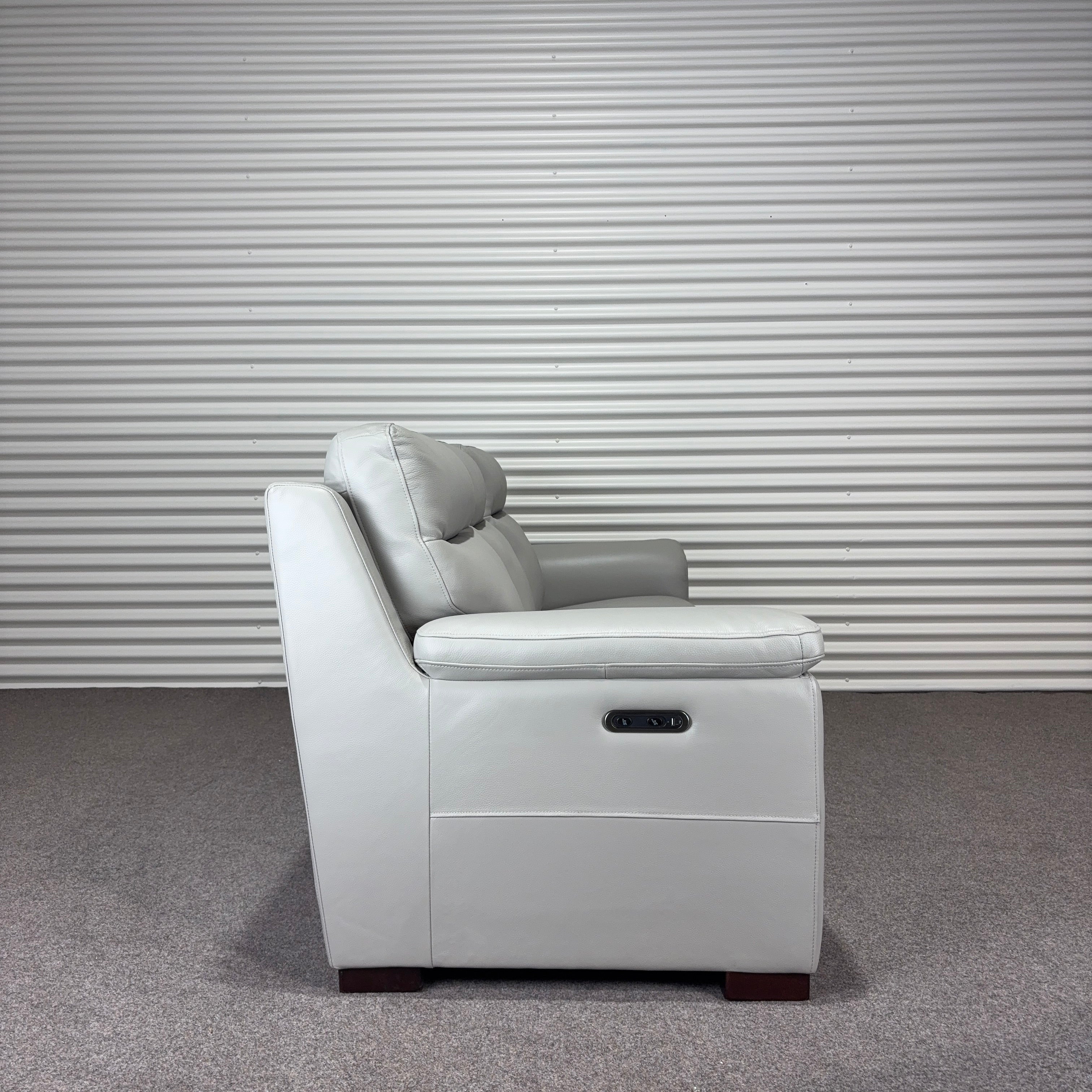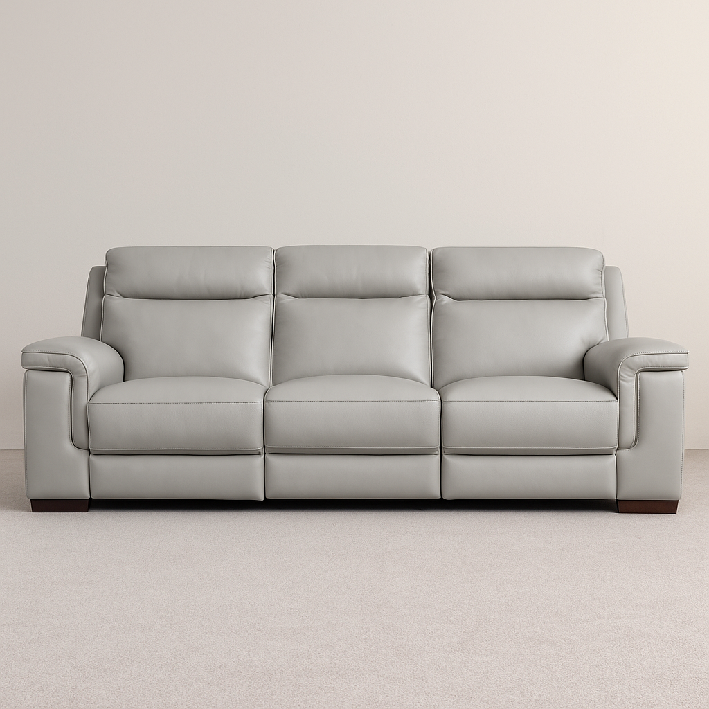 Settle into the Tiber 3-Seater Recliner Sofa — a sleek leather recliner built for those who want comfort without the bulk. Upholstered in supple light grey leather, it pairs smooth power recliners with tailored lines, making it as stylish as it is relaxing.