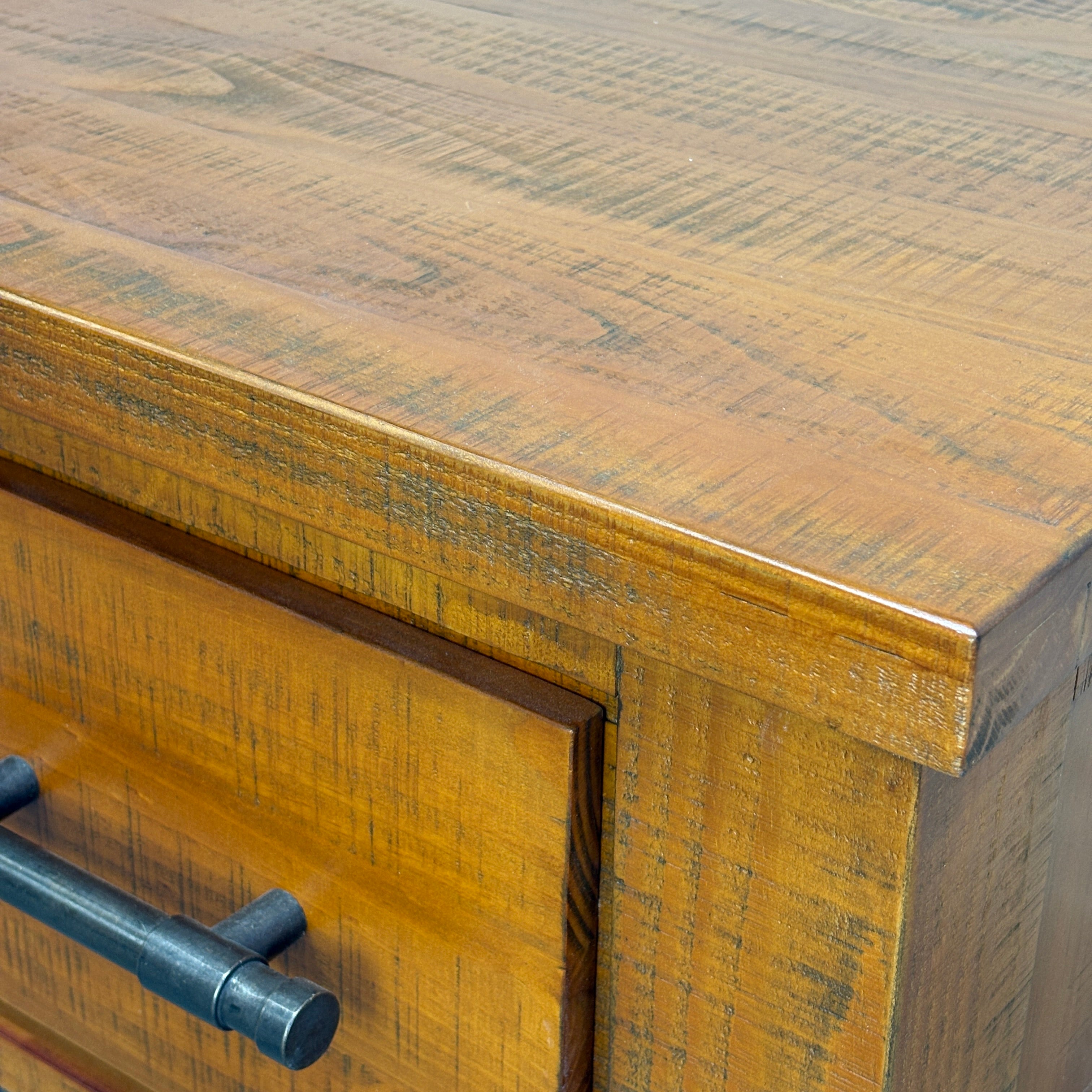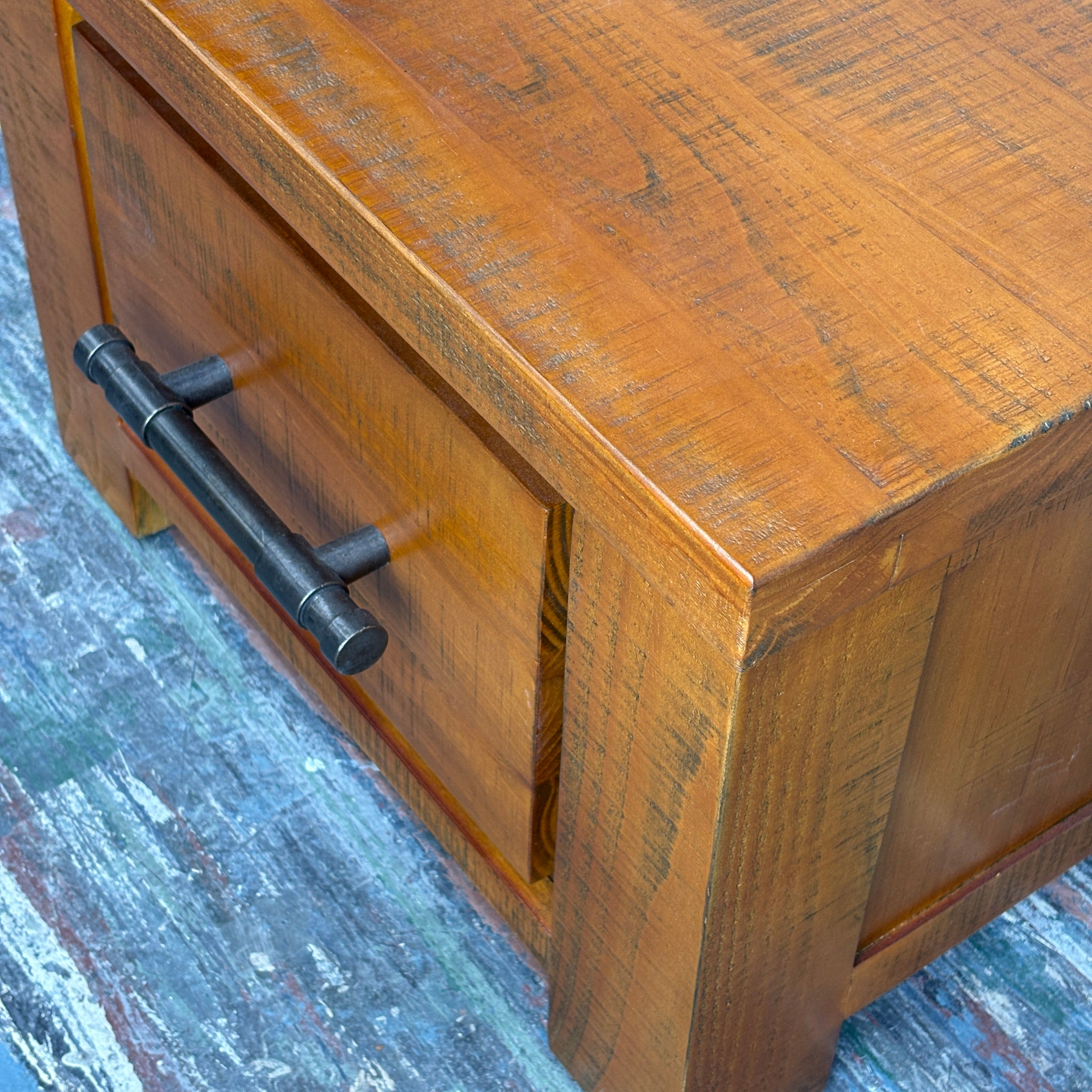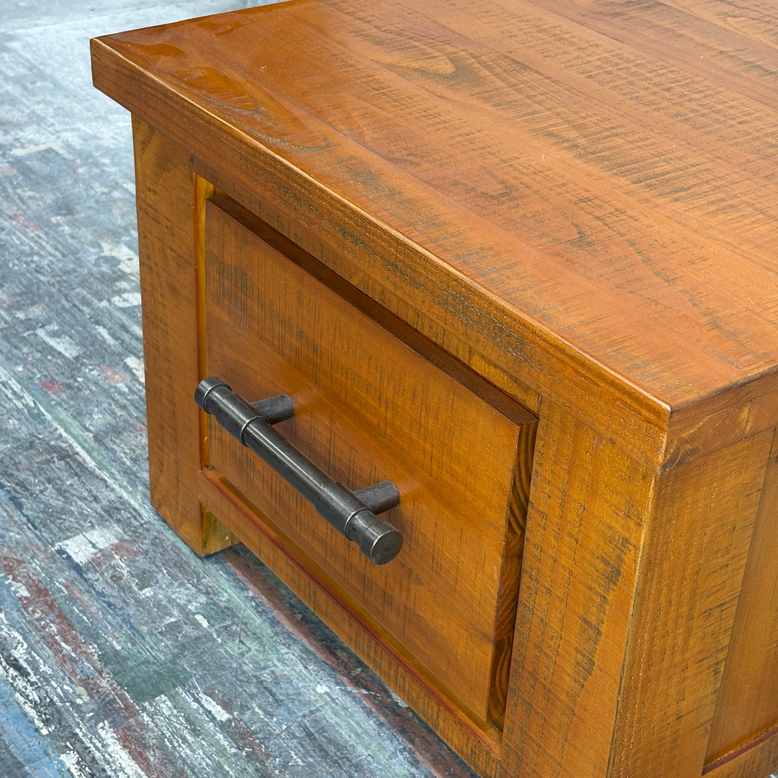 stylish, and practical — the Wanaka Lamp Table is the perfect accent piece for any living space. Finished in a warm chestnut pine tone, it carries the same rustic charm as the wider Wanaka range. With a deep drawer for storage and a robust build, it’s designed for everyday use while adding character to your room.