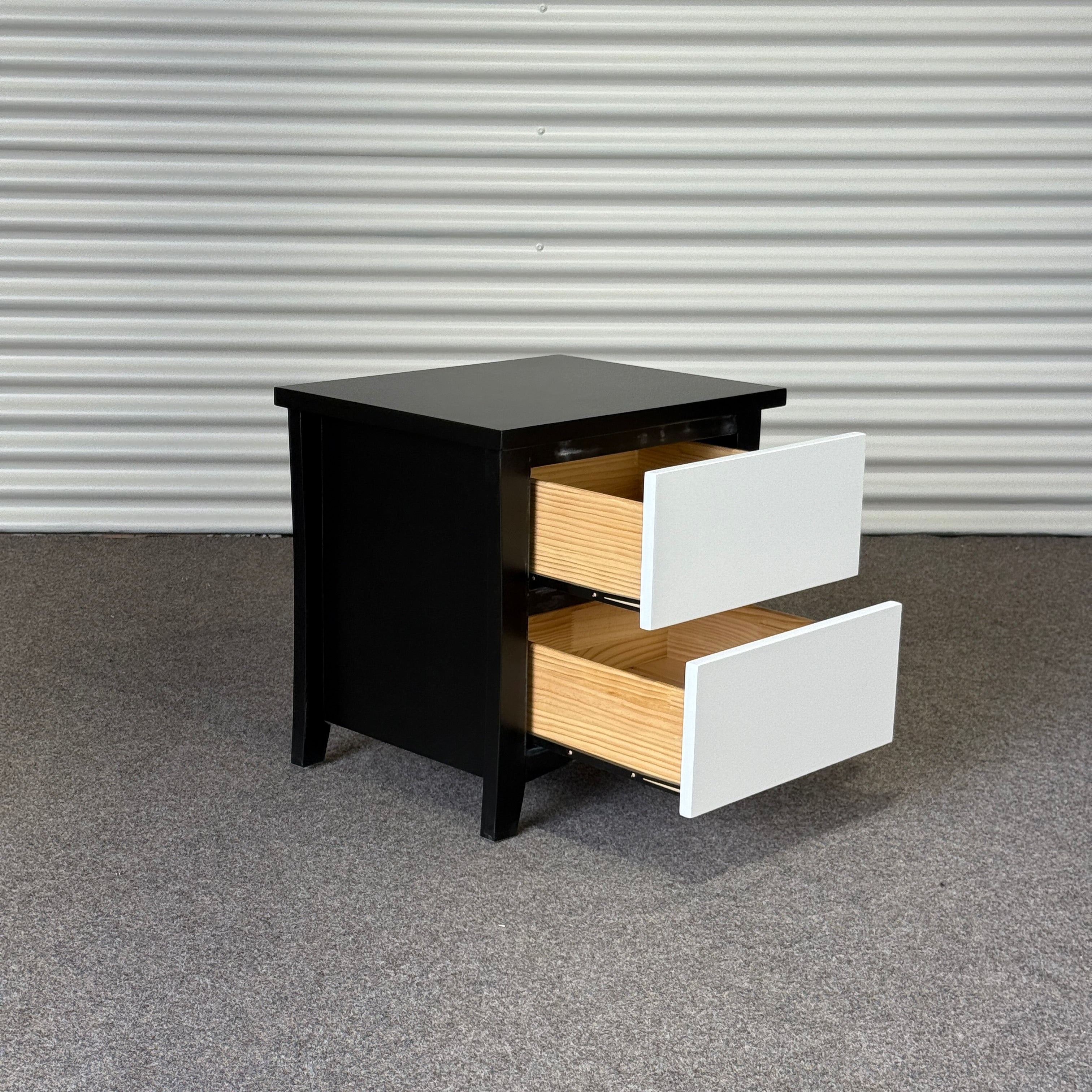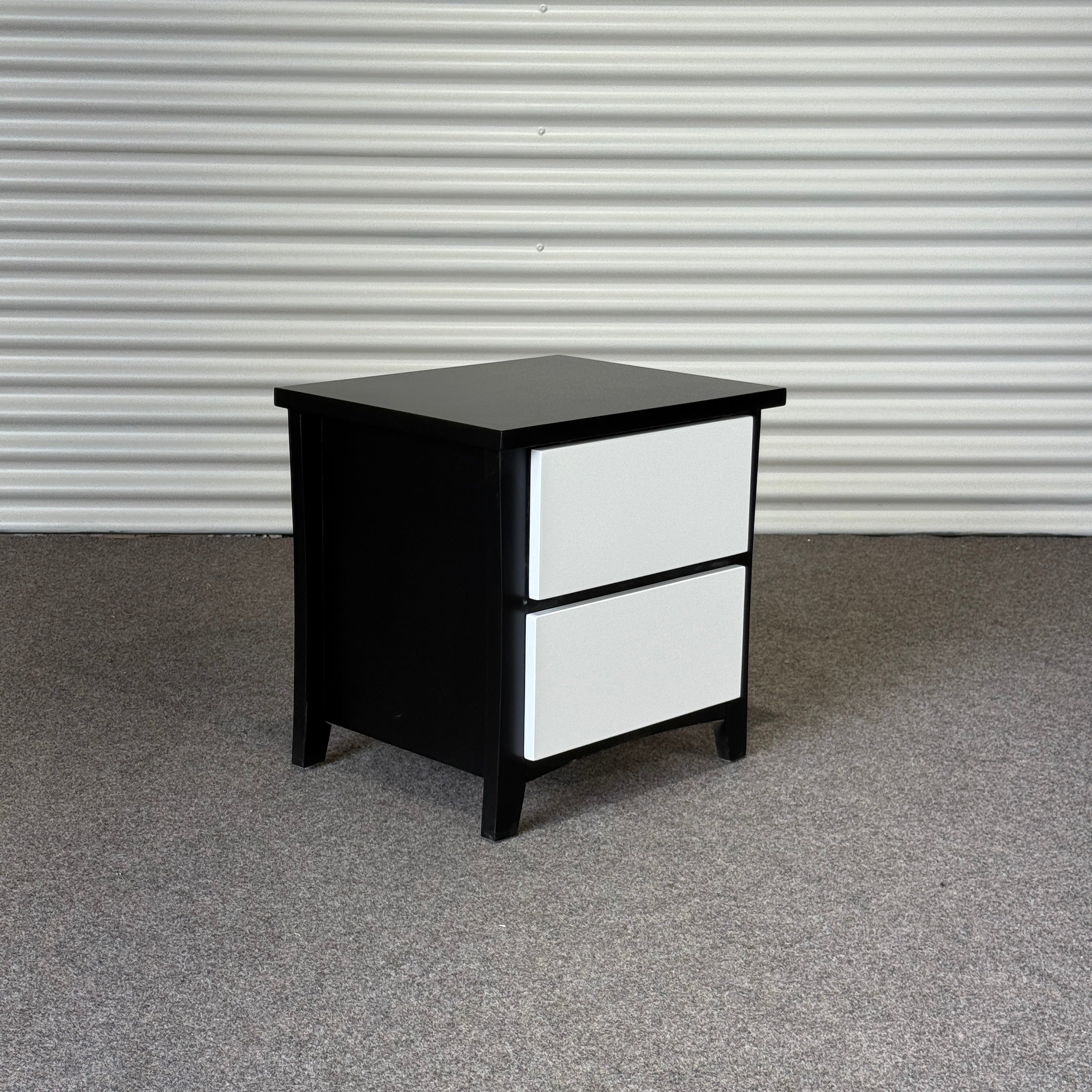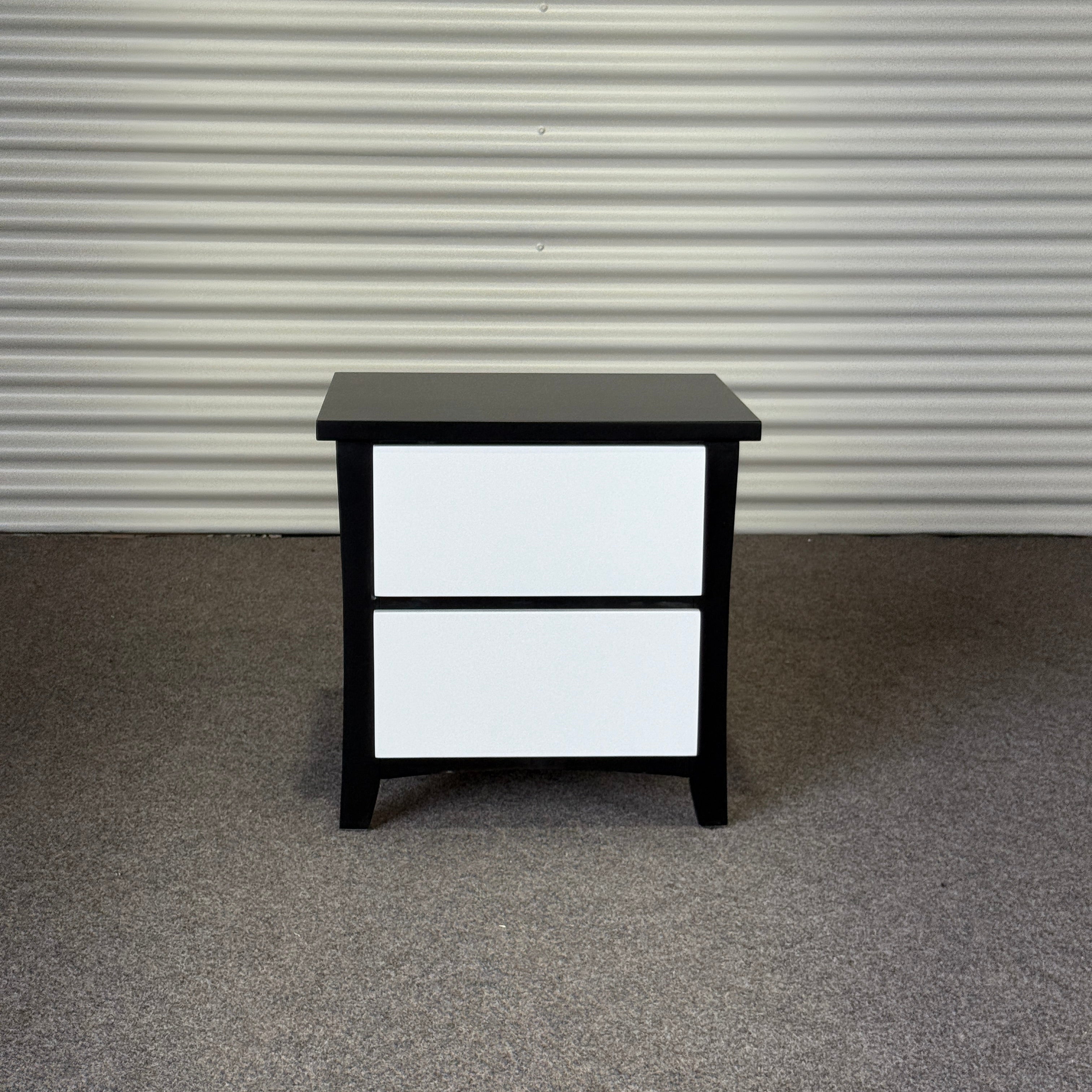 Featuring two spacious drawers for your nightly essentials, this piece blends beachy minimalism with clean modern lines. Its sturdy build and smooth finish make it a practical addition to any room, while the black frame and white drawer fronts give it that effortlessly coastal vibe.