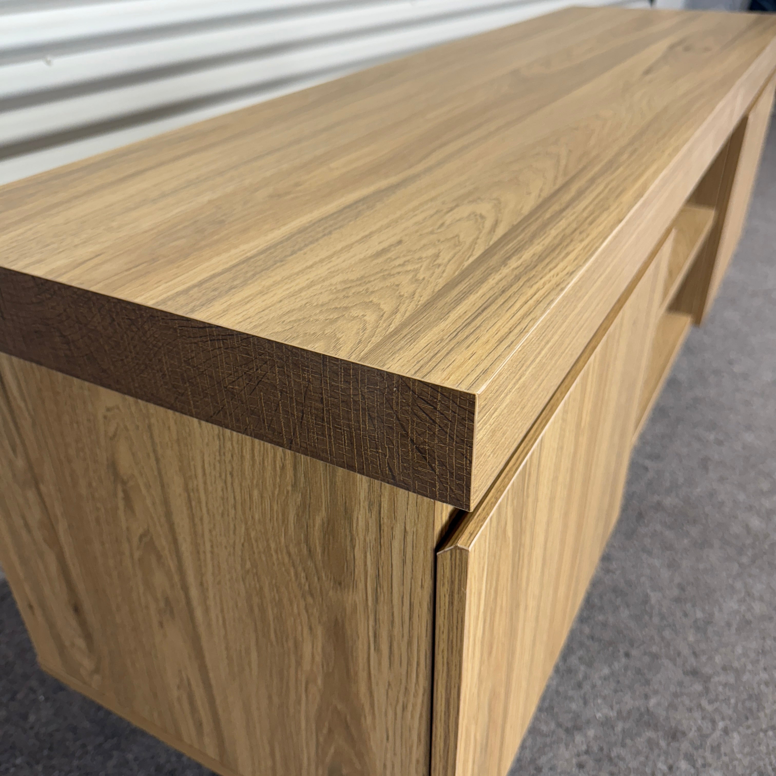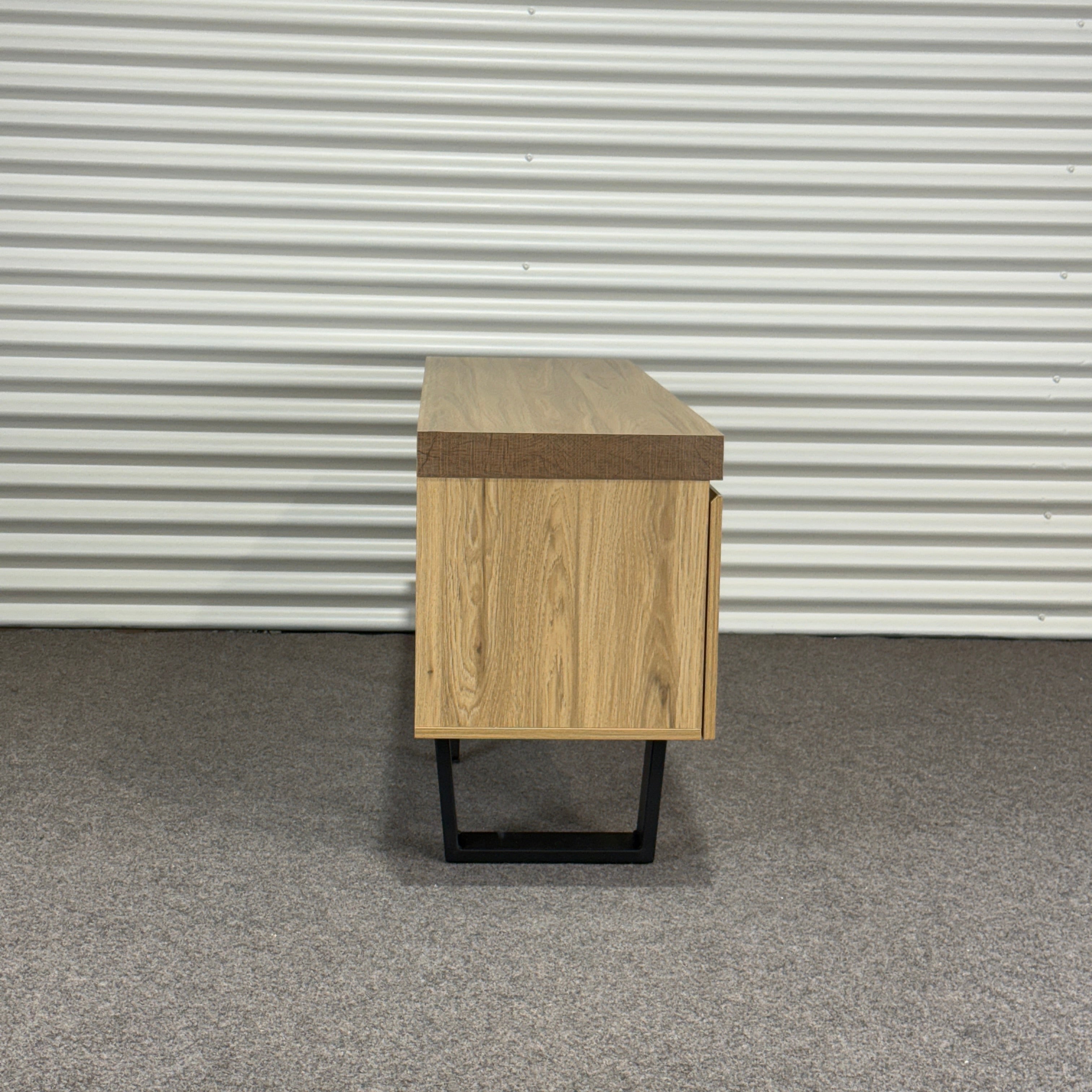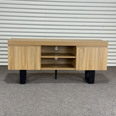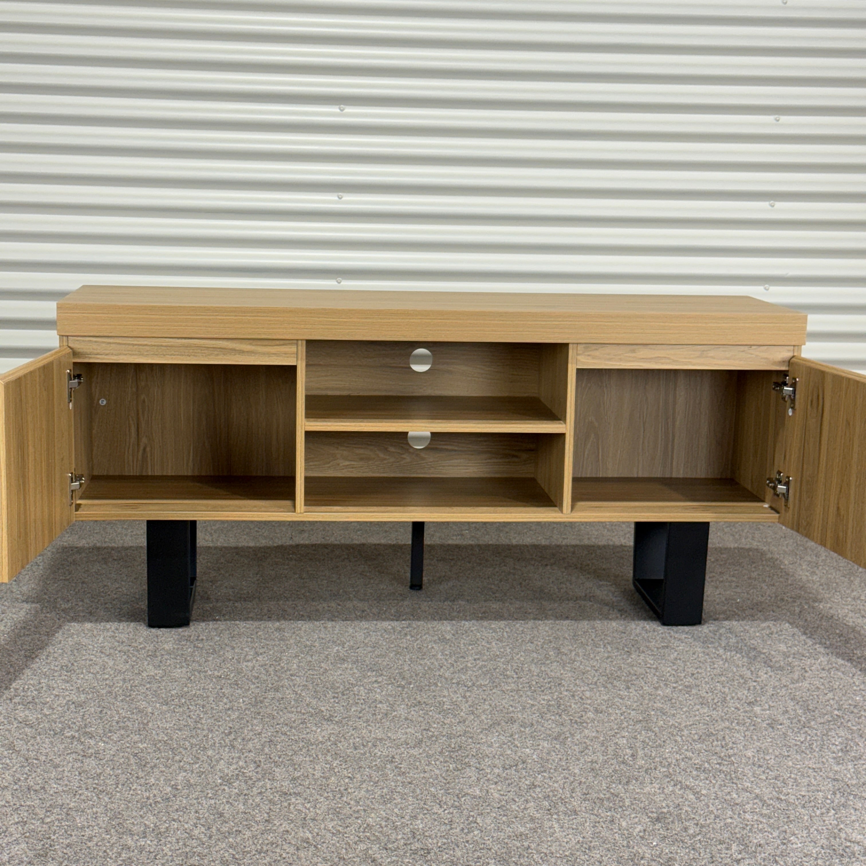 The Bright Entertainment Unit blends sleek design with natural warmth — perfect for modern living rooms. With its oak-look finish and black metal legs, it brings a touch of Scandi-inspired style to your space.