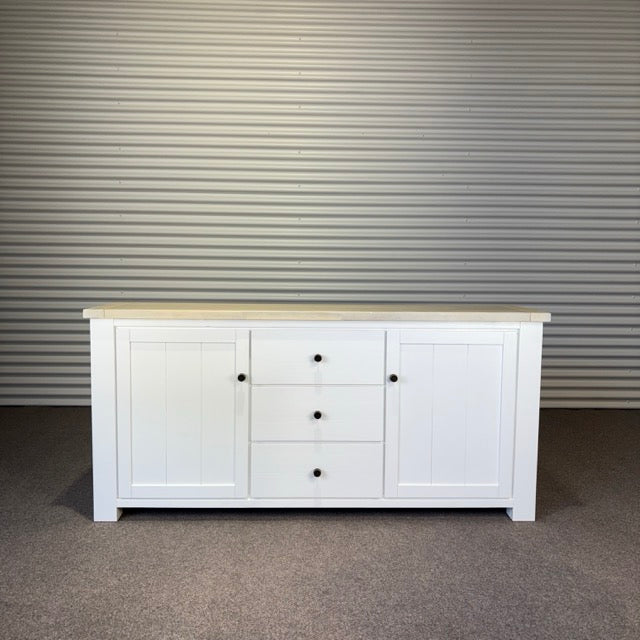 For big families, big gatherings, or just big style – the Kinloch Buffet 1800mm is your spacious storage hero. With its clean white body, softly washed timber top, and symmetrical layout of four drawers and two cupboards, it’s the perfect blend of practical and pretty.