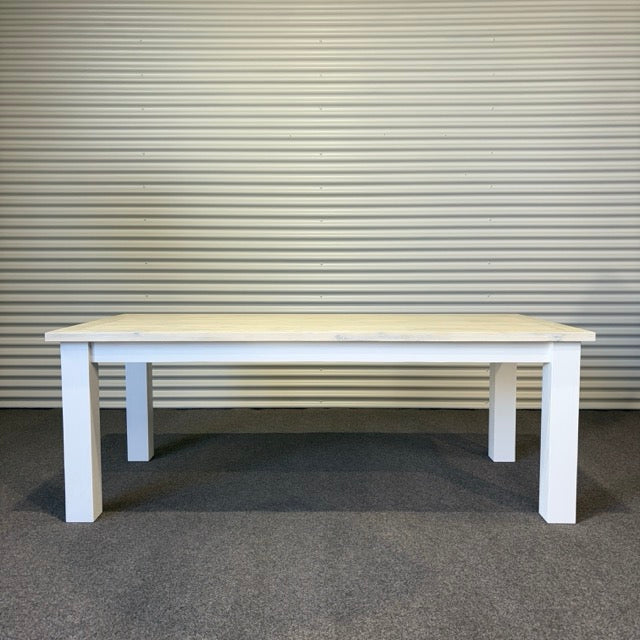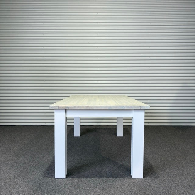 Simple, sturdy, and built to gather good times. The Kinloch Dining Table brings effortless coastal charm to your dining space with its clean white base and softly washed timber-style top. Designed for everyday use and long weekend dinners alike, it’s a versatile table that grows with your home – available in three sizes to suit small families or larger get-togethers.