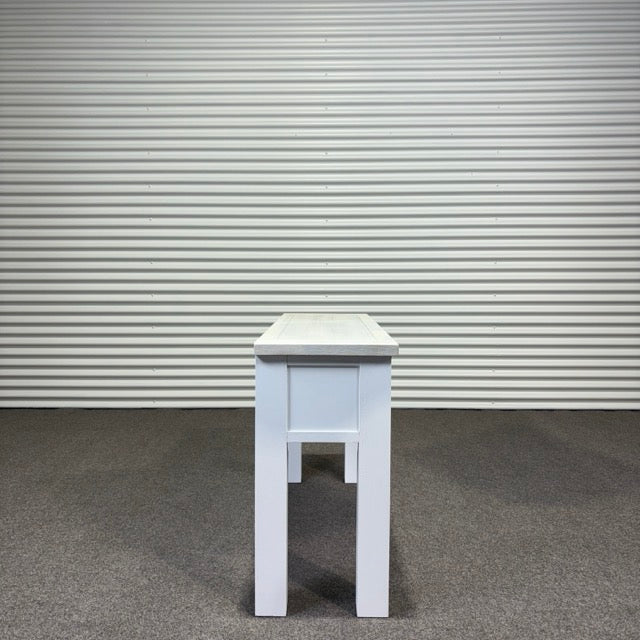 Add a touch of coastal charm to your living space with the Kinloch Side Table. With its clean white finish and subtle rustic woodgrain top, this compact table offers both visual appeal and everyday practicality. Whether styled as a side table, hallway console, or bedroom accent, it delivers understated elegance and useful storage.