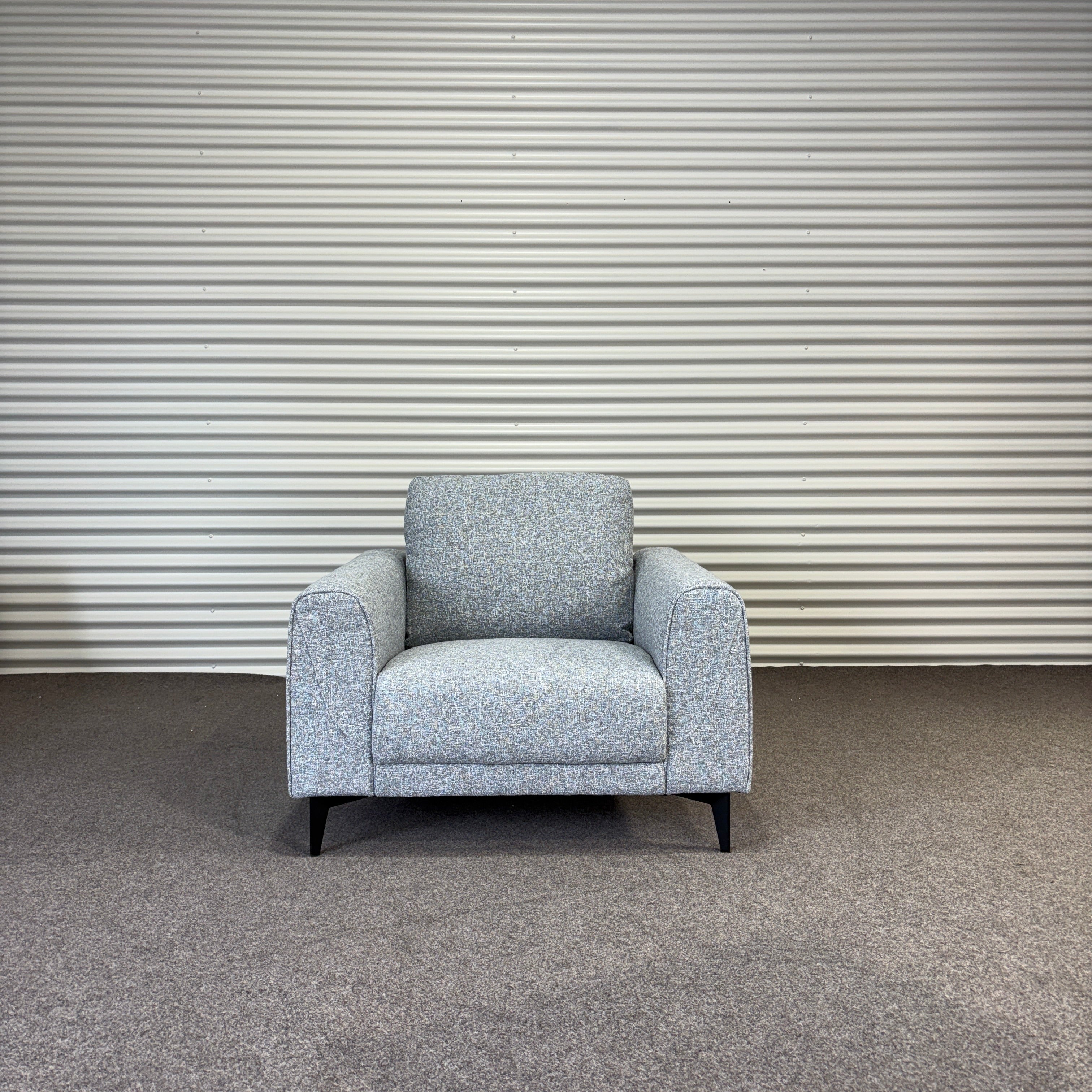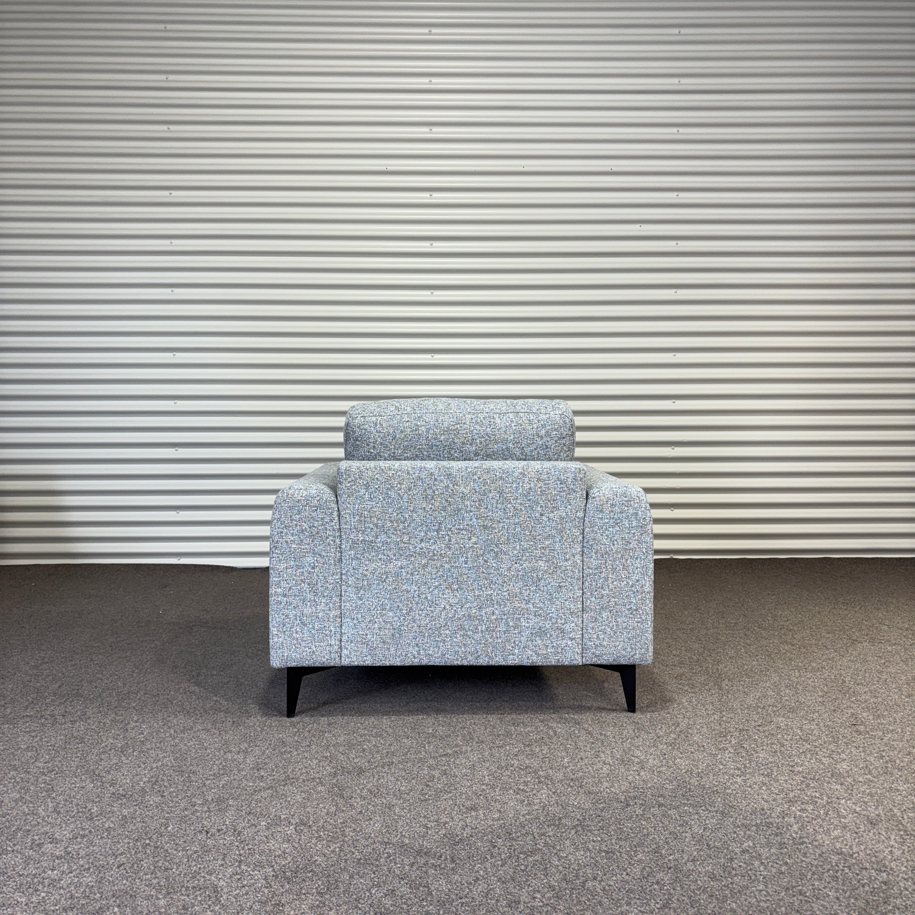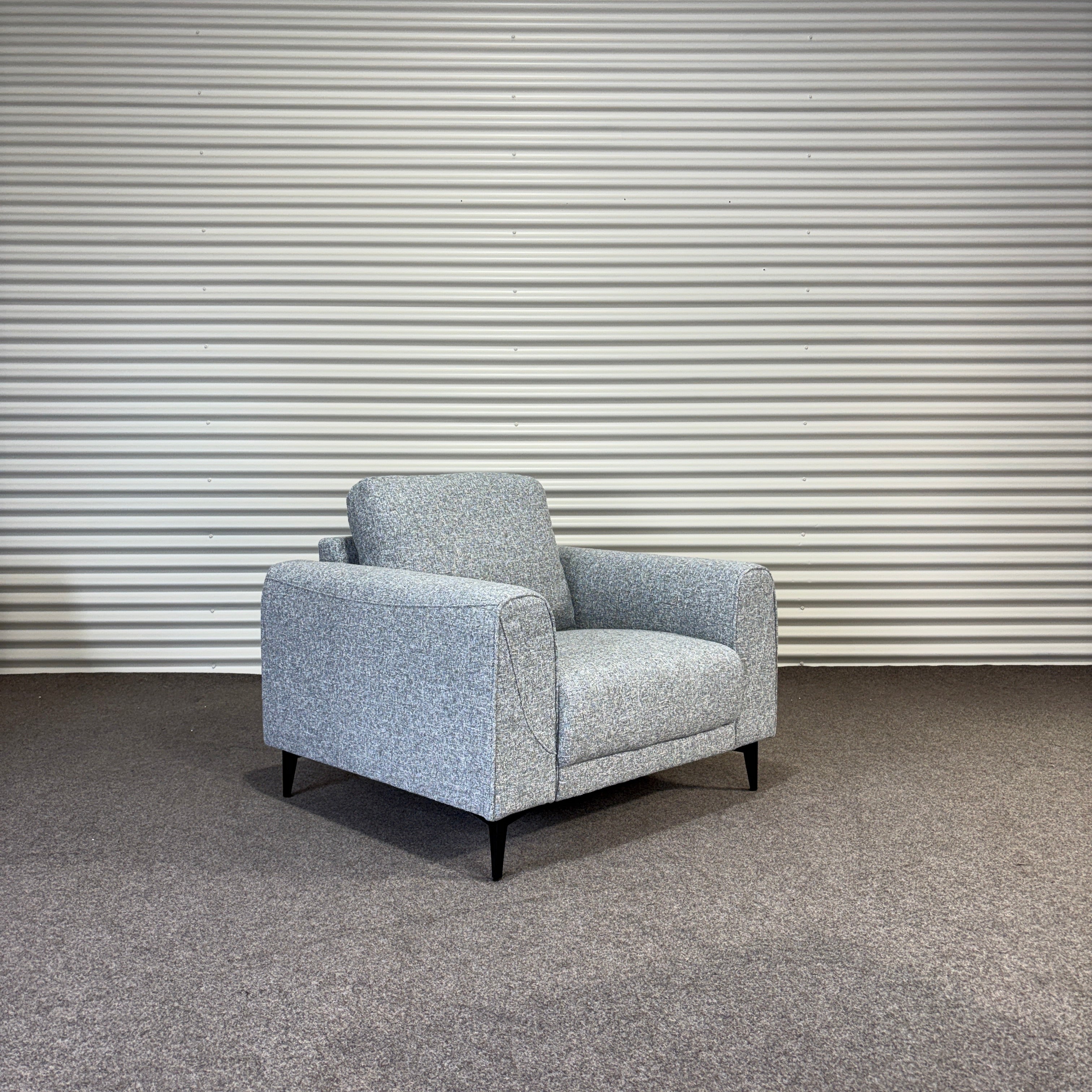 The Elara Armchair combines contemporary design with everyday comfort in a compact form. Upholstered in a soft-touch light grey woven fabric, it’s the perfect statement piece for reading corners, bedrooms, or as a companion to the Elara sofa range. With supportive cushioning and slim black legs, this armchair offers both style and durability.