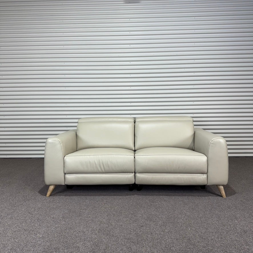 Bring comfort and convenience together with the Oslo 2 Seater Electric Recliner. Wrapped in soft ivory leather, this sofa brings an airy, modern touch to any living space. With smooth electric reclining and built-in USB charging, the Oslo is designed for effortless relaxation. Clean lines, supportive cushioning, and light timber legs complete the sleek silhouette – perfect for both everyday lounging and elevated hosting.