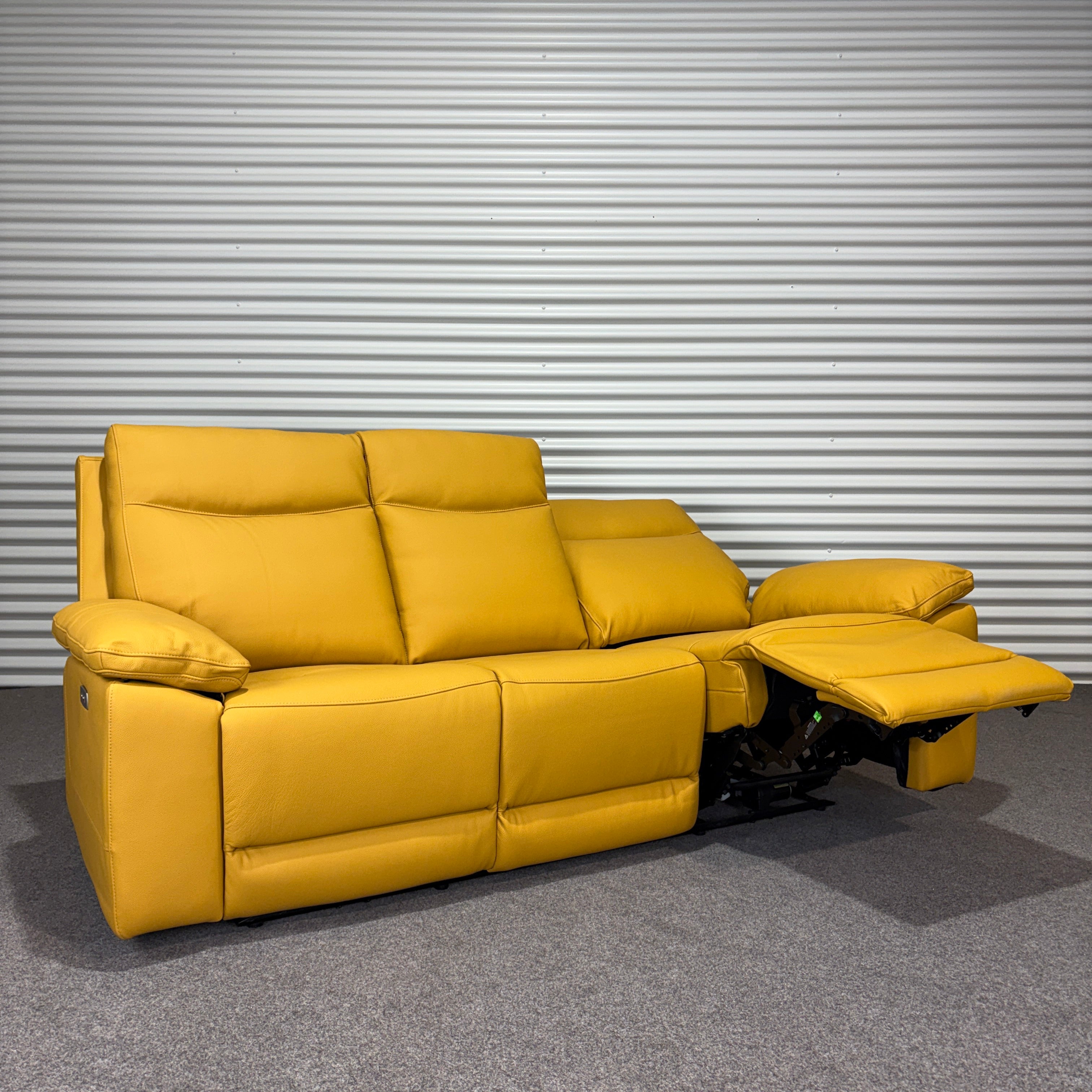 Avelar 3-Seater Recliner Sofa | Yellow Gold Leather