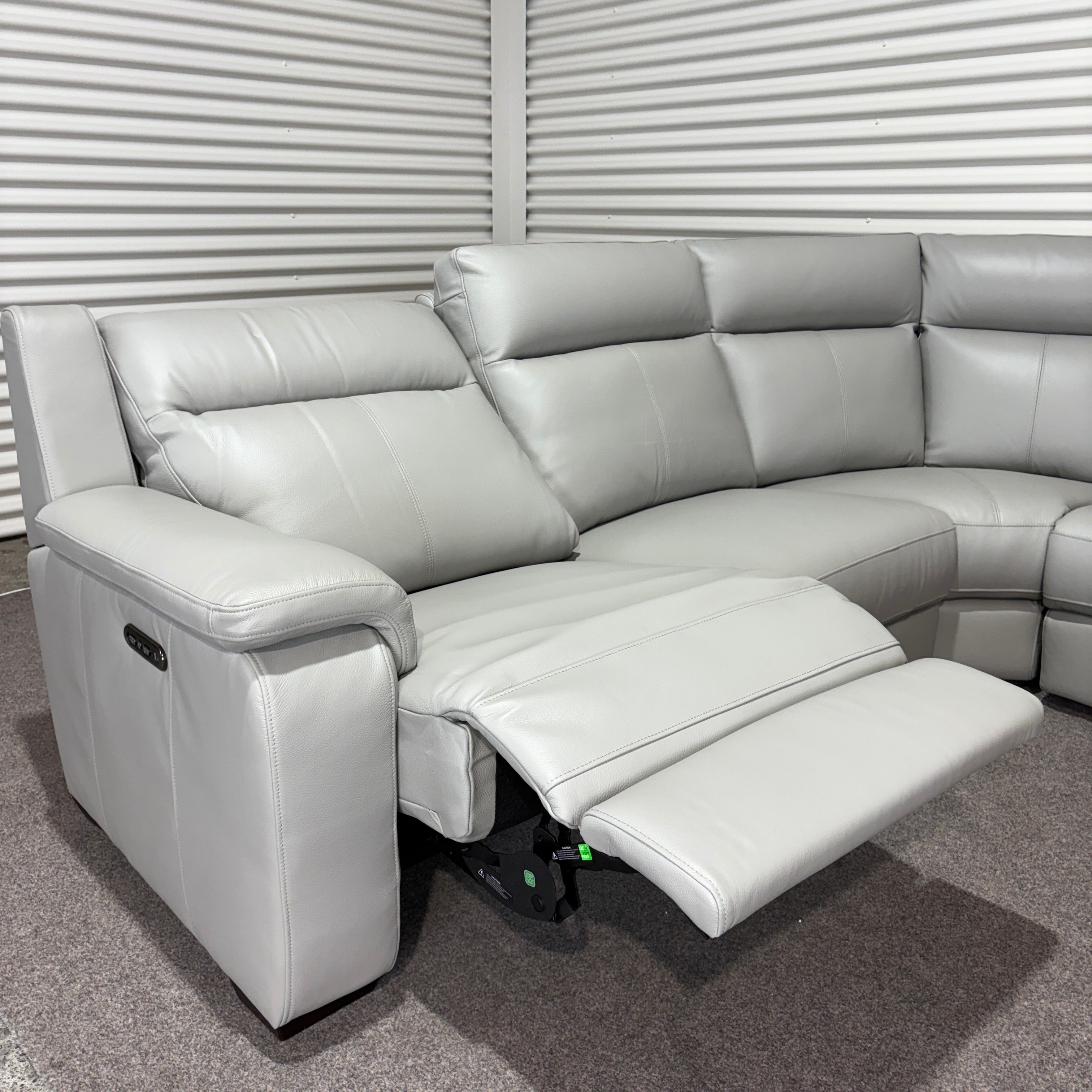 • Modular corner recliner sofa in light grey leather