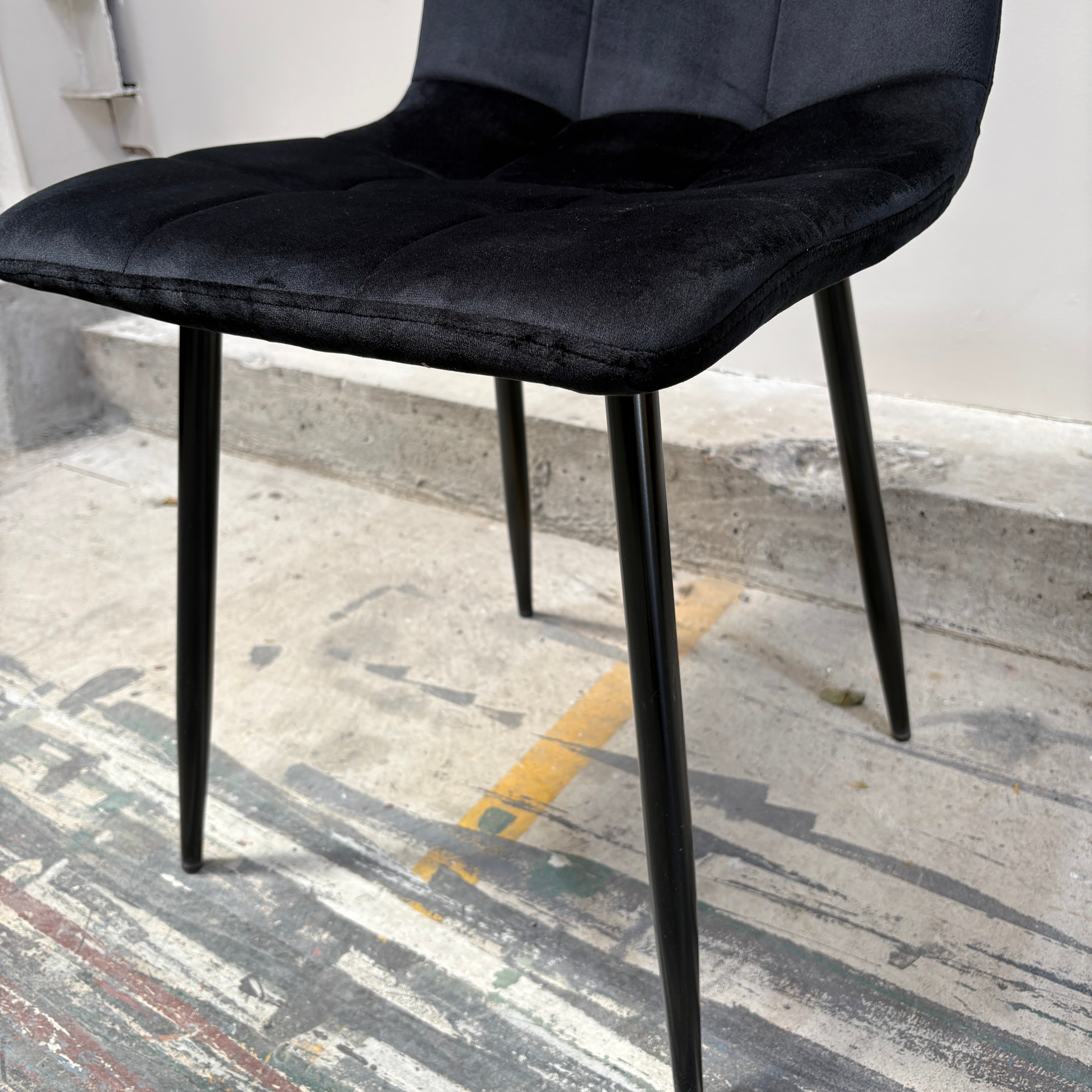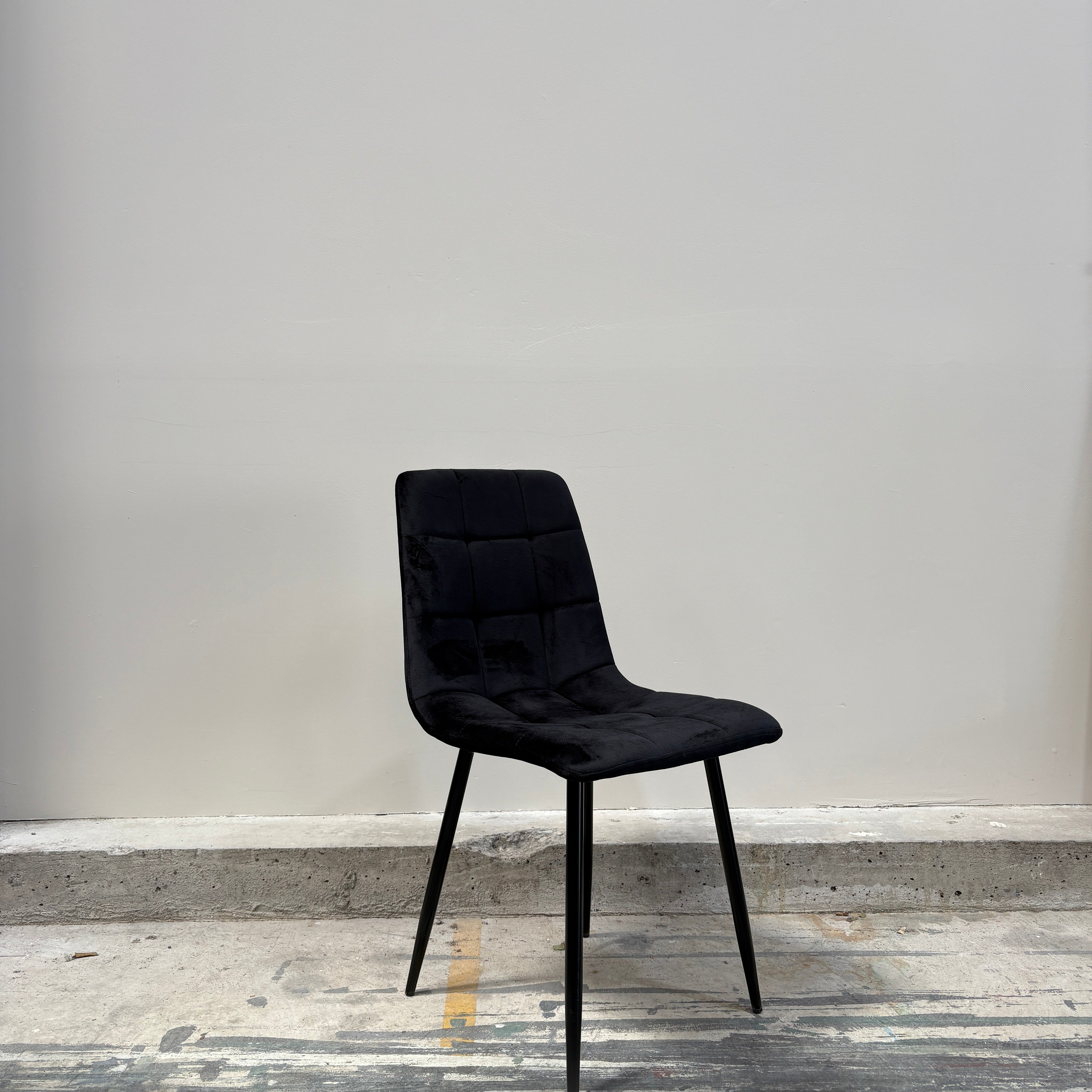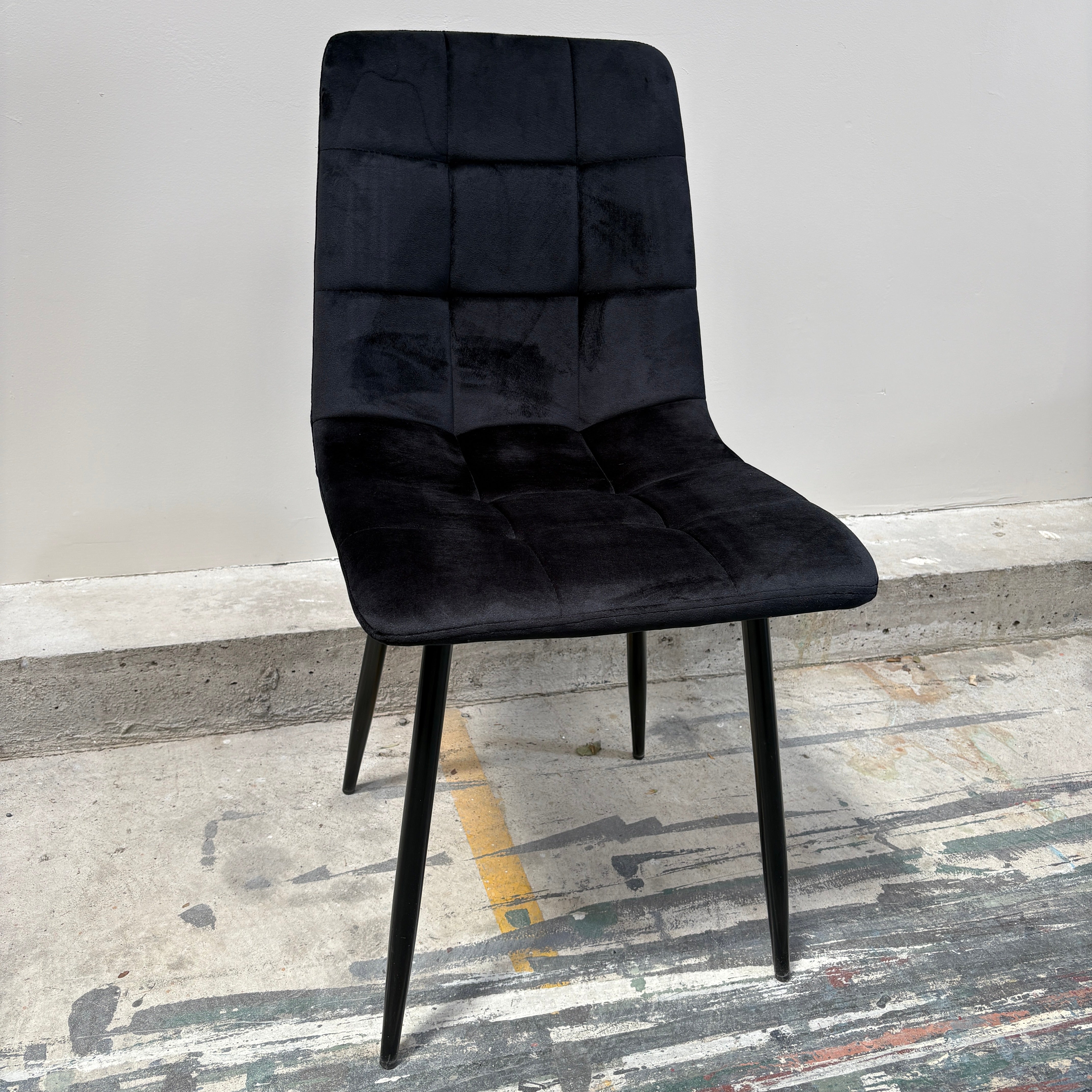 The Chicago Dining Chair is where everyday comfort meets modern style. With its plush padded seat, velvet-like black upholstery, and tapered metal legs, it’s built to impress — whether you’re hosting a dinner party or grabbing a quick bite at the table.