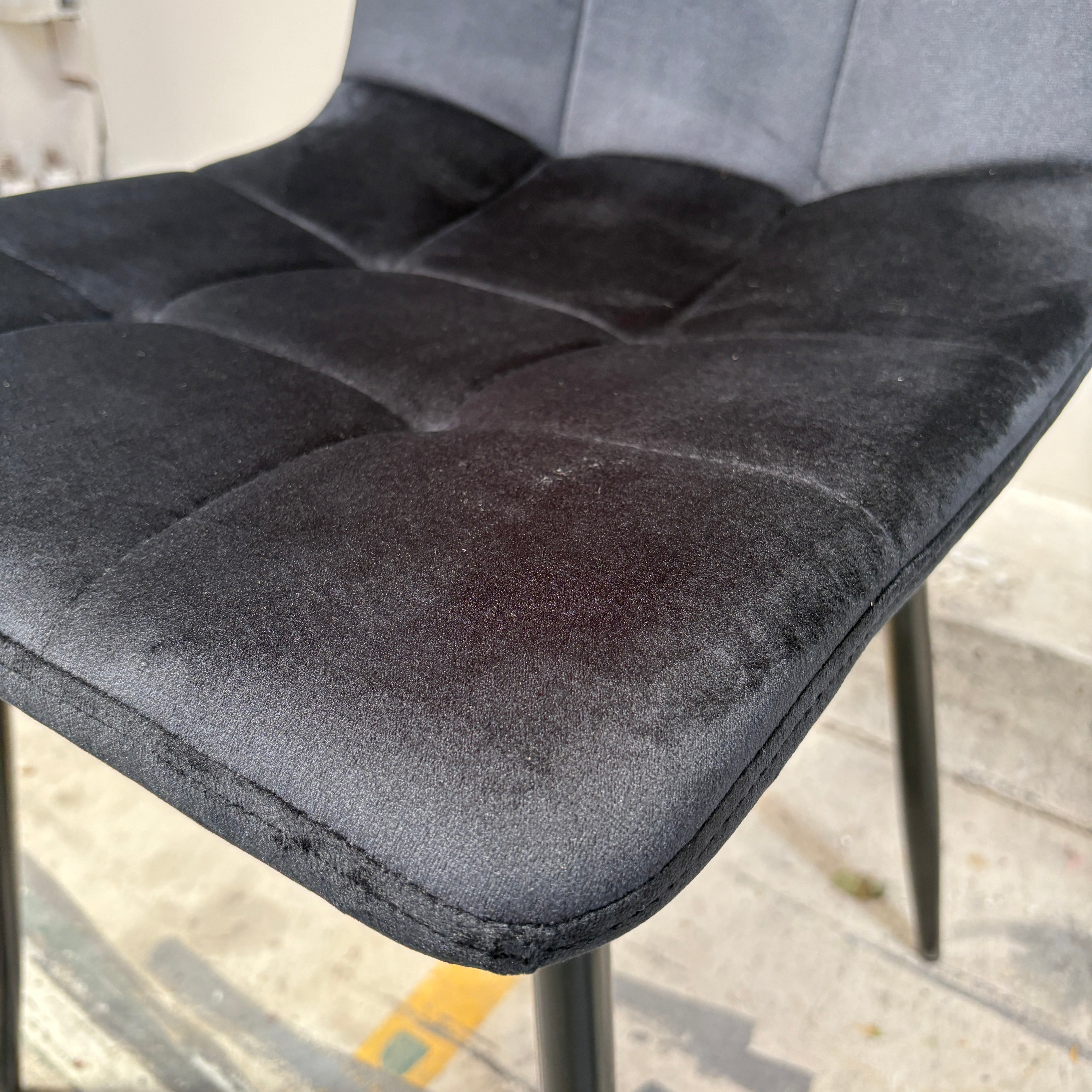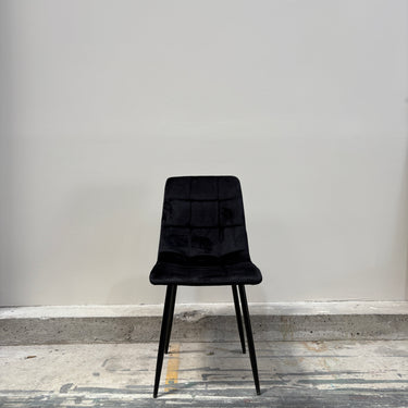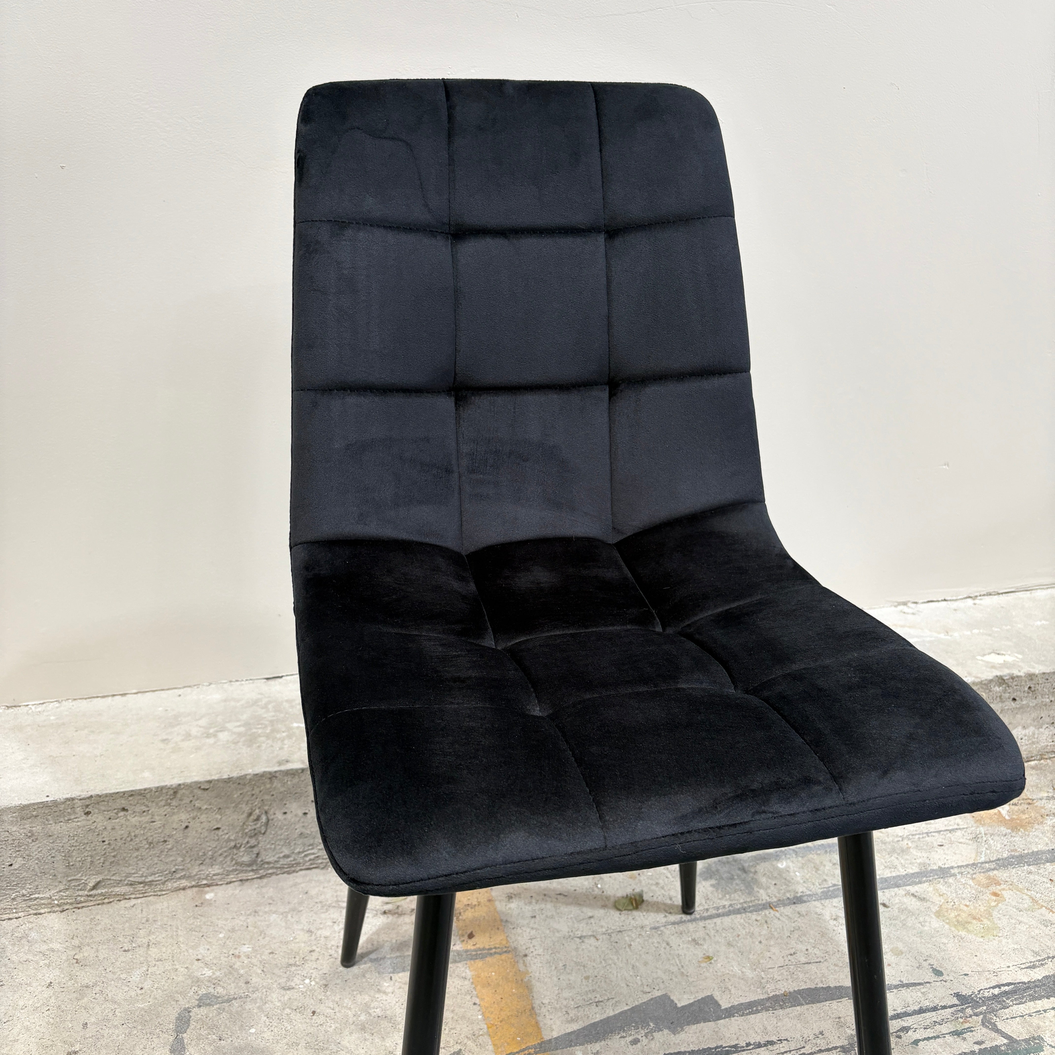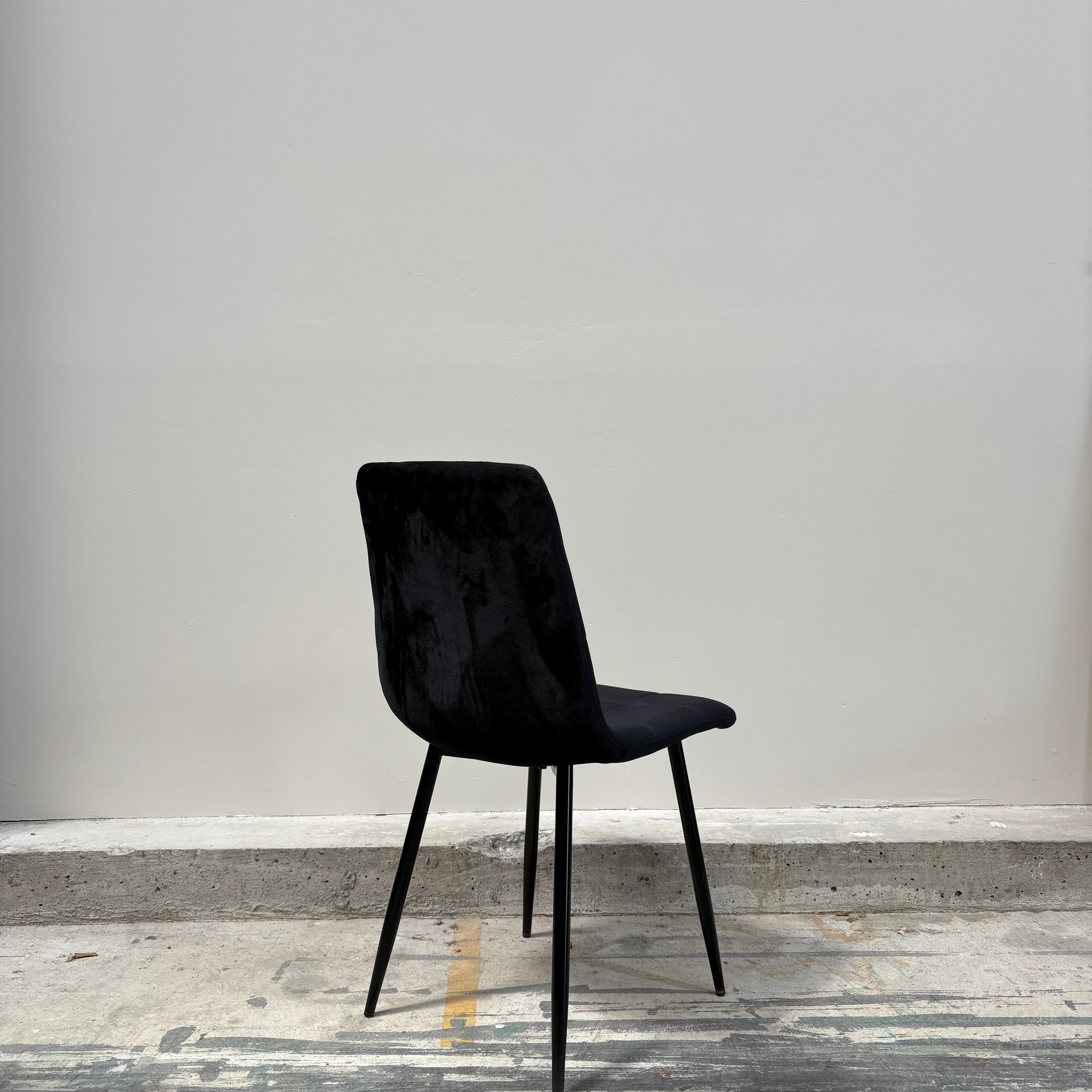 The Chicago Dining Chair is where everyday comfort meets modern style. With its plush padded seat, velvet-like black upholstery, and tapered metal legs, it’s built to impress — whether you’re hosting a dinner party or grabbing a quick bite at the table.