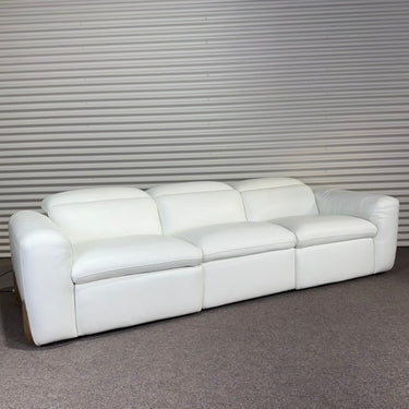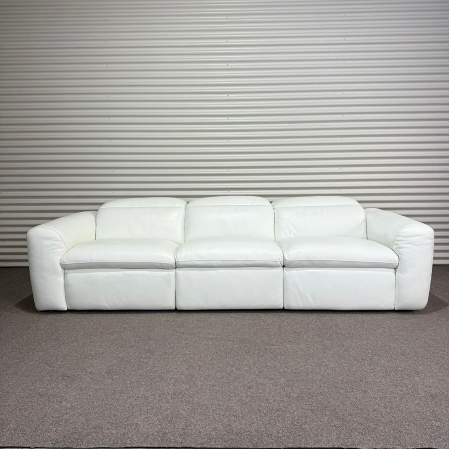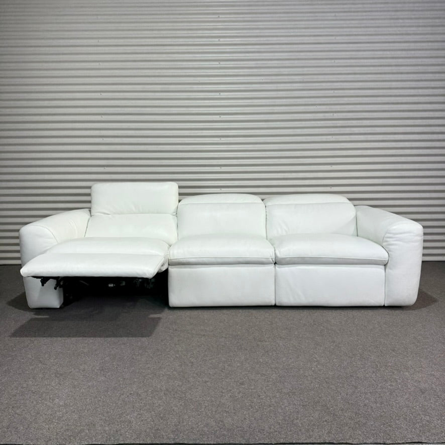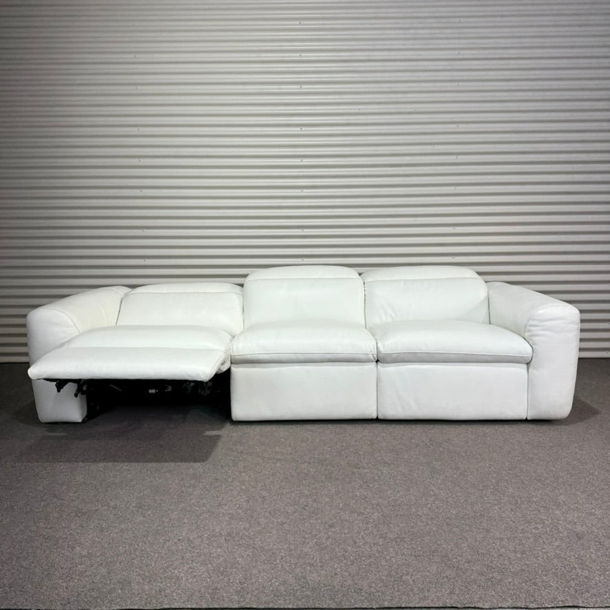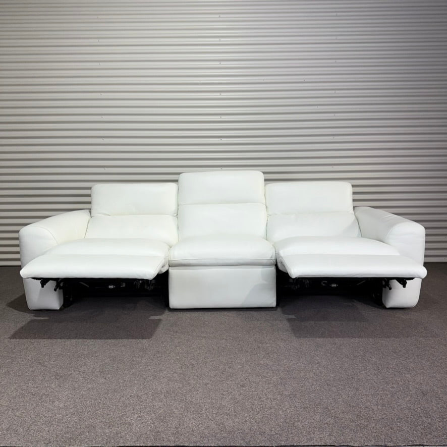 Premium white leather three seater sofa twin power recliners adjustable rests with adjustable foot rest.