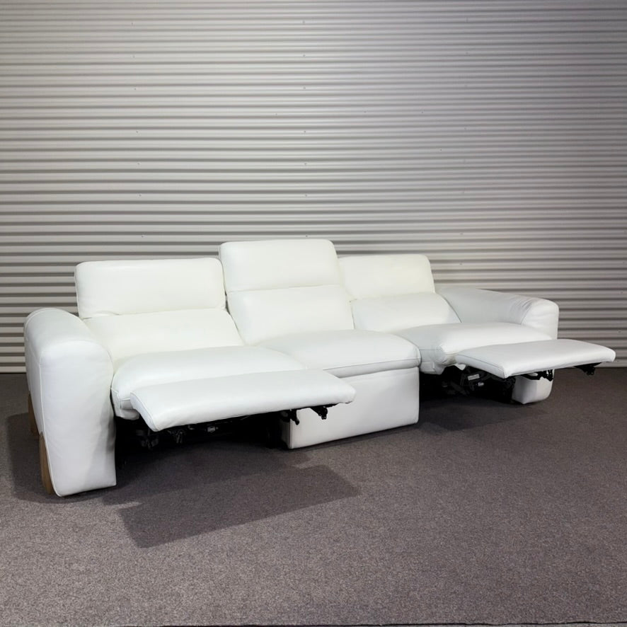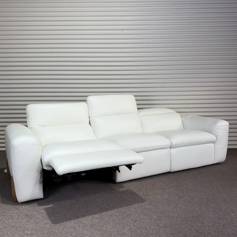 Wrapped in buttery-soft white leather and powered by Twin electric Recliners, it’s a modern classic built for serious lounging.
