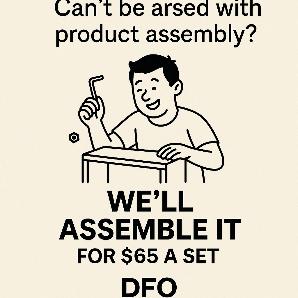 For just $65 per set, we’ll take care of the nuts, bolts, and “why-won’t-this-fit?!” moments so you don’t have to. From beds to dressers to outdoor sets, we’ll assemble your new DFO treasure with a smile (and probably a few dad jokes).