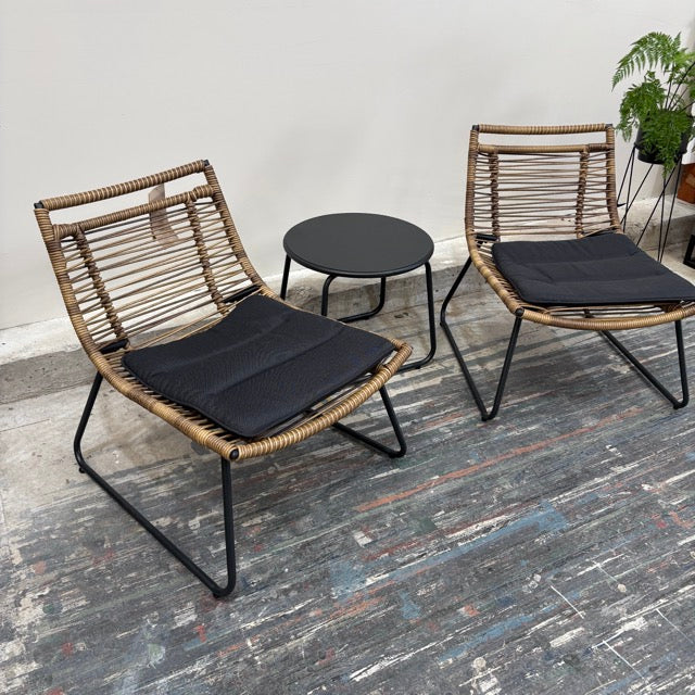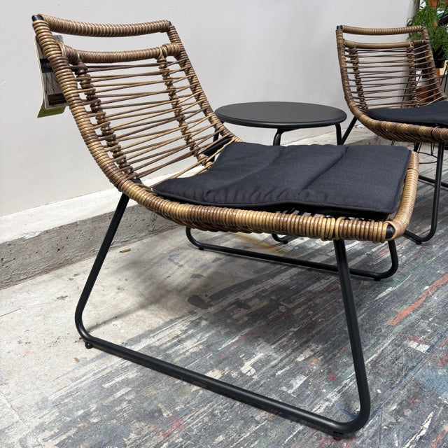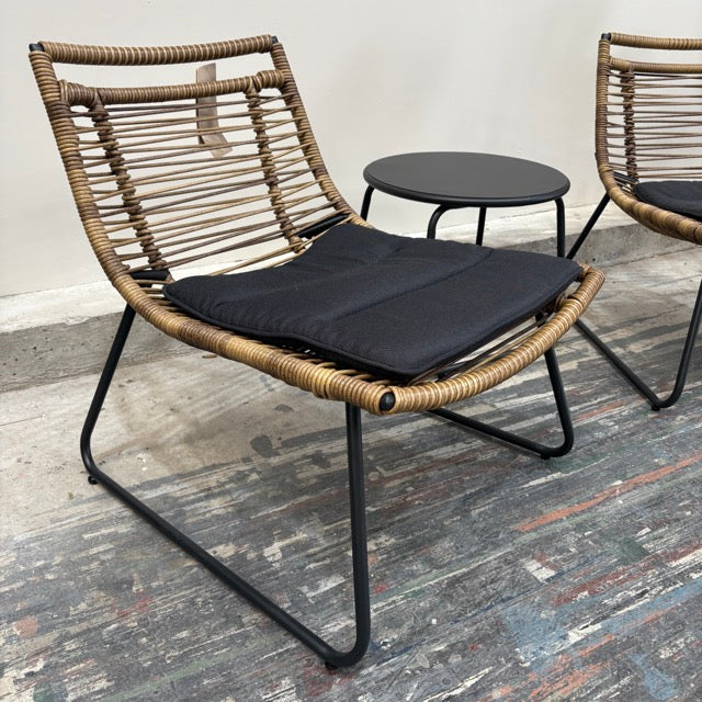 Excalibur Tuscany 3-Piece Patio Set | Natural Rattan Look & Black Frame