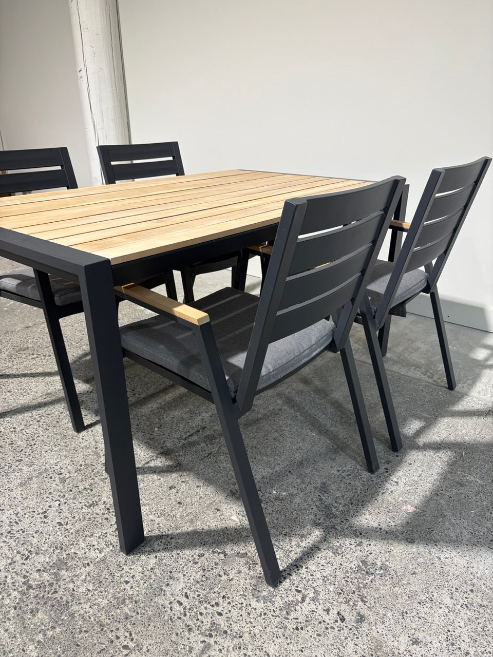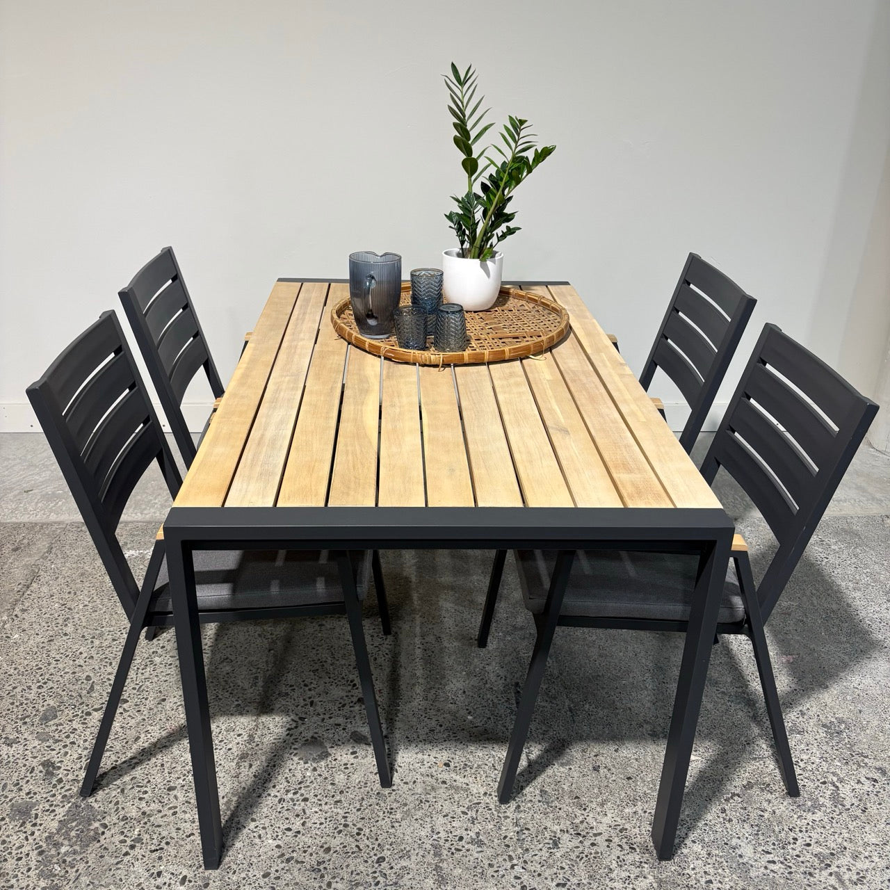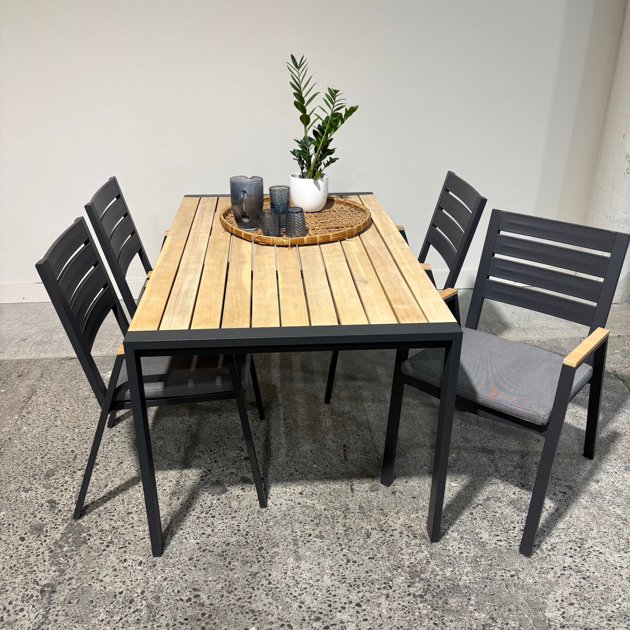 Kartini 5-Piece Outdoor Dining Set in natural timber and charcoal anodised aluminium, front view