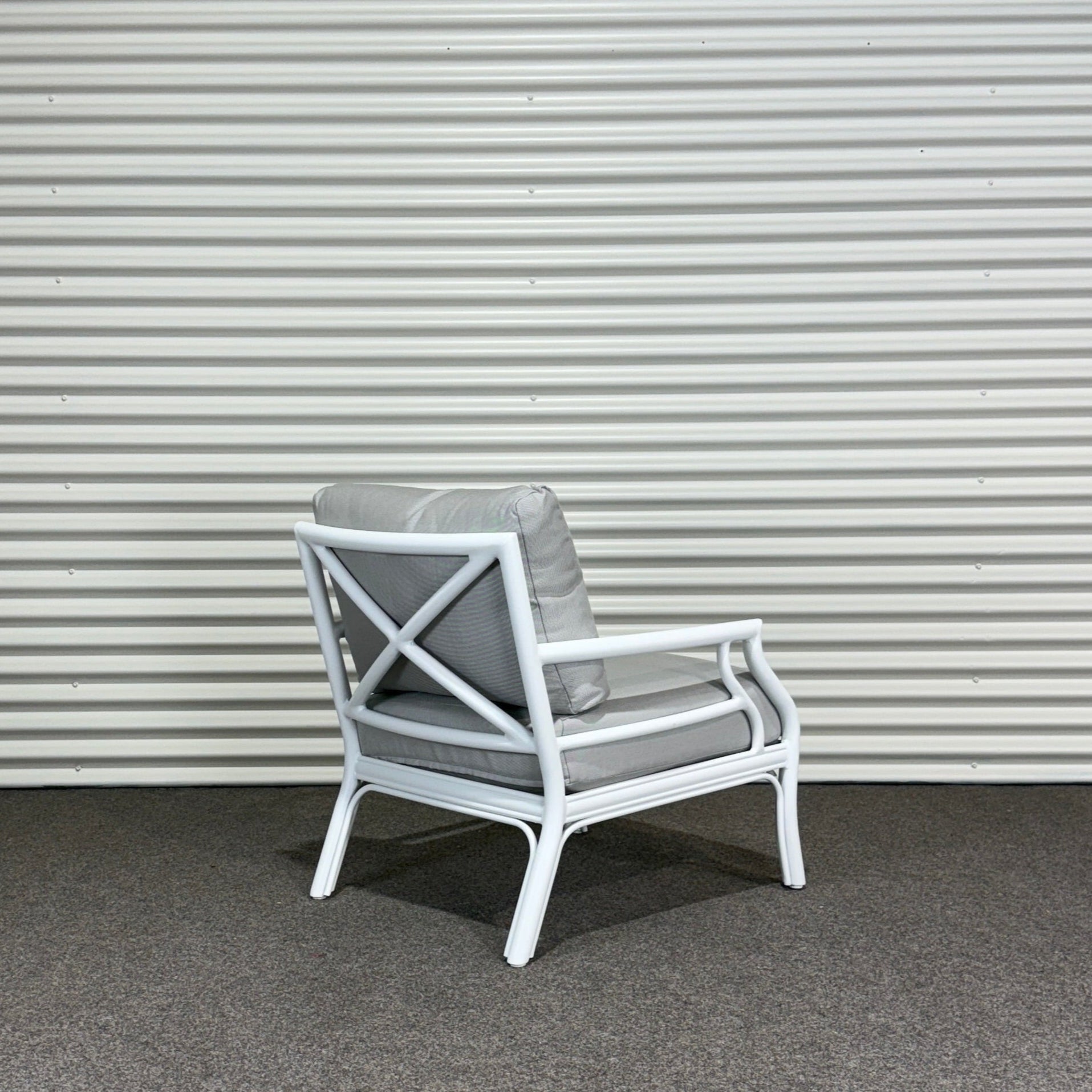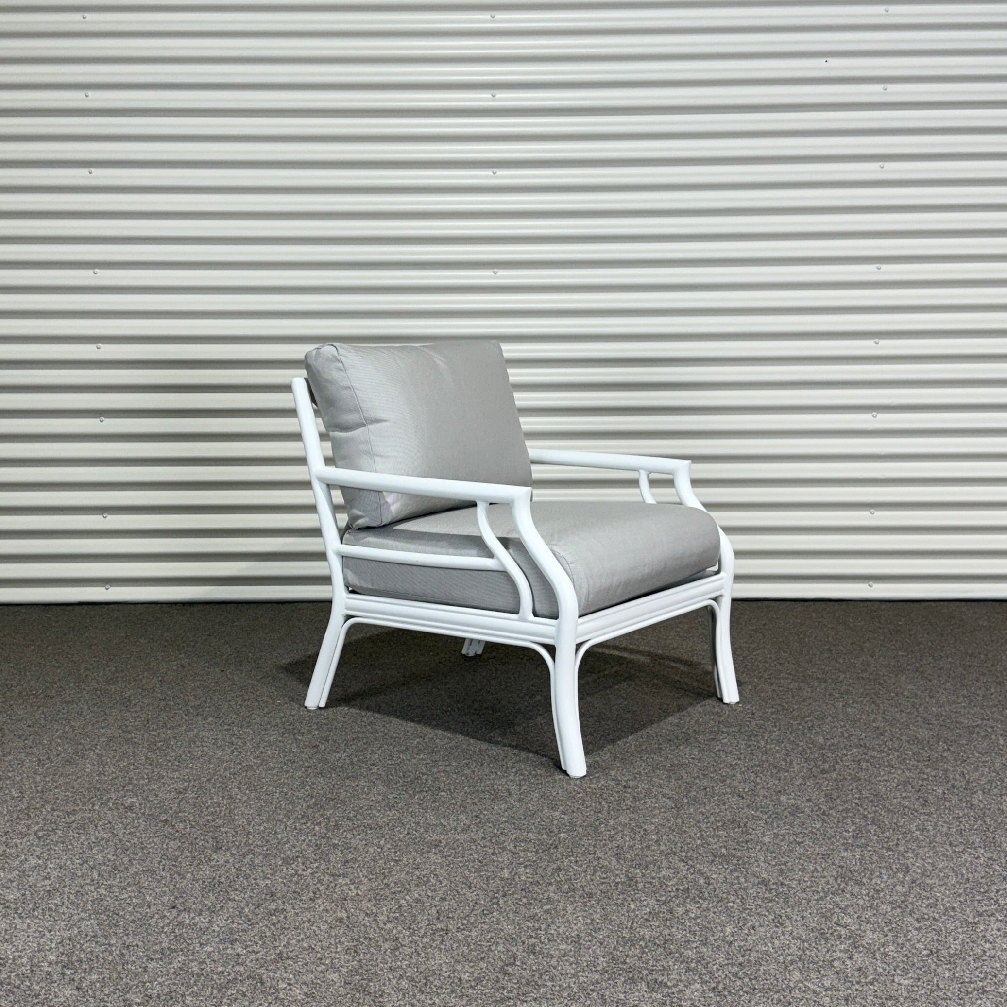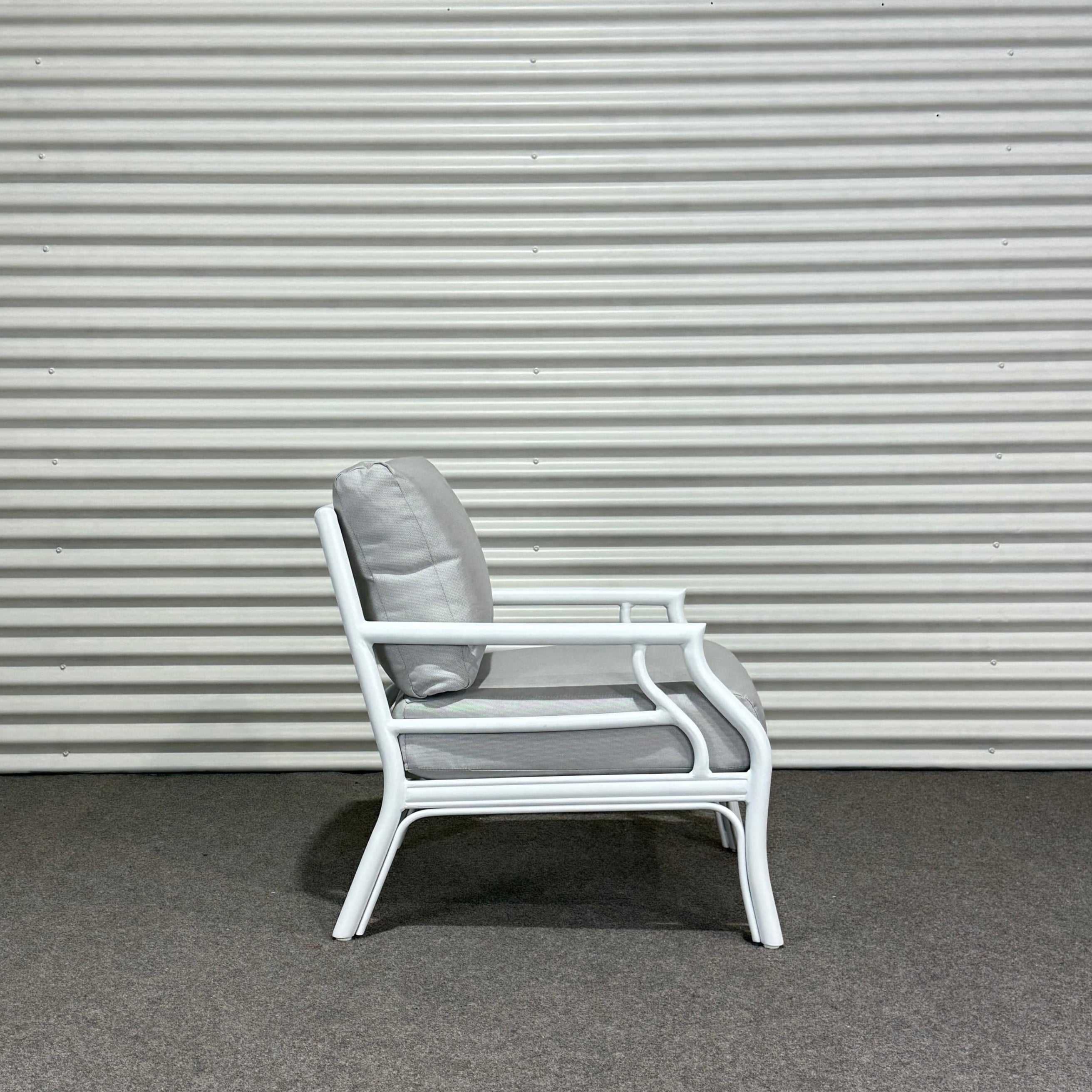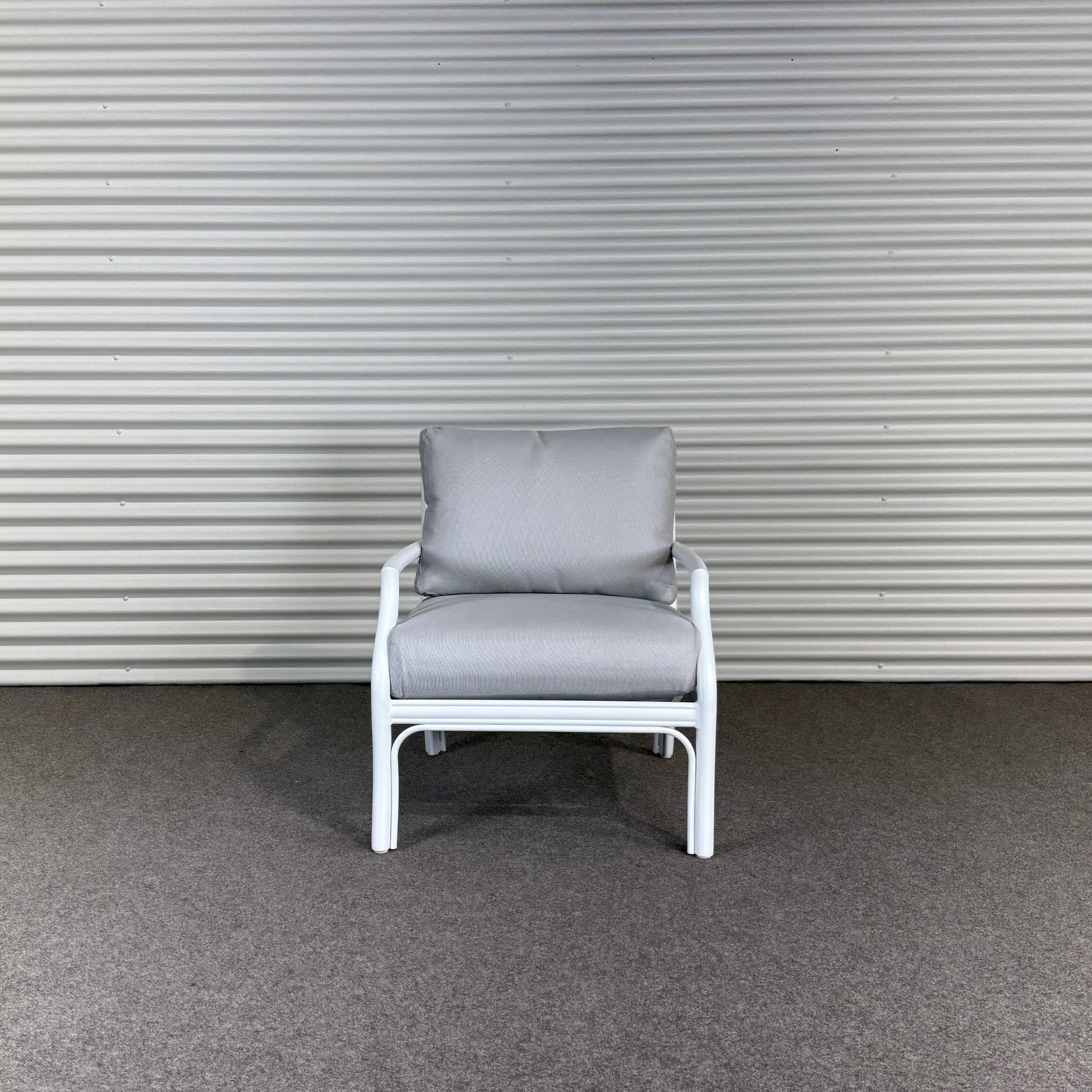 The Kaylee Single Lounge Chair delivers a refined, contemporary aesthetic designed for relaxed outdoor living. Featuring a sleek matte-white anodised aluminium frame and soft, weather-resistant cushions, this armchair brings comfort and modern elegance to any patio, deck, or garden area.