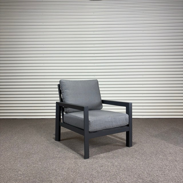 Create the ultimate outdoor retreat with the Matzo Outdoor Lounge Set. Combining a sleek gunmetal aluminium frame with plush Alpha Grey cushions, this 4-piece set balances contemporary style and everyday comfort. Whether you’re entertaining friends or enjoying a quiet evening, the Matzo set is designed for modern outdoor living.