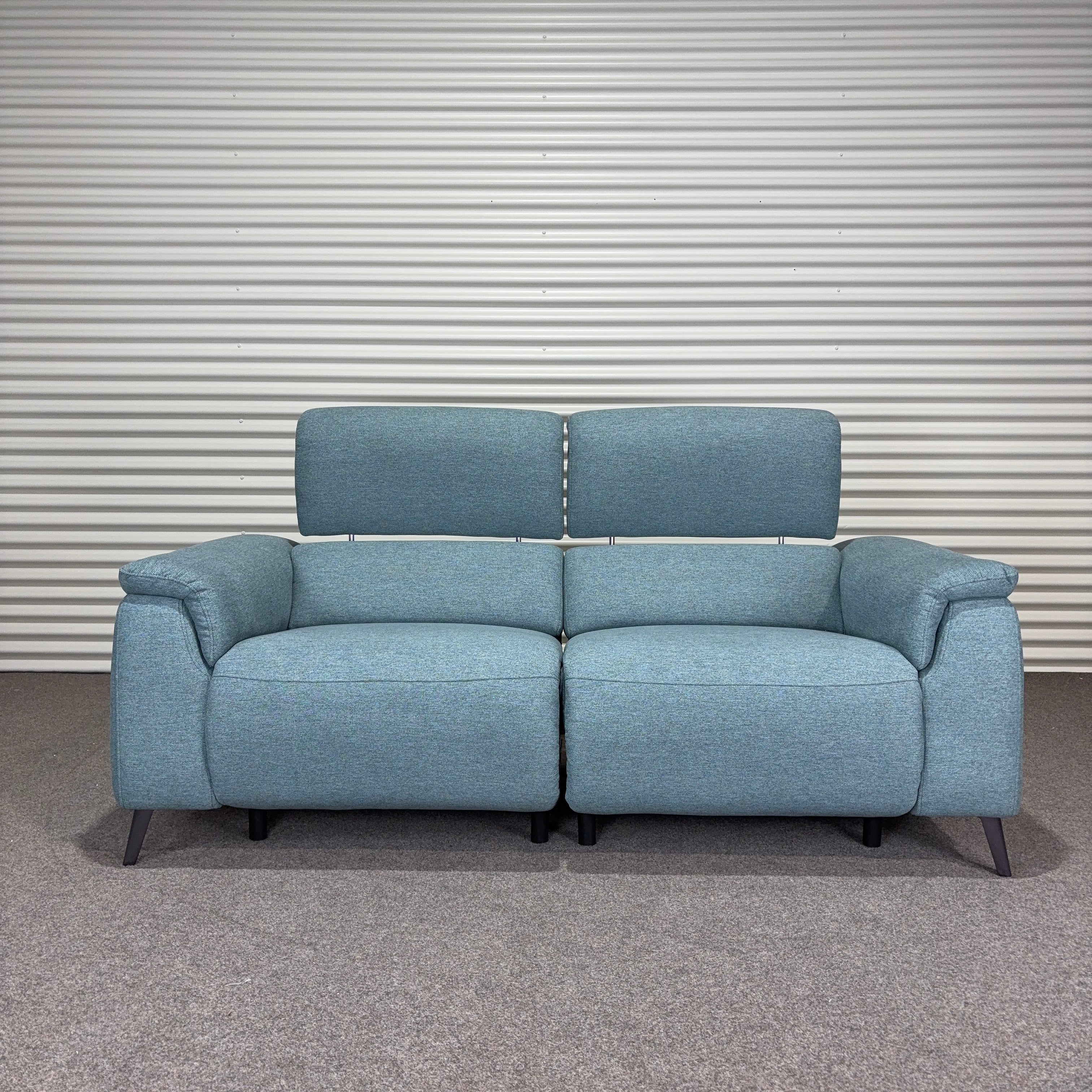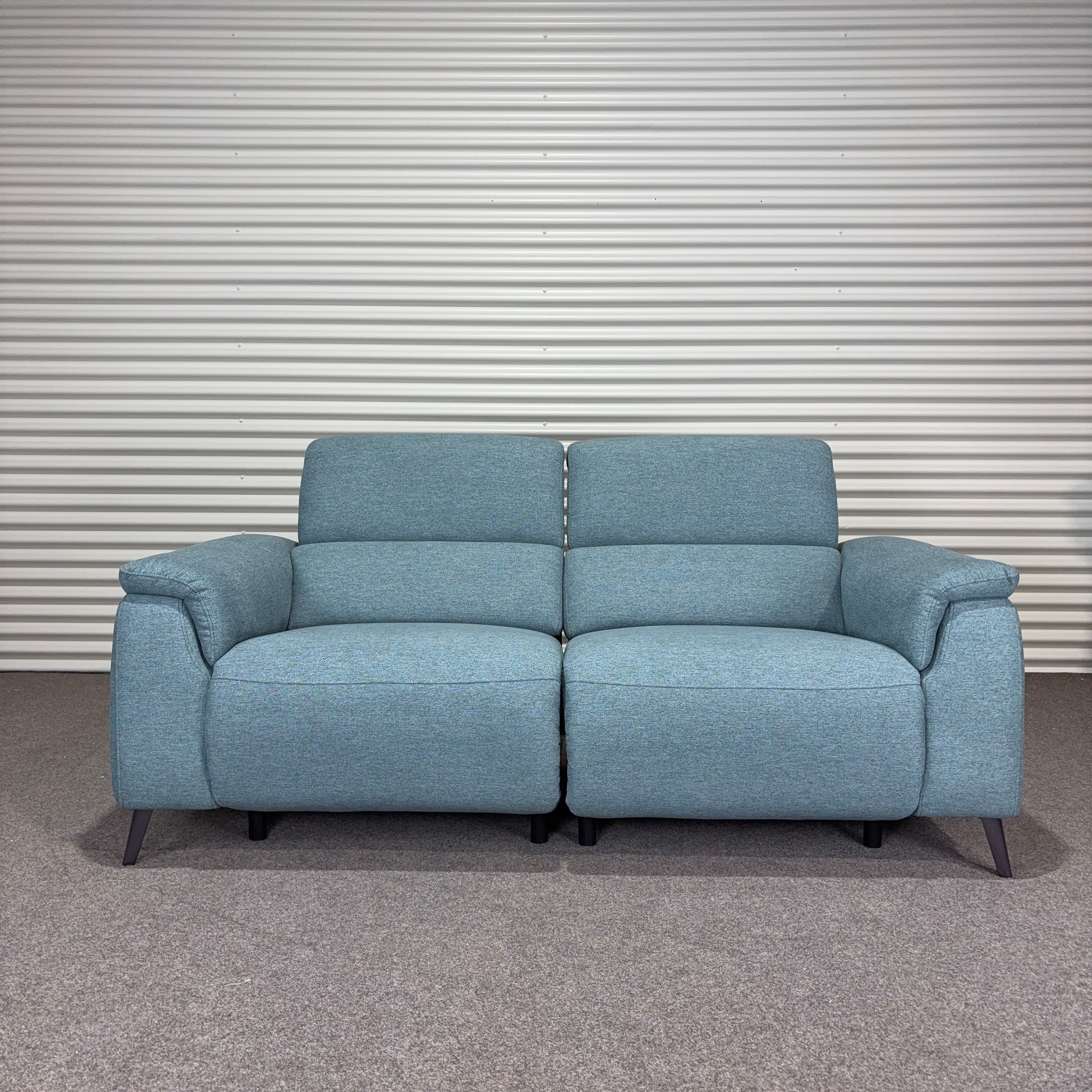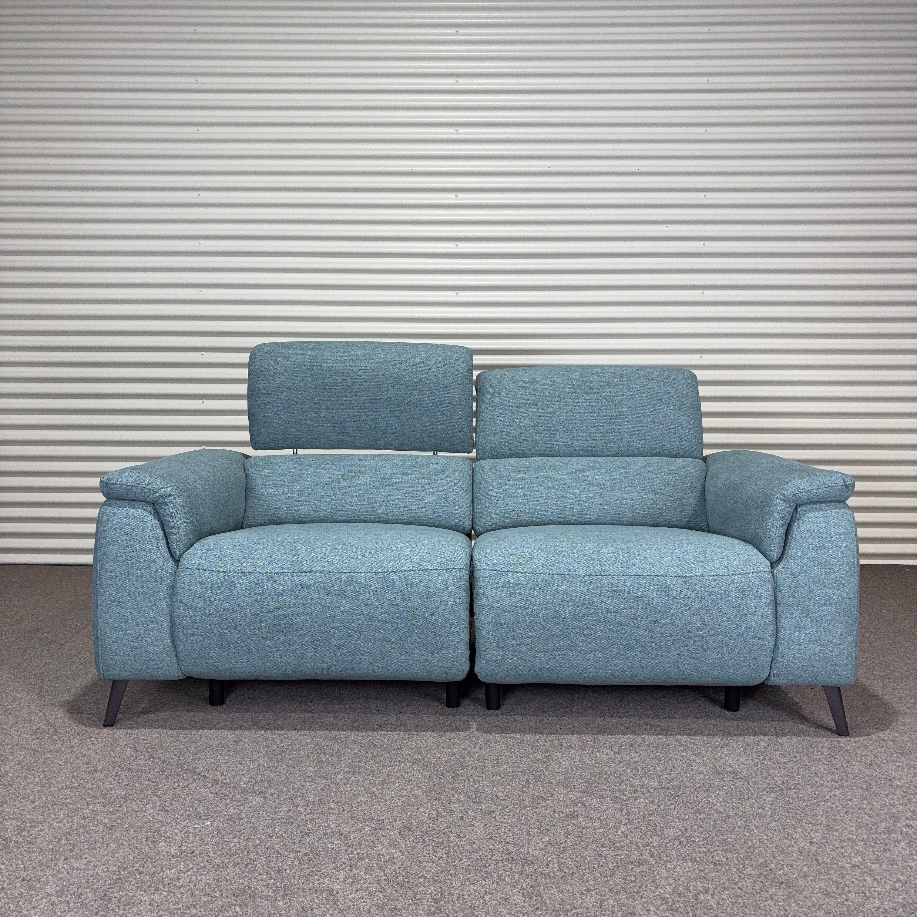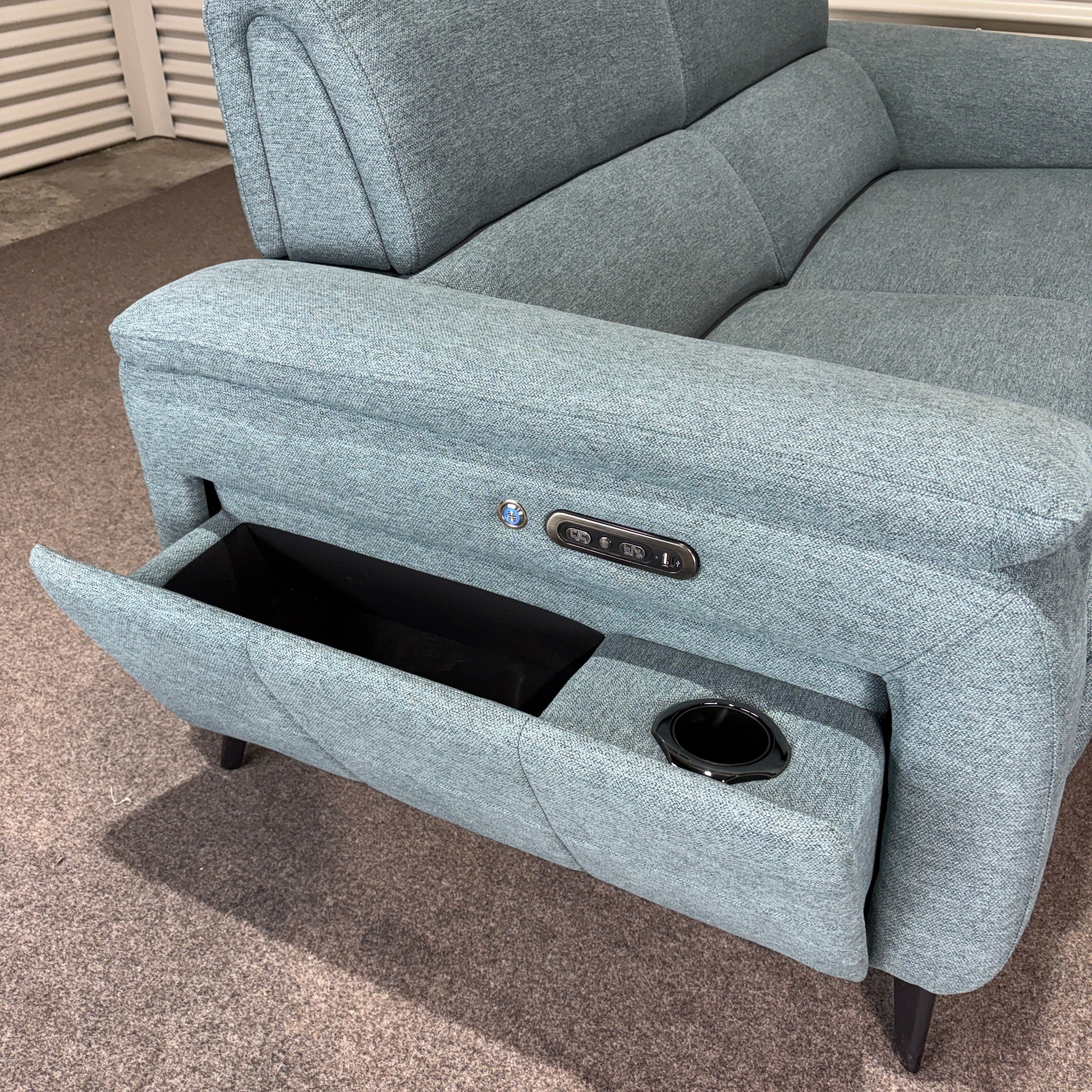 The Olivette 2-Seater Recliner Sofa blends modern convenience with everyday comfort. Upholstered in soft blue fabric, it features dual power recliners, supportive cushioning, and clever built-in arm storage with hidden cup holders — designed to keep everything close while you relax.