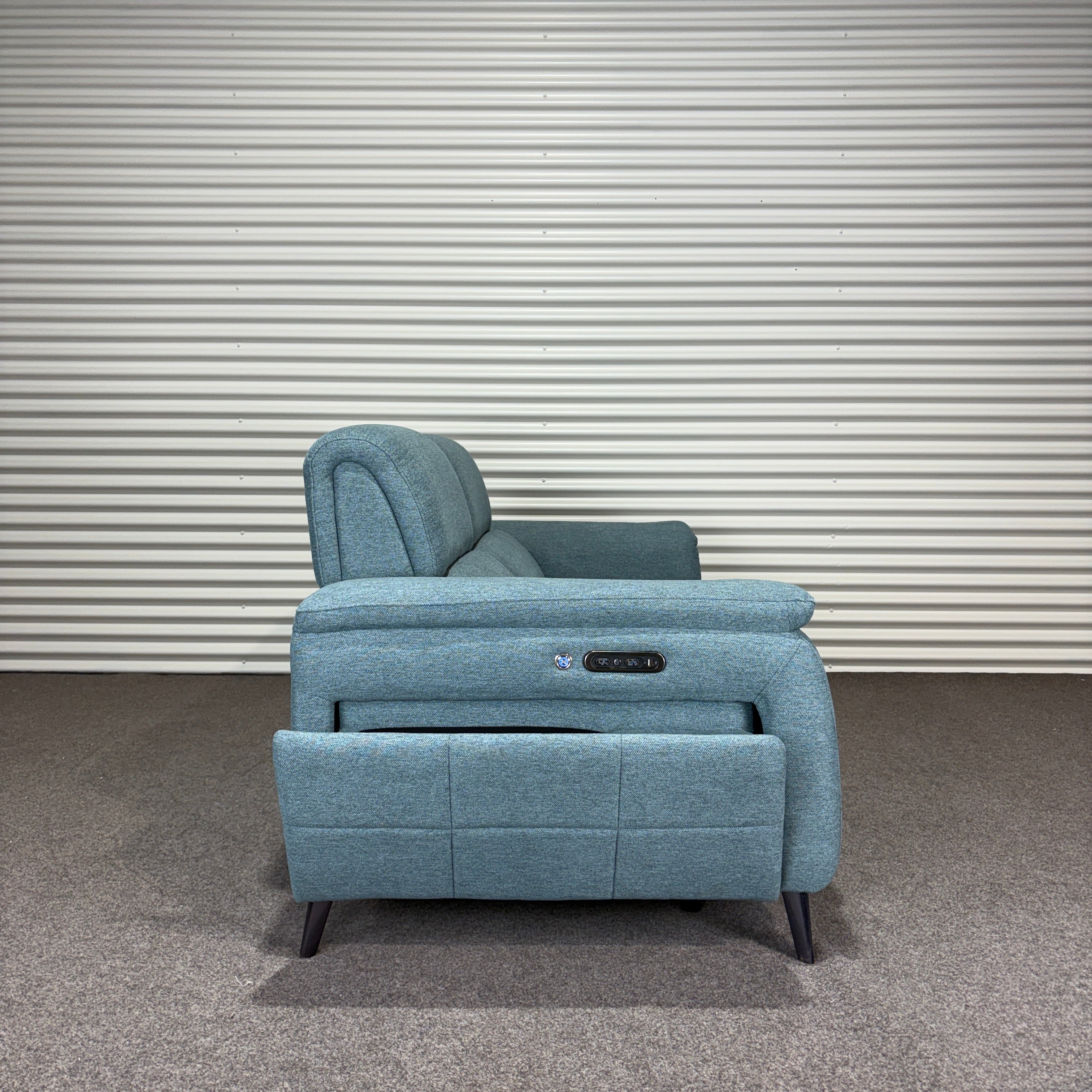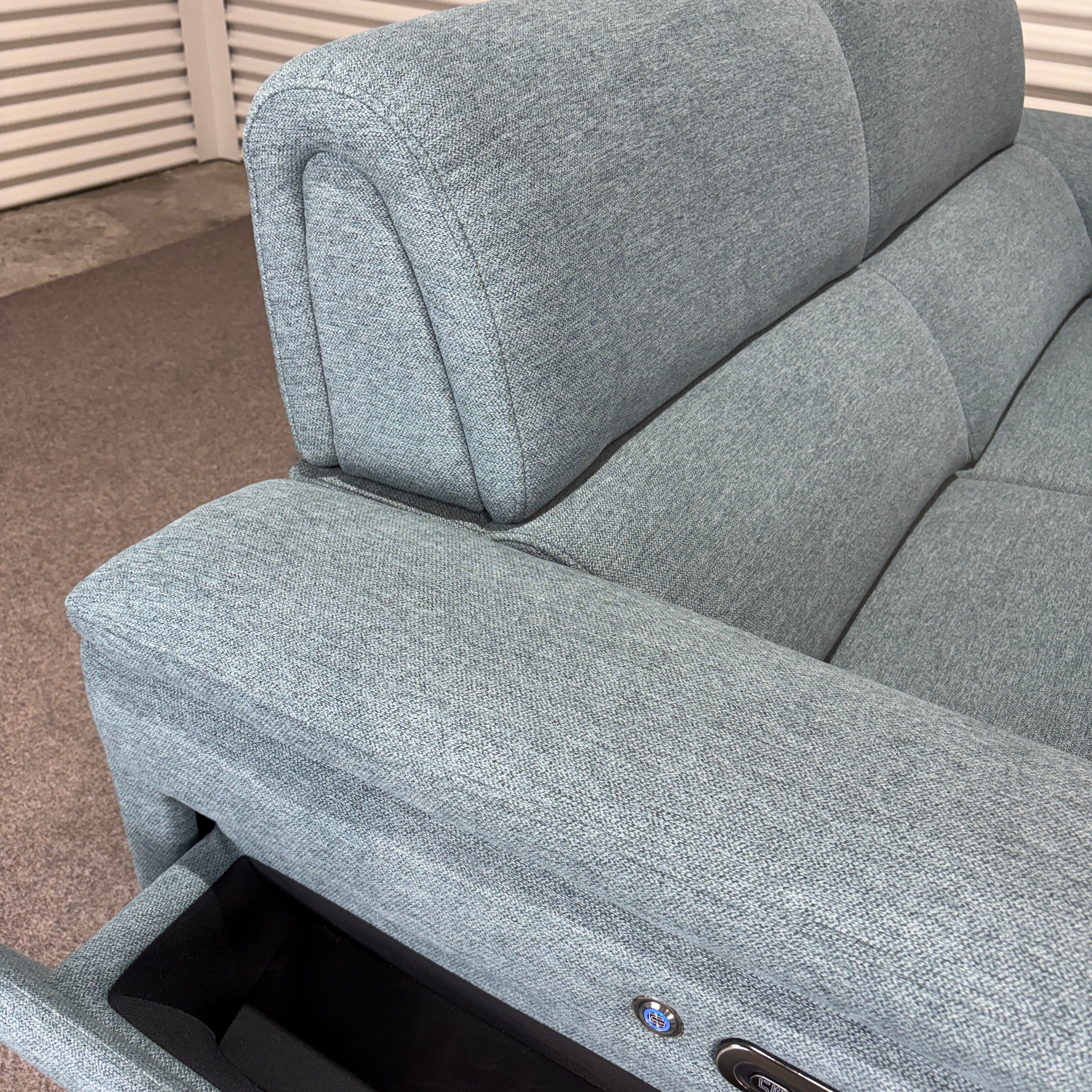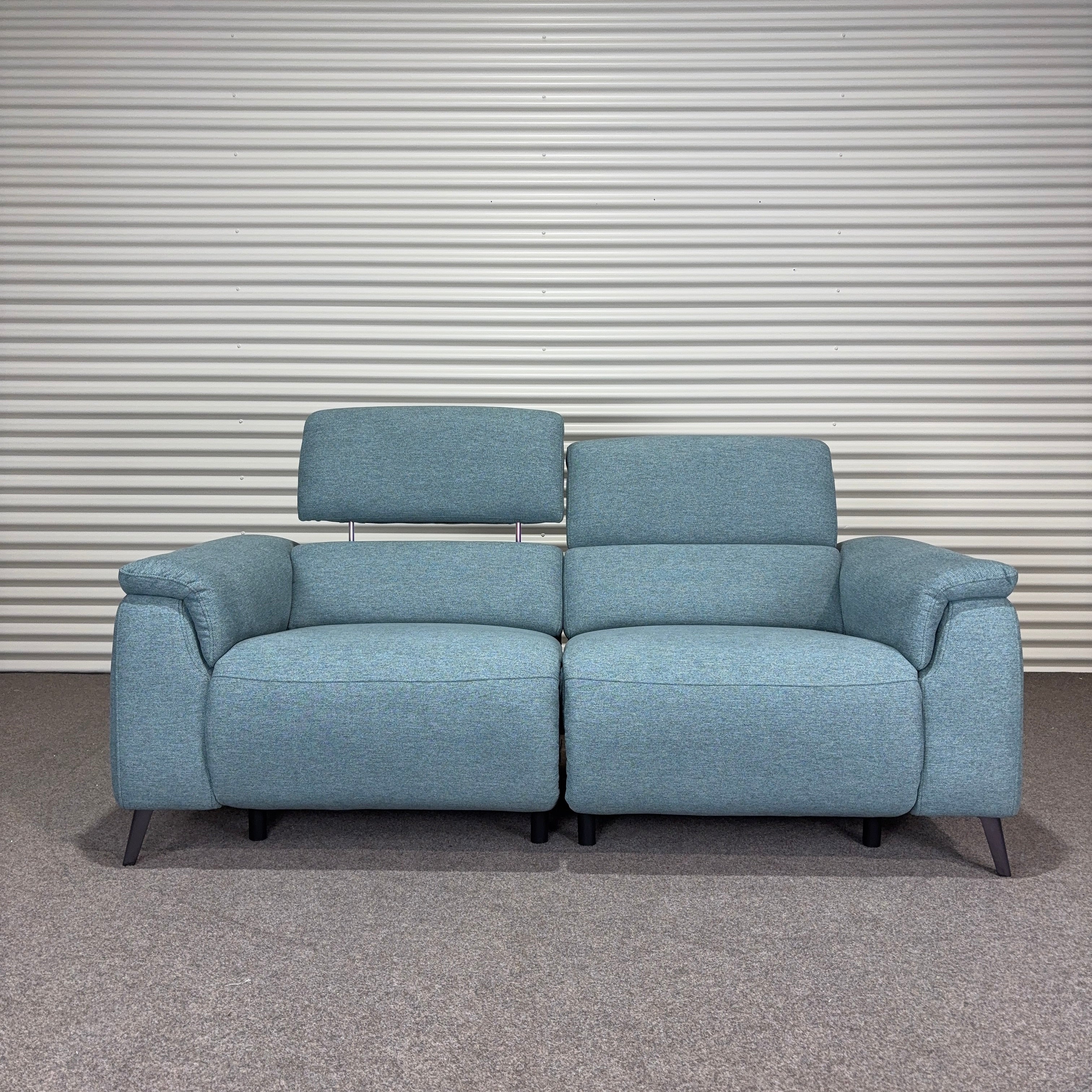 The Olivette 2-Seater Recliner Sofa blends modern convenience with everyday comfort. Upholstered in soft blue fabric, it features dual power recliners, supportive cushioning, and clever built-in arm storage with hidden cup holders — designed to keep everything close while you relax.