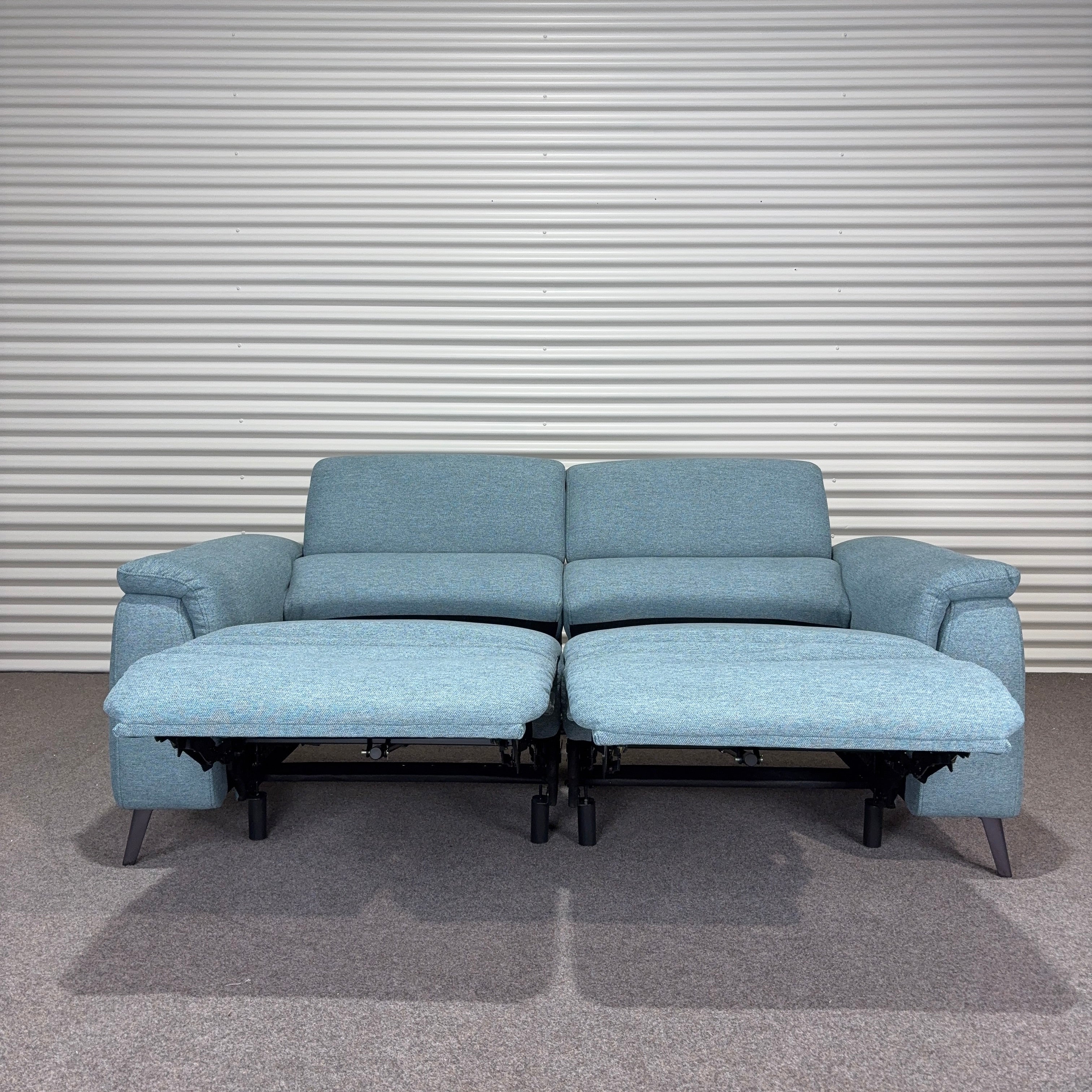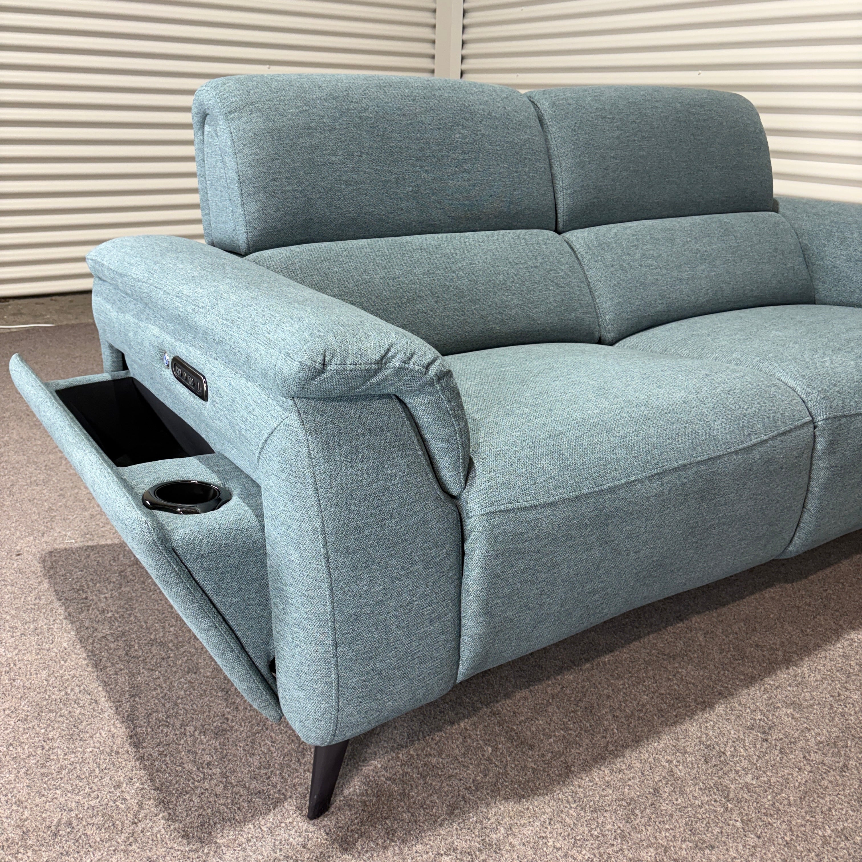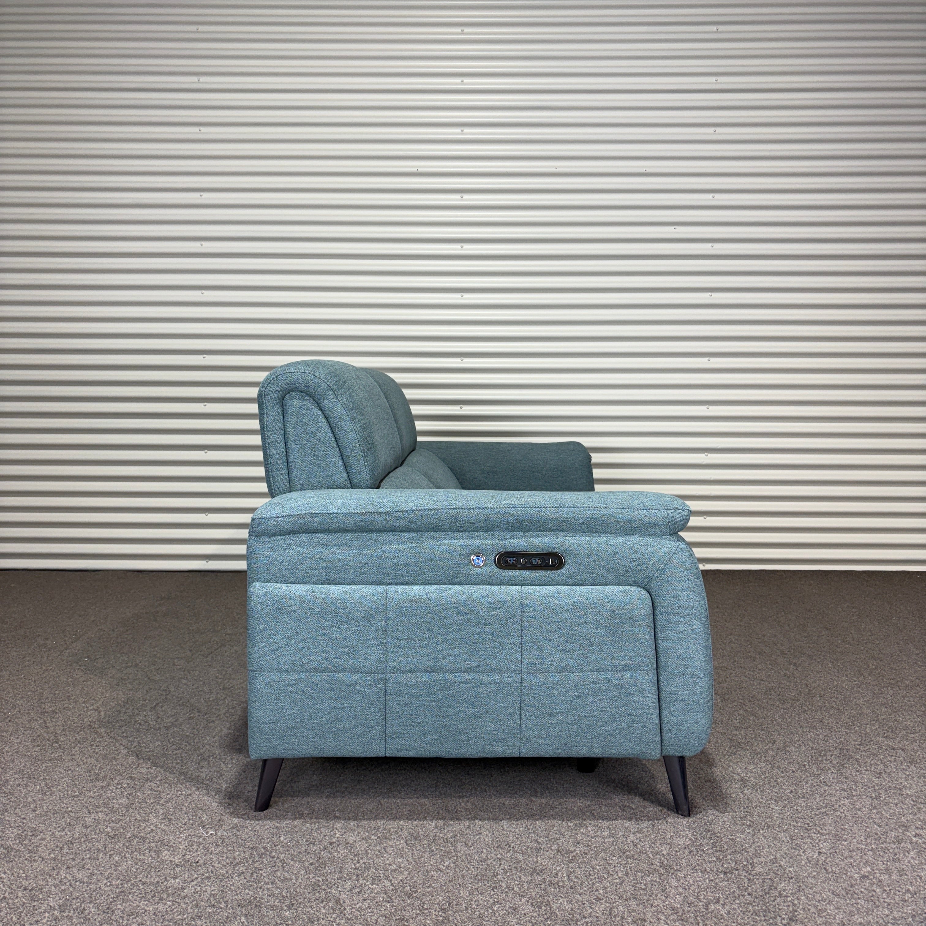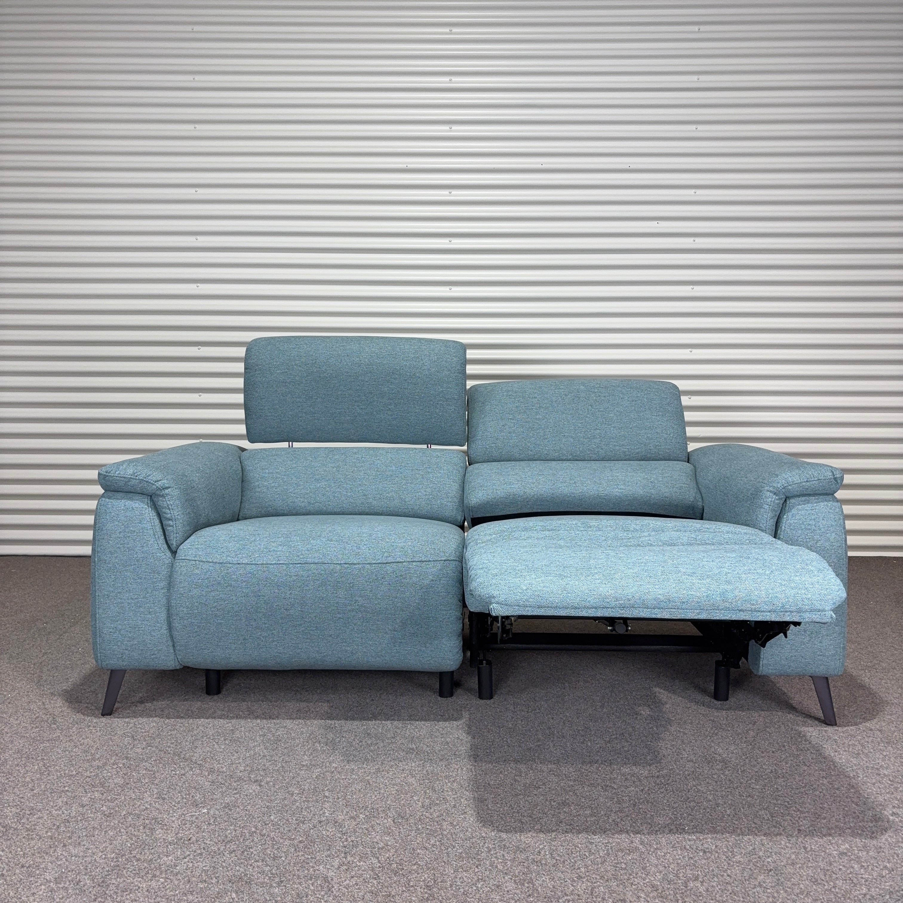 The Olivette 2-Seater Recliner Sofa blends modern convenience with everyday comfort. Upholstered in soft blue fabric, it features dual power recliners, supportive cushioning, and clever built-in arm storage with hidden cup holders — designed to keep everything close while you relax.