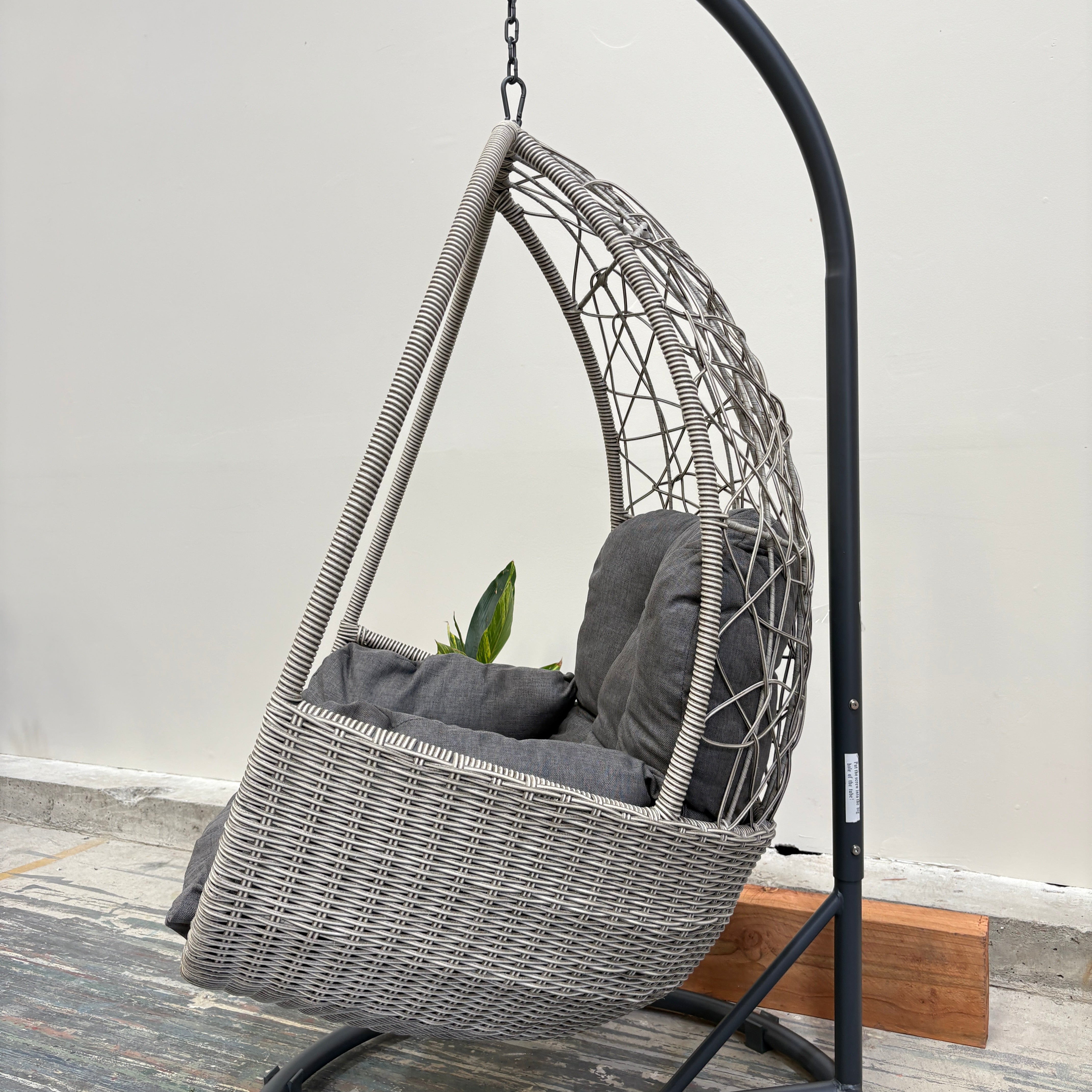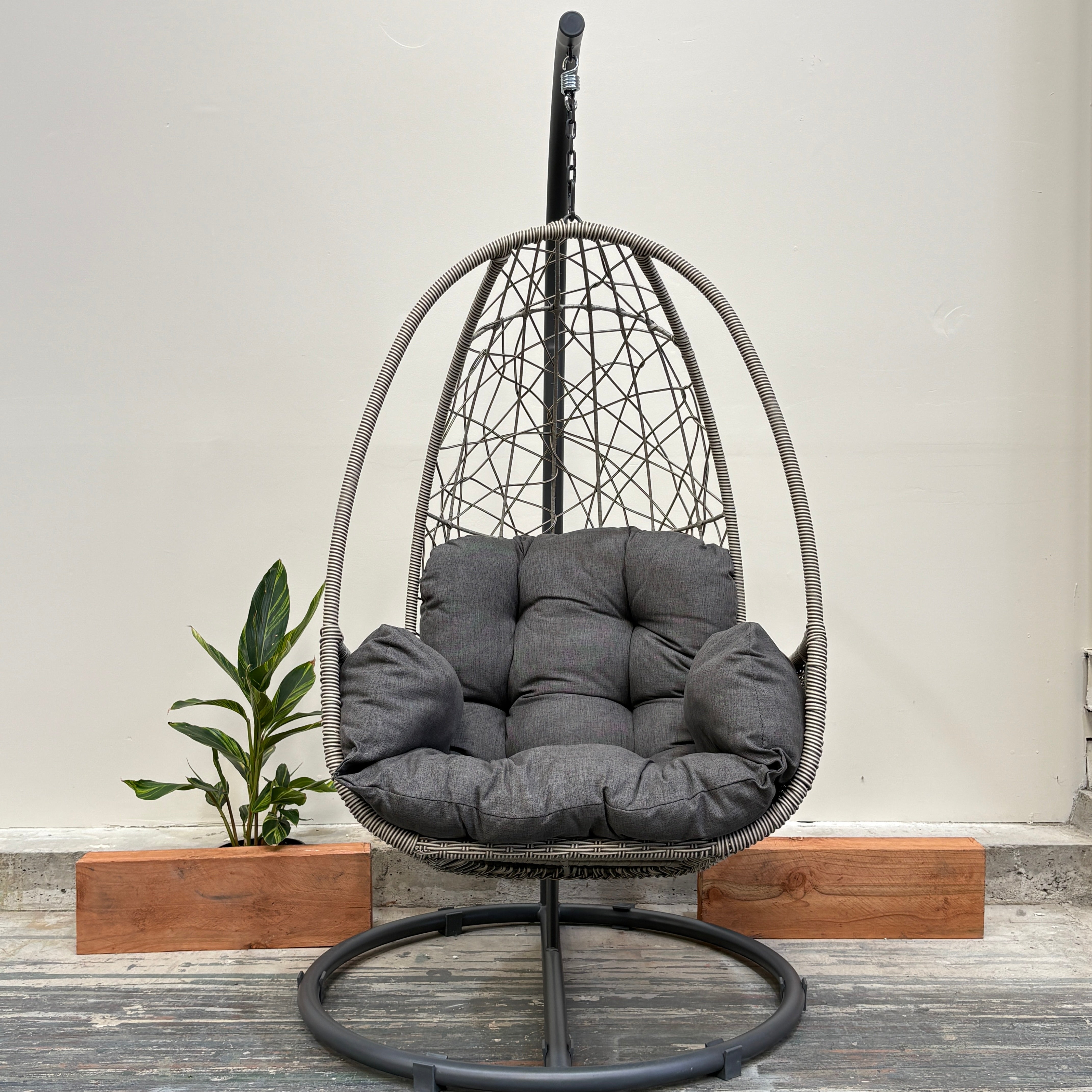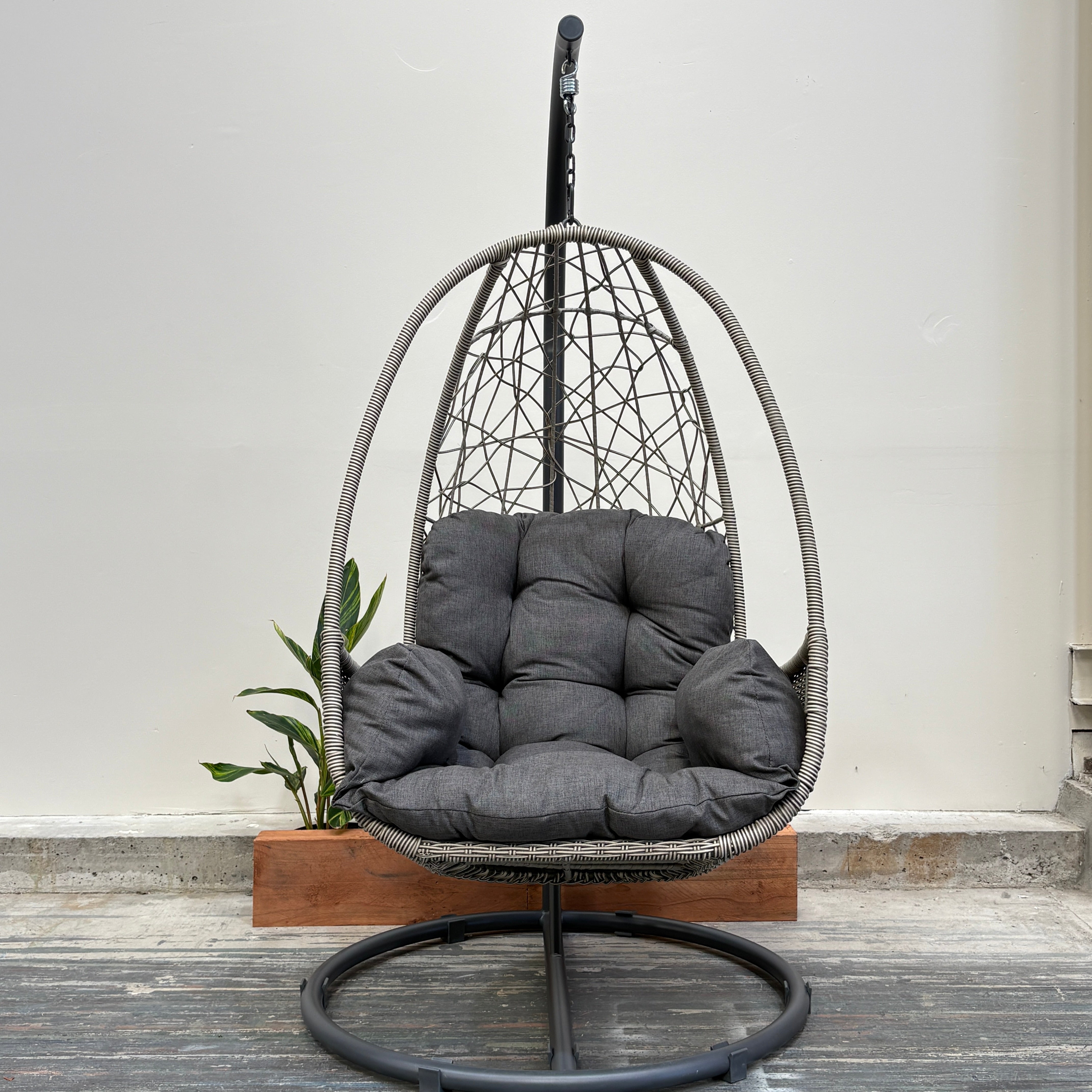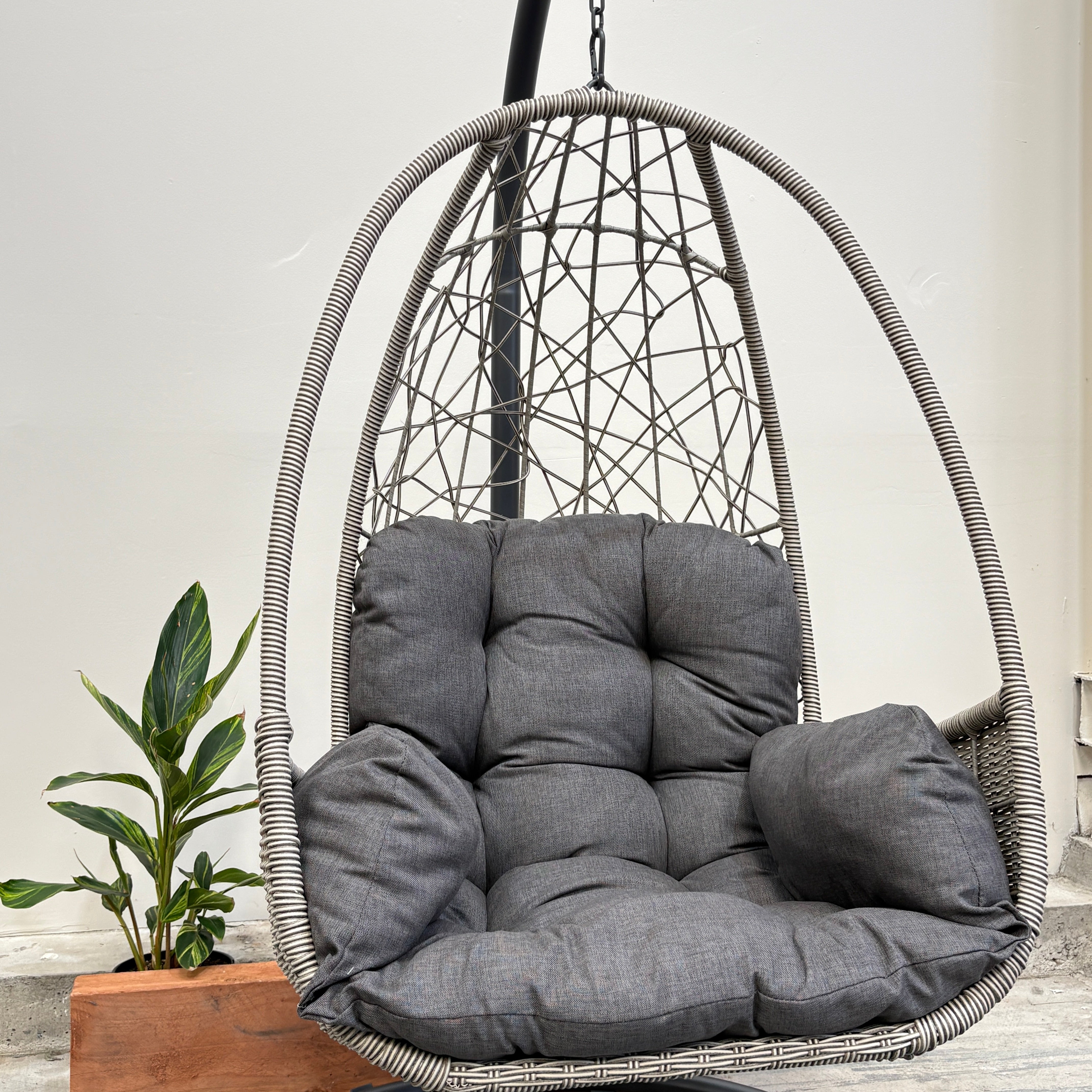 Sink into laid-back comfort with the Palma Single Egg Chair – the perfect spot for reading, relaxing, or soaking up the sunshine. Its airy woven resin wicker frame cradles a plush charcoal cushion, while the sturdy powder-coated base keeps you supported indoors or out.