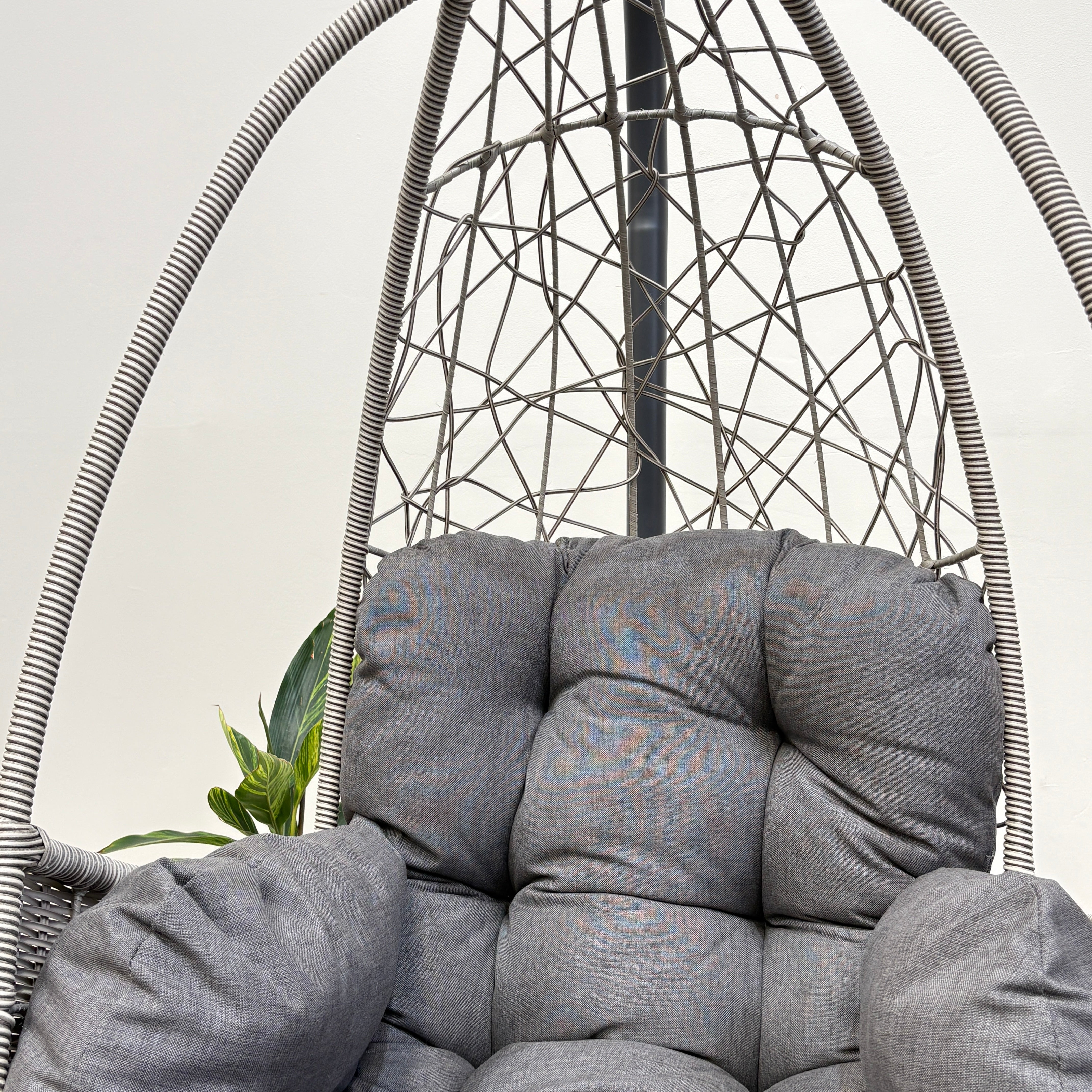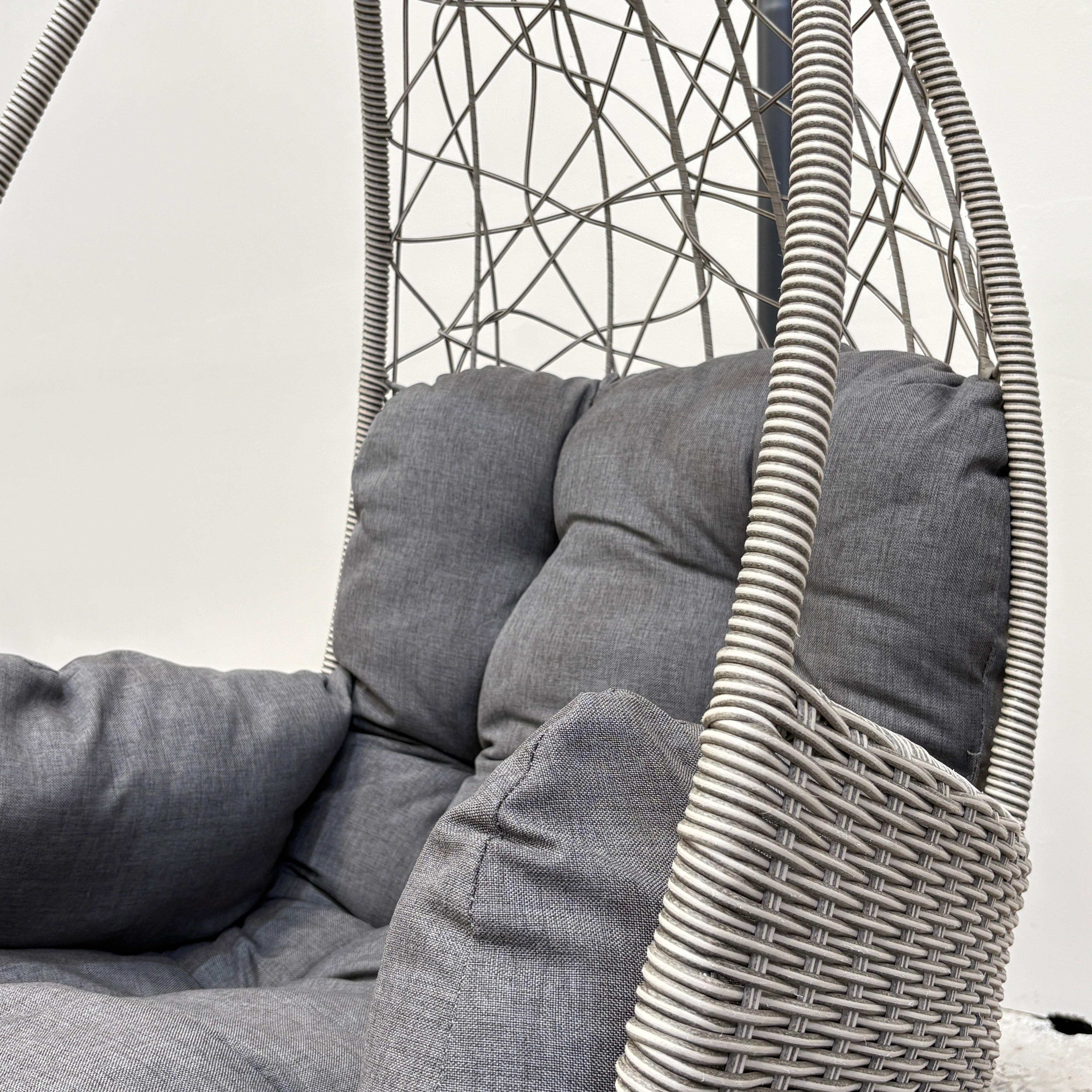 Palma Single Egg Chair with Cushion | Light Grey Resin Wicker / Charcoal Fabric