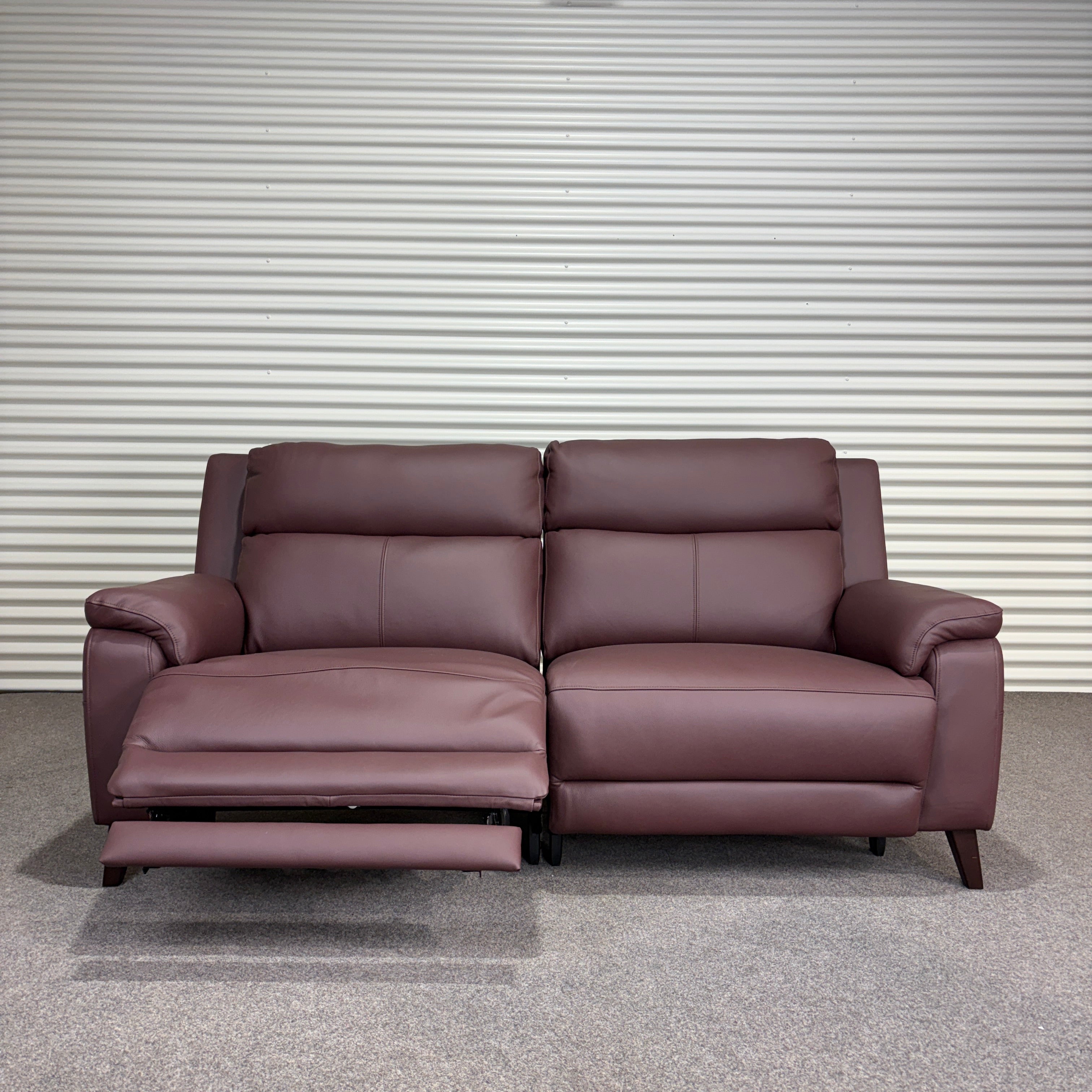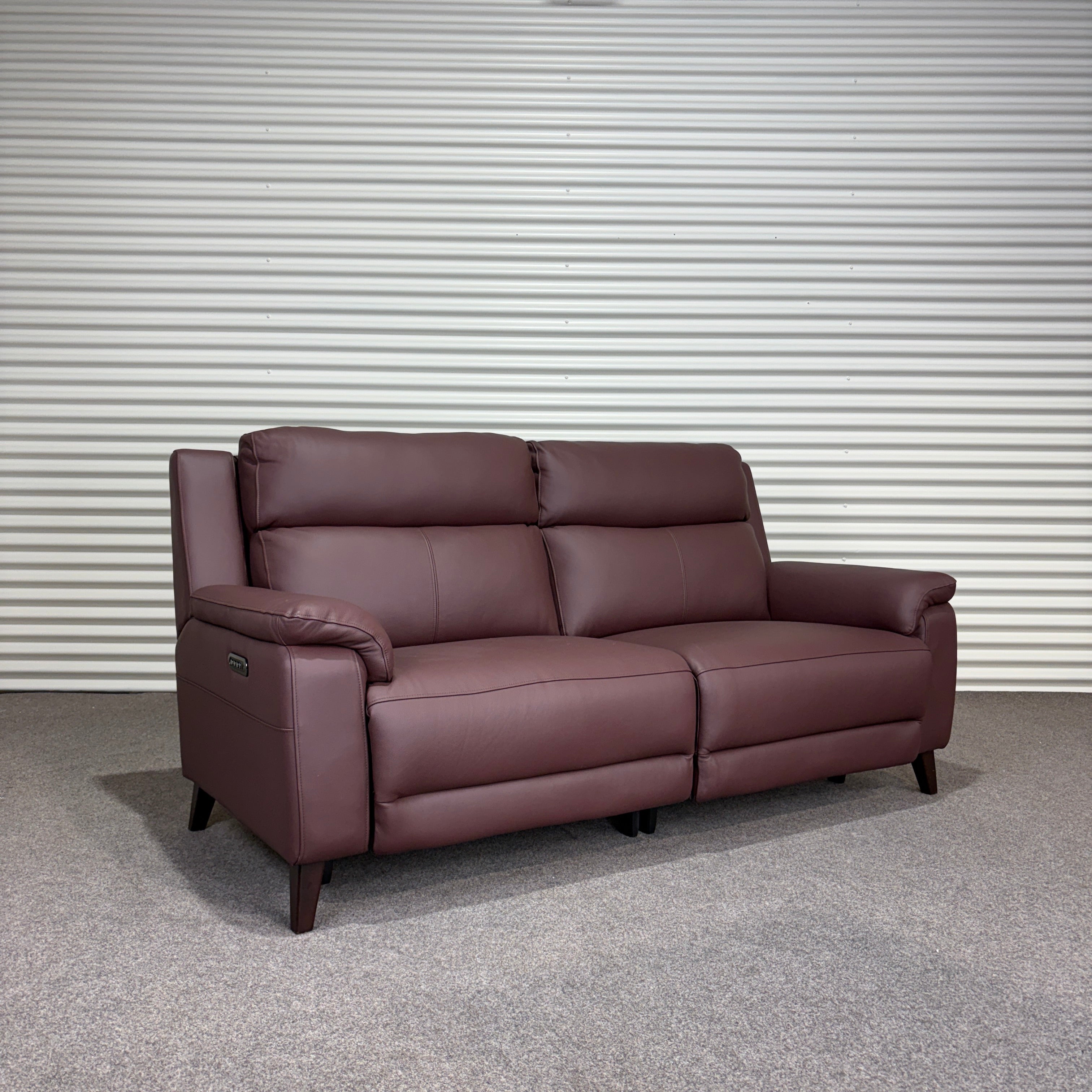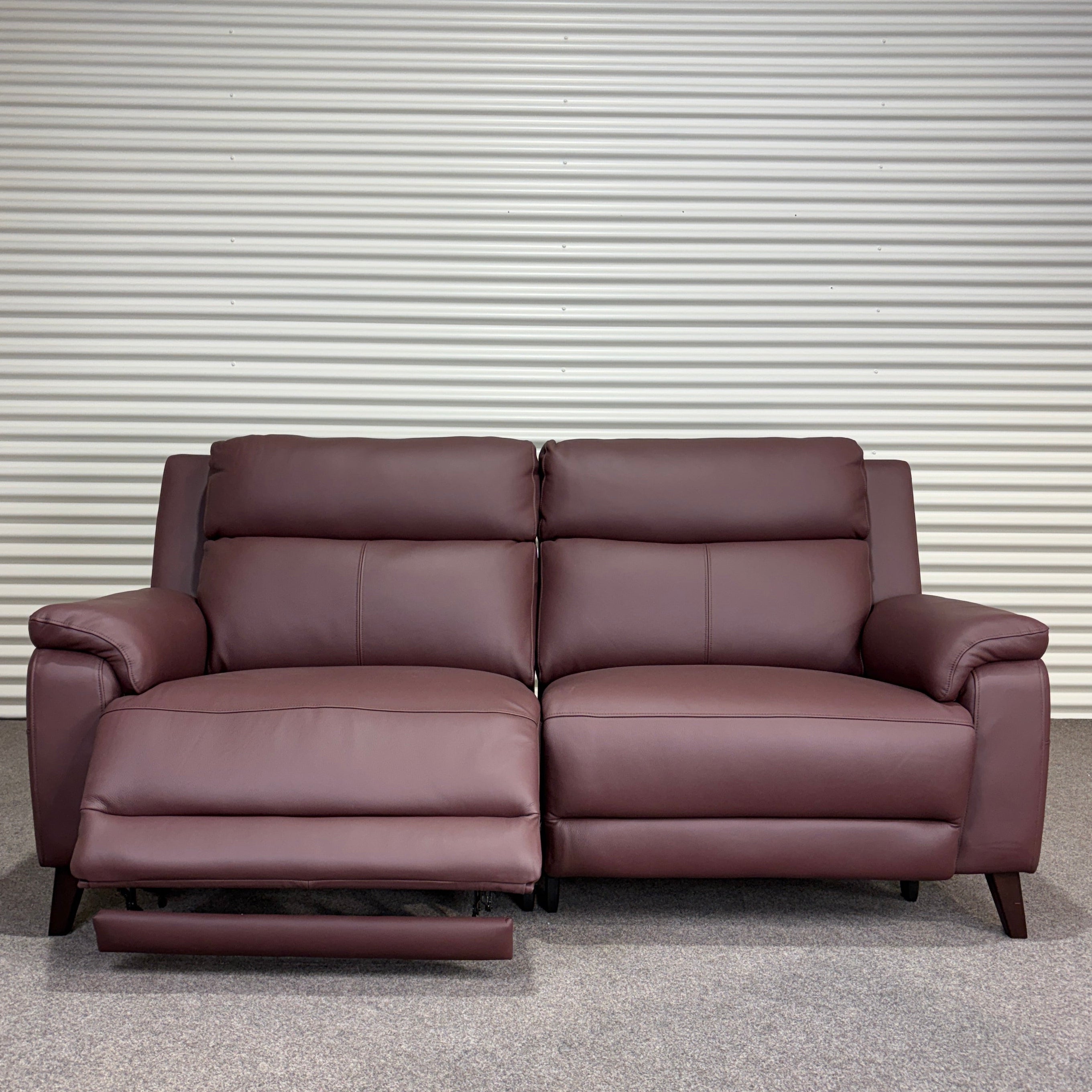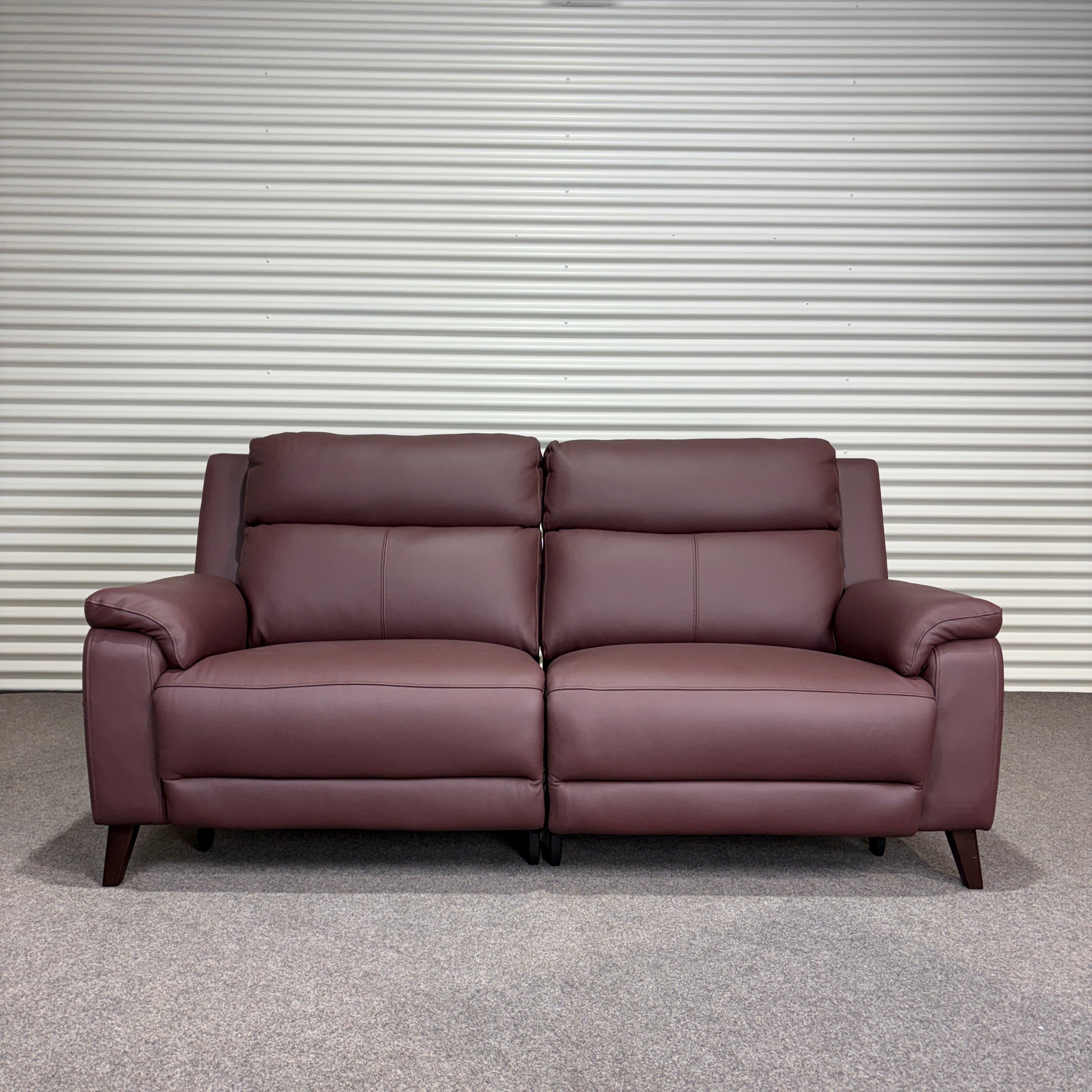 The Ron Burgundy 2-Seater Recliner Sofa is where bold colour meets refined comfort. Upholstered in rich burgundy leather, it features dual power recliners with sleek controls, letting you relax at the push of a button. Slim arms, tailored lines, and raised timber legs add a modern edge to its luxurious feel.