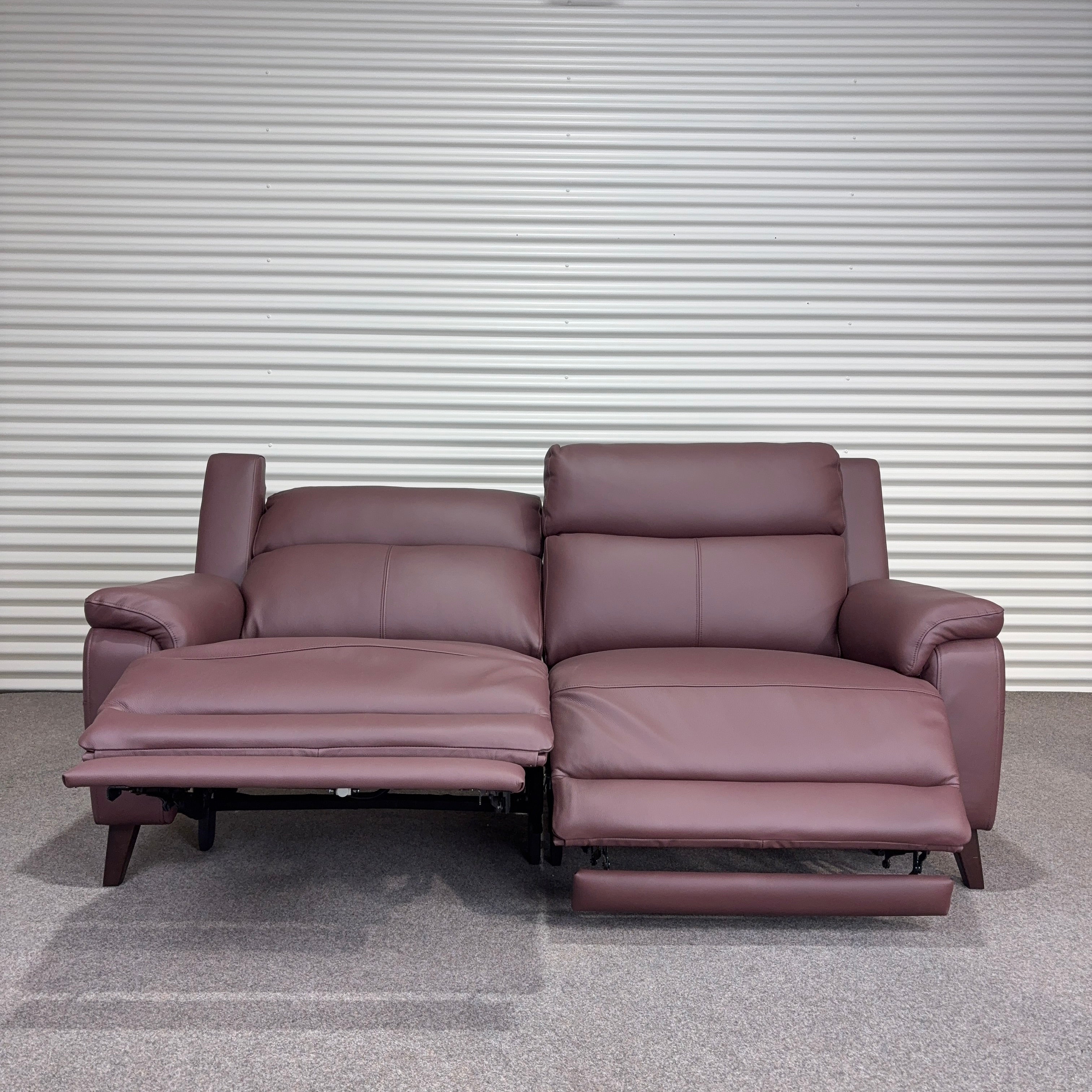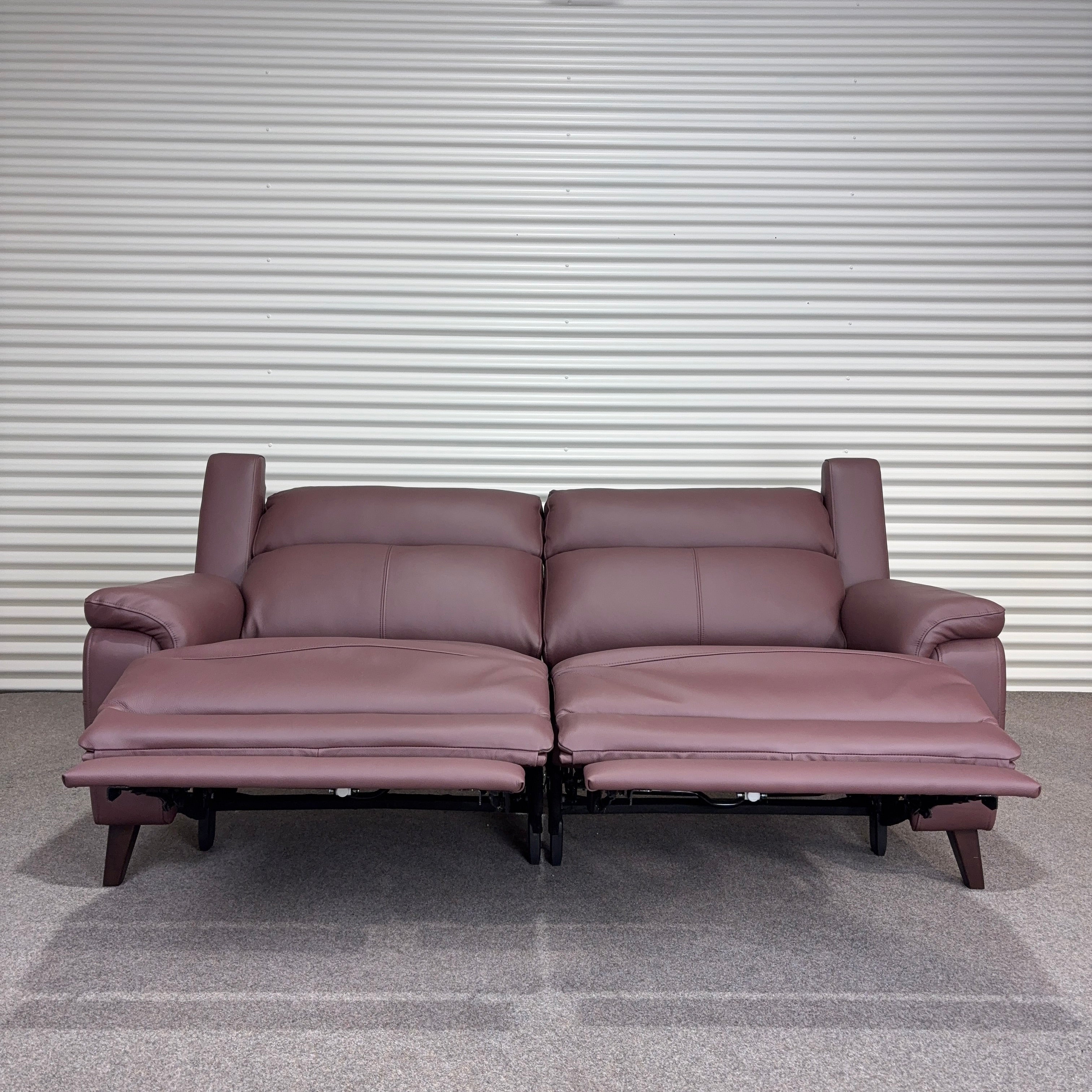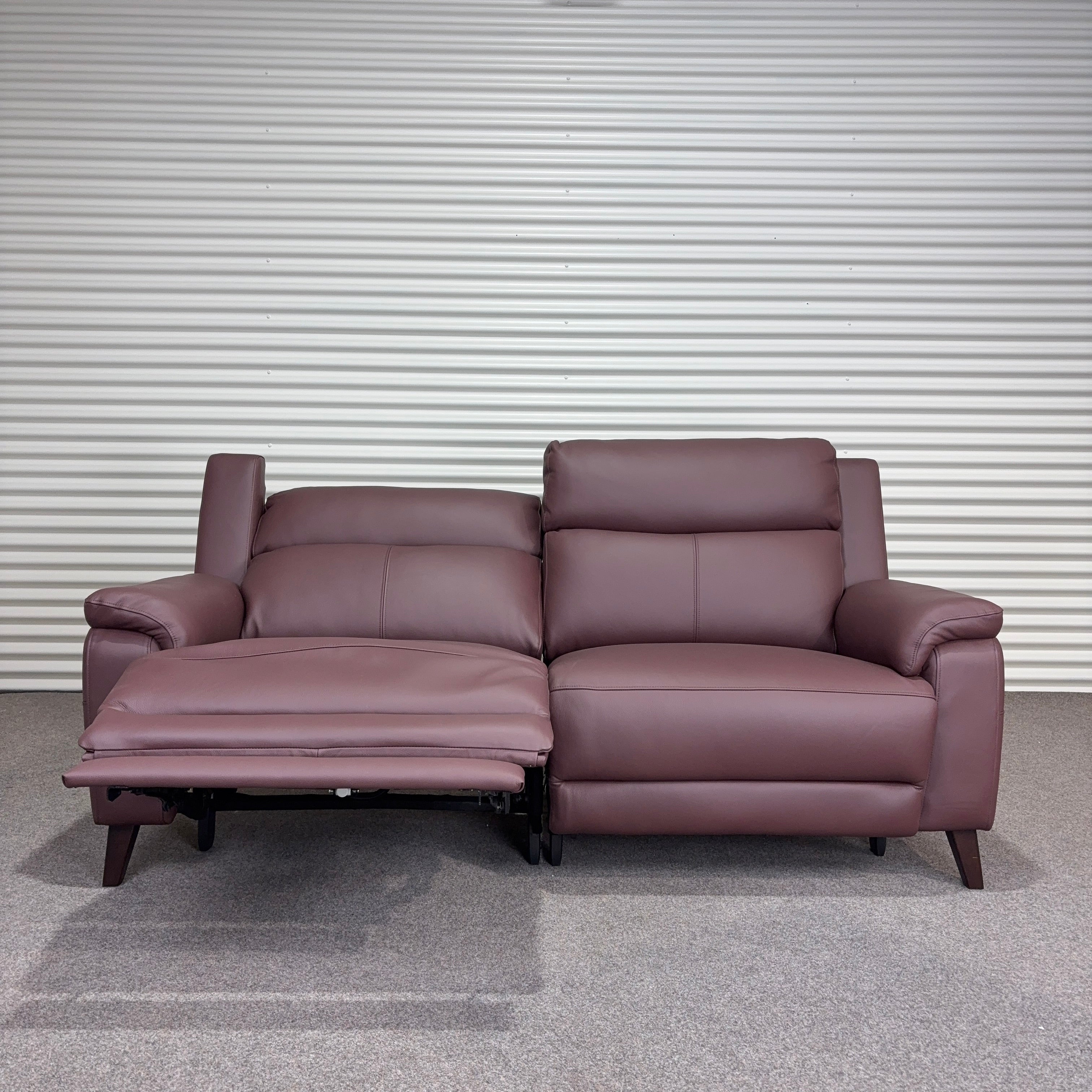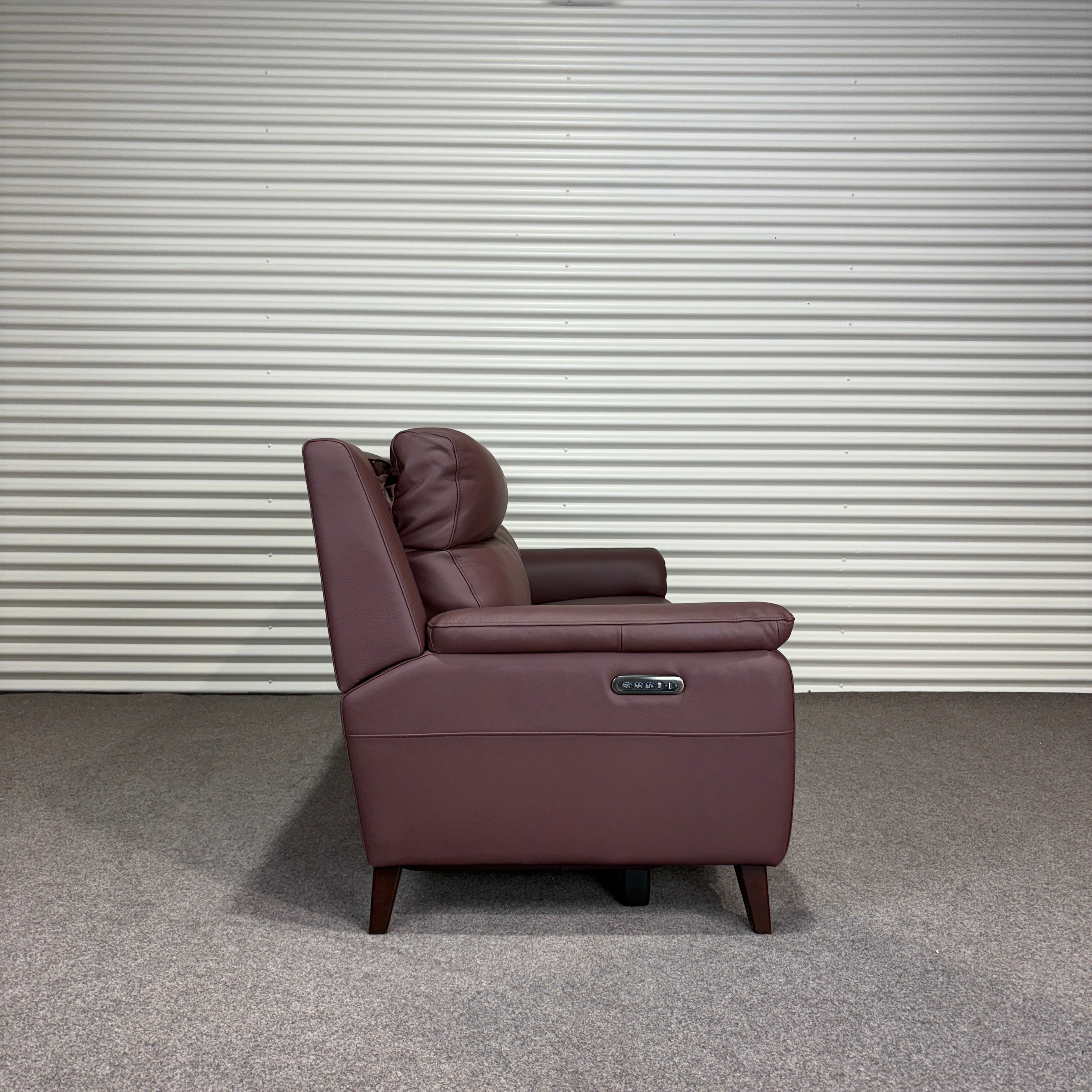 The Ron Burgundy 2-Seater Recliner Sofa is where bold colour meets refined comfort. Upholstered in rich burgundy leather, it features dual power recliners with sleek controls, letting you relax at the push of a button. Slim arms, tailored lines, and raised timber legs add a modern edge to its luxurious feel.