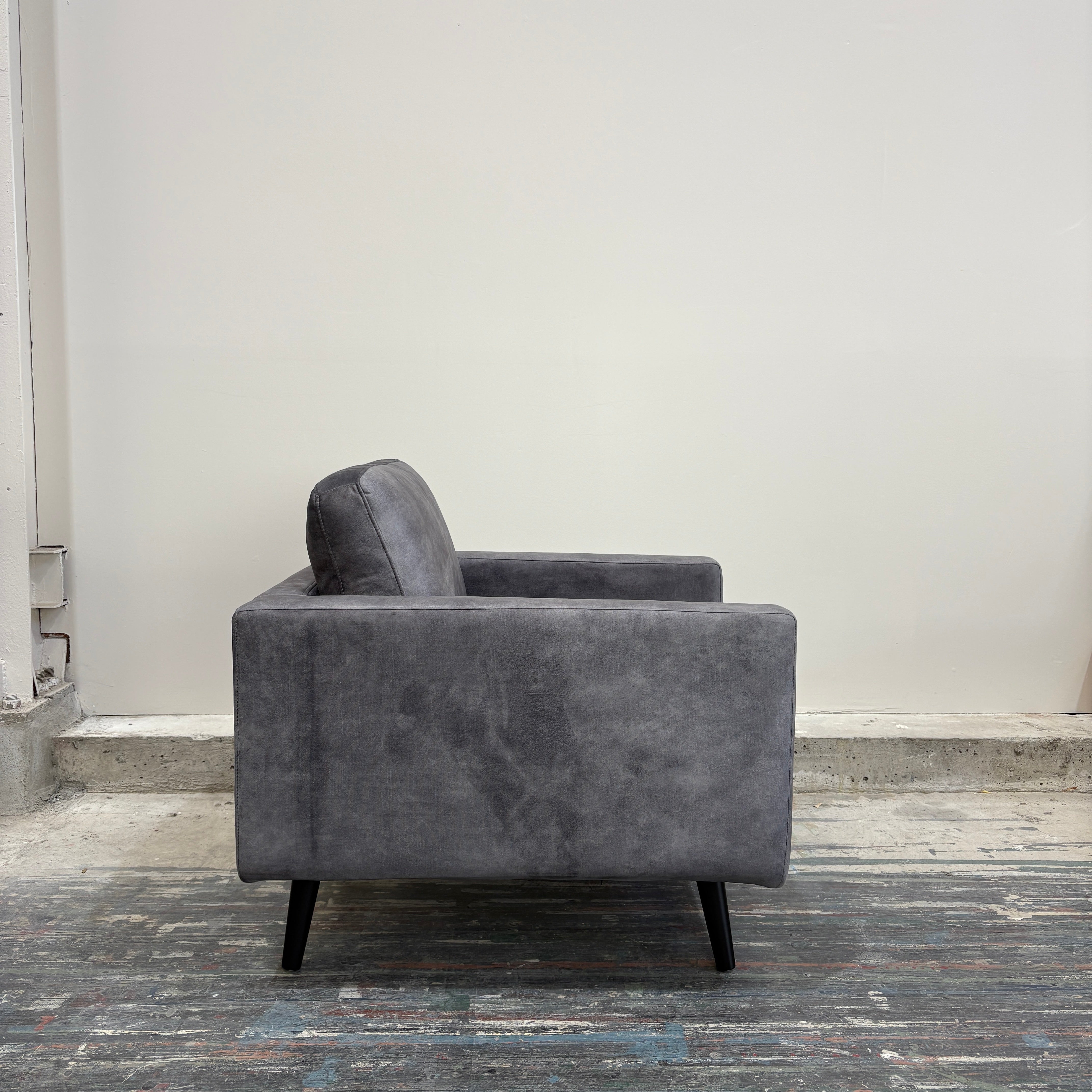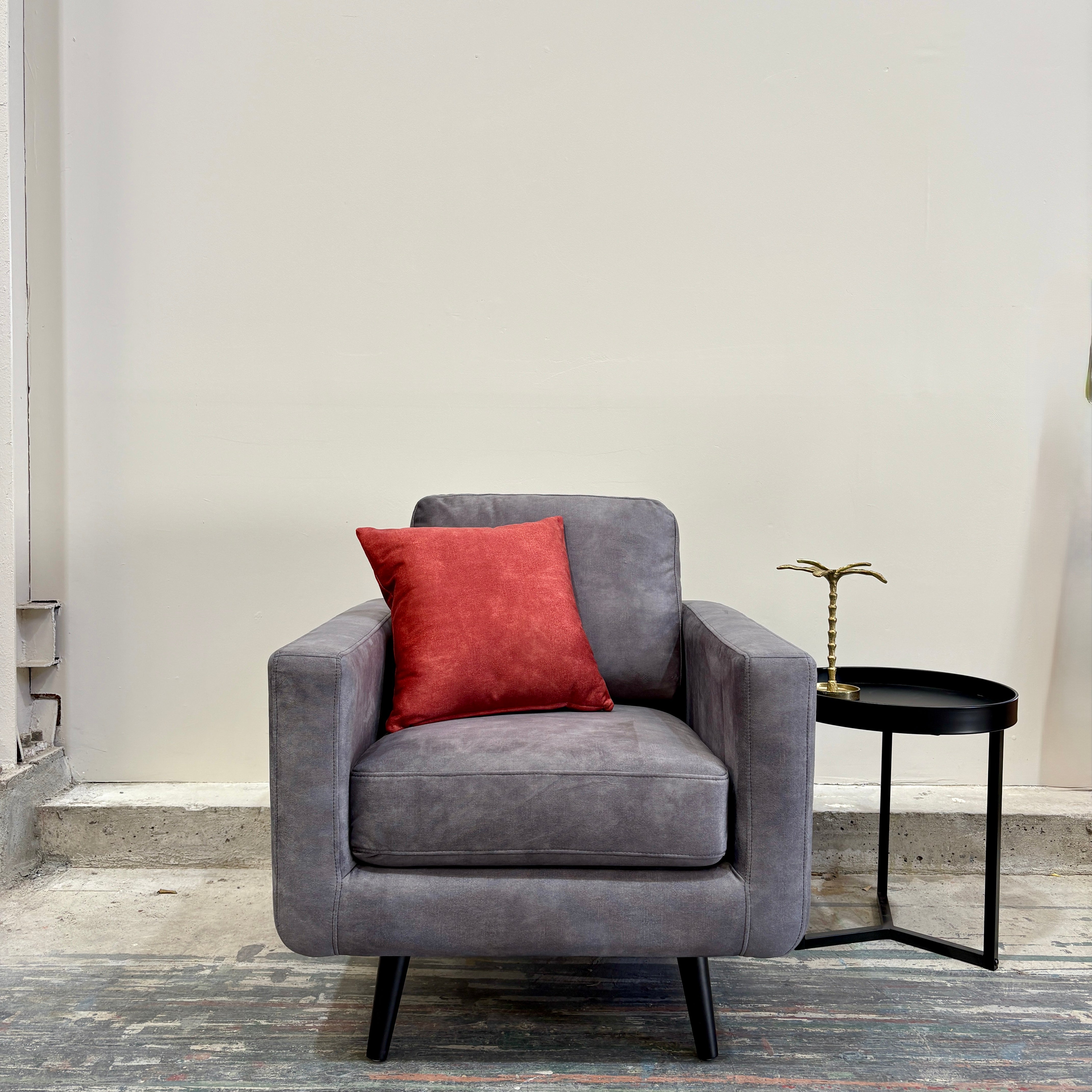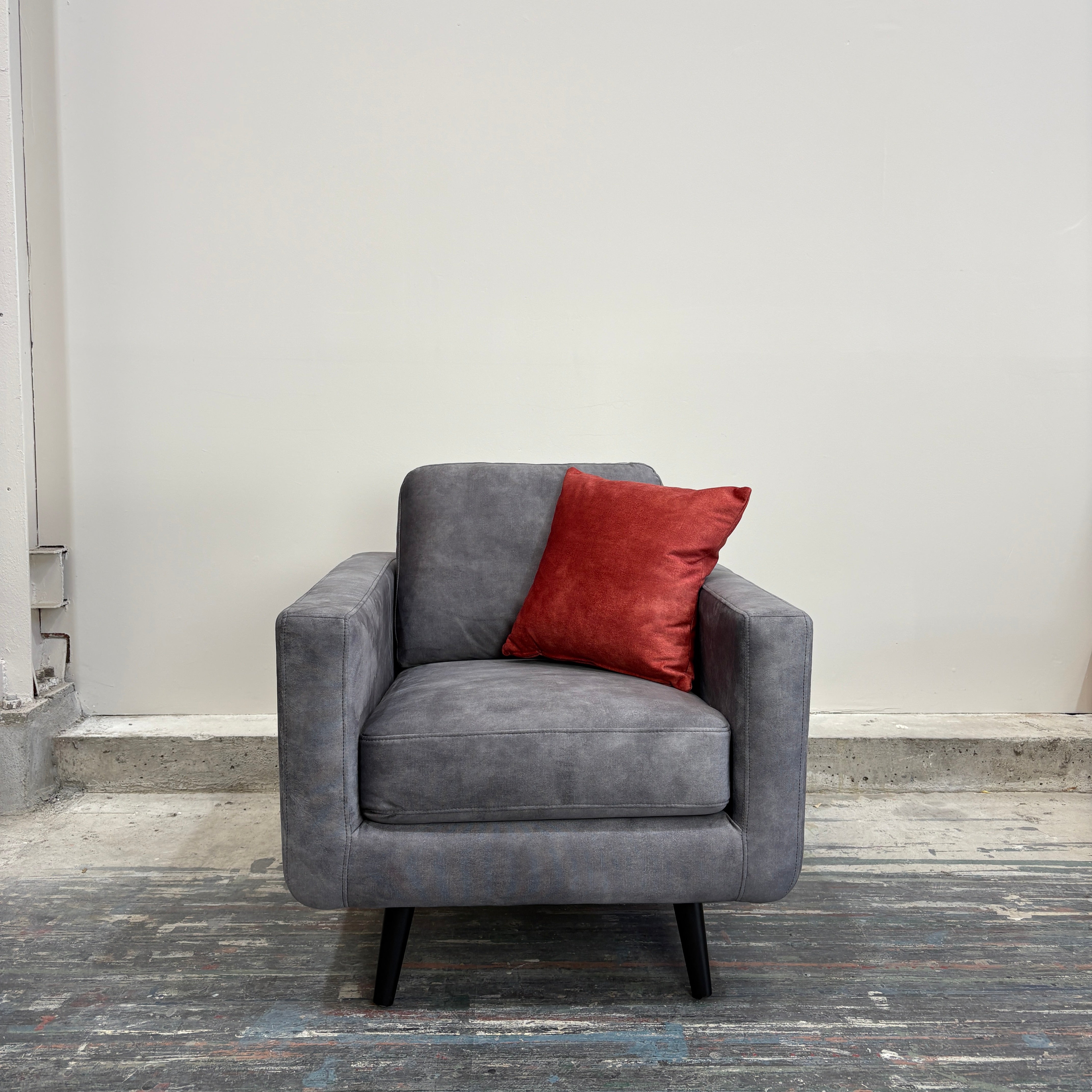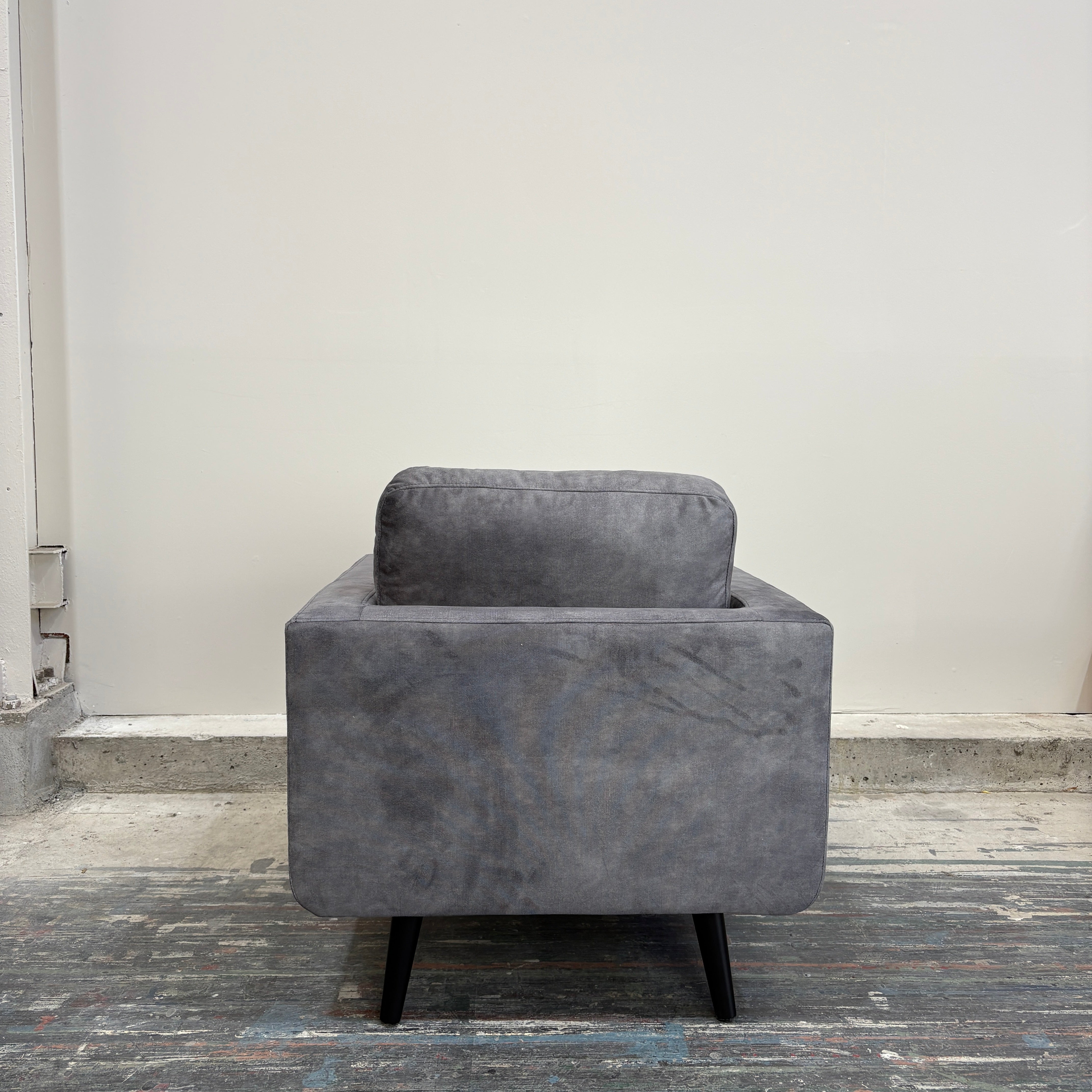 The Stationary Chair brings modern simplicity and everyday comfort together in one sleek package. Upholstered in a soft grey suede-look fabric, it’s the perfect accent chair for your lounge, office, or reading nook.