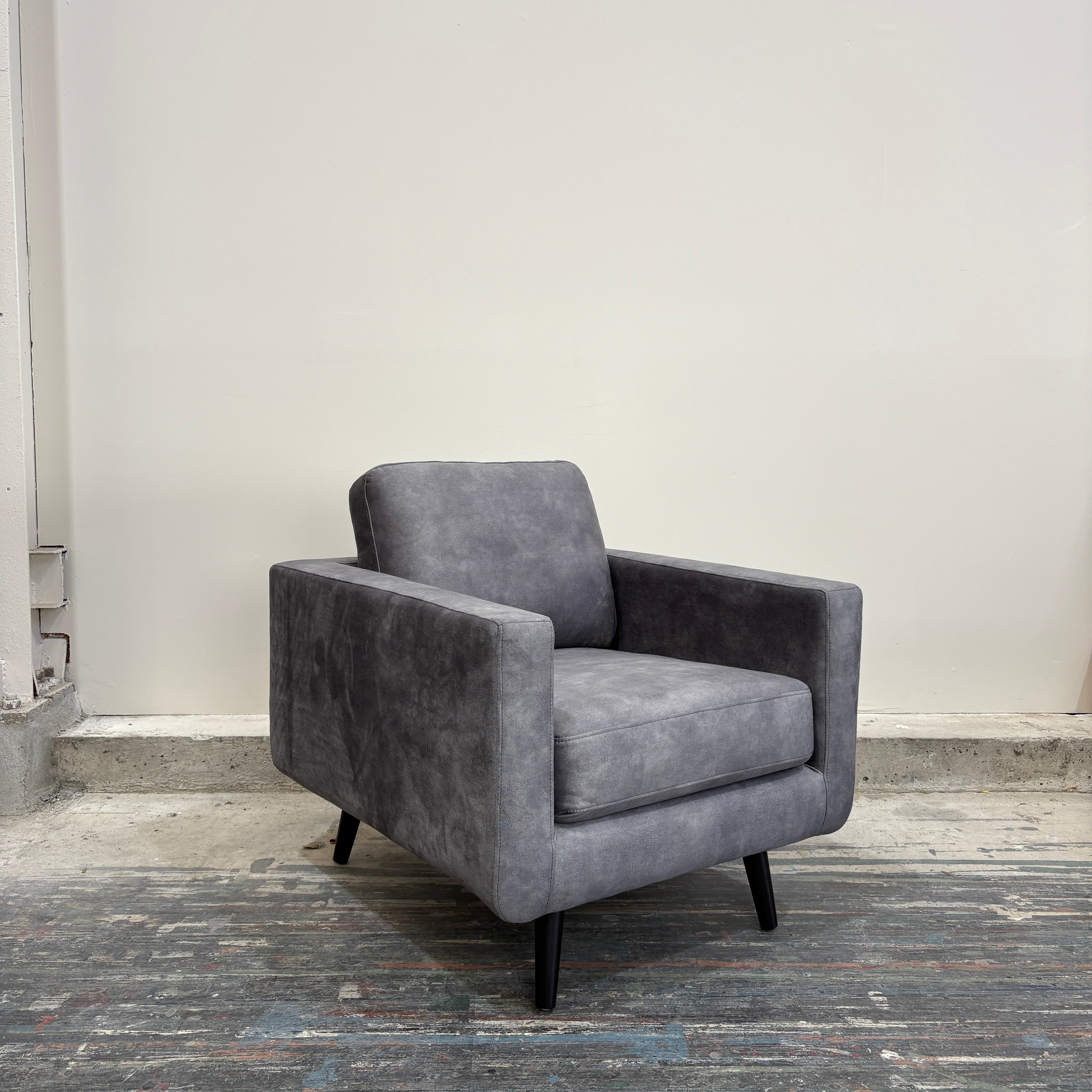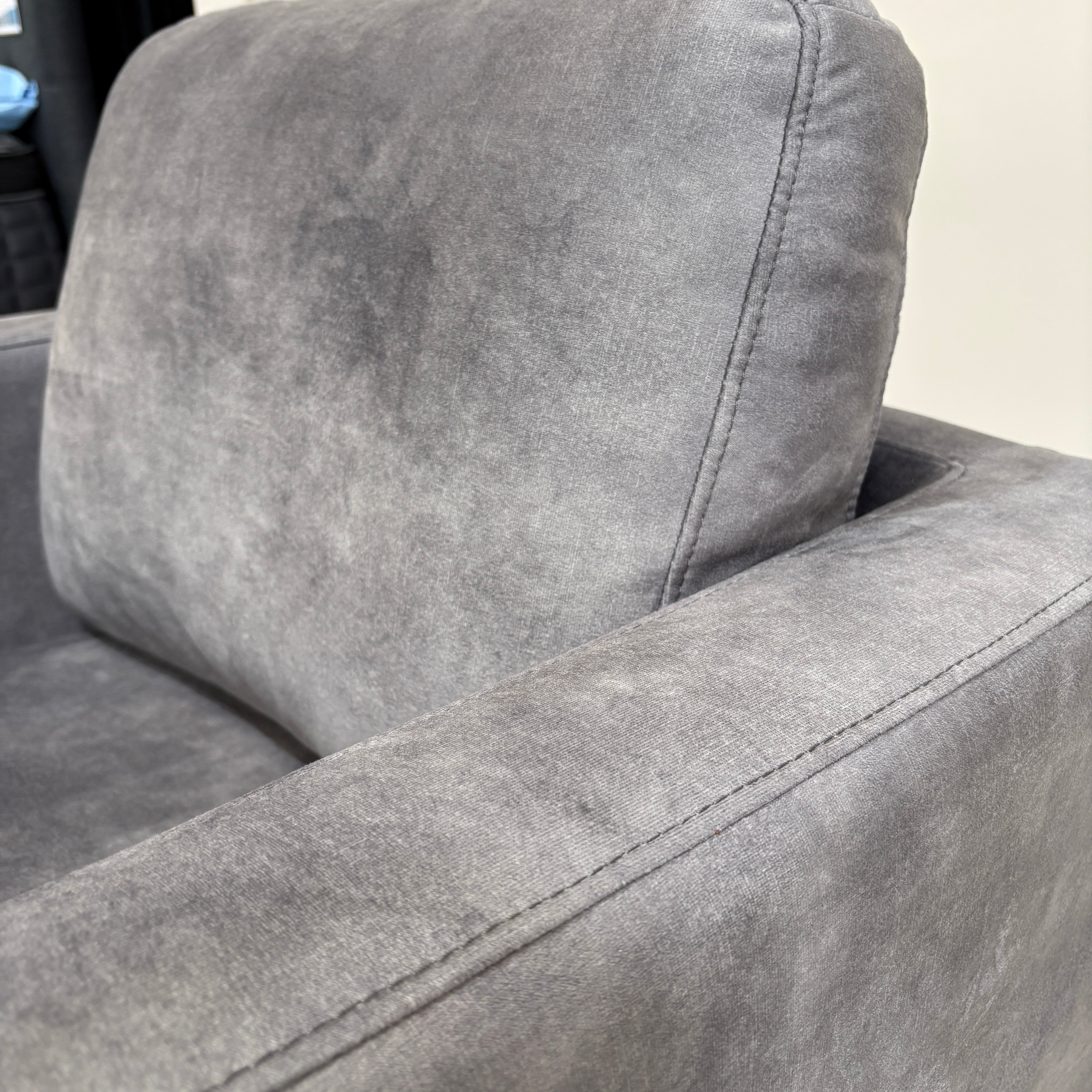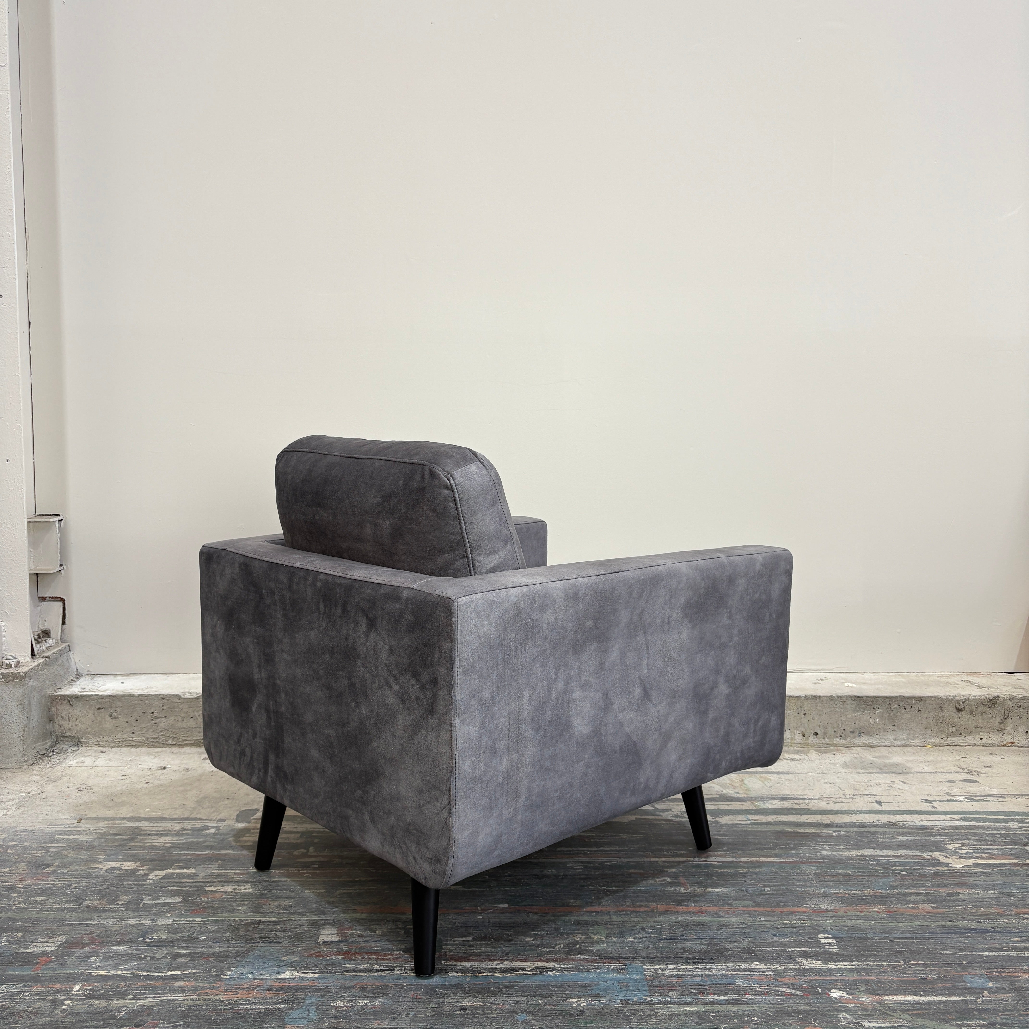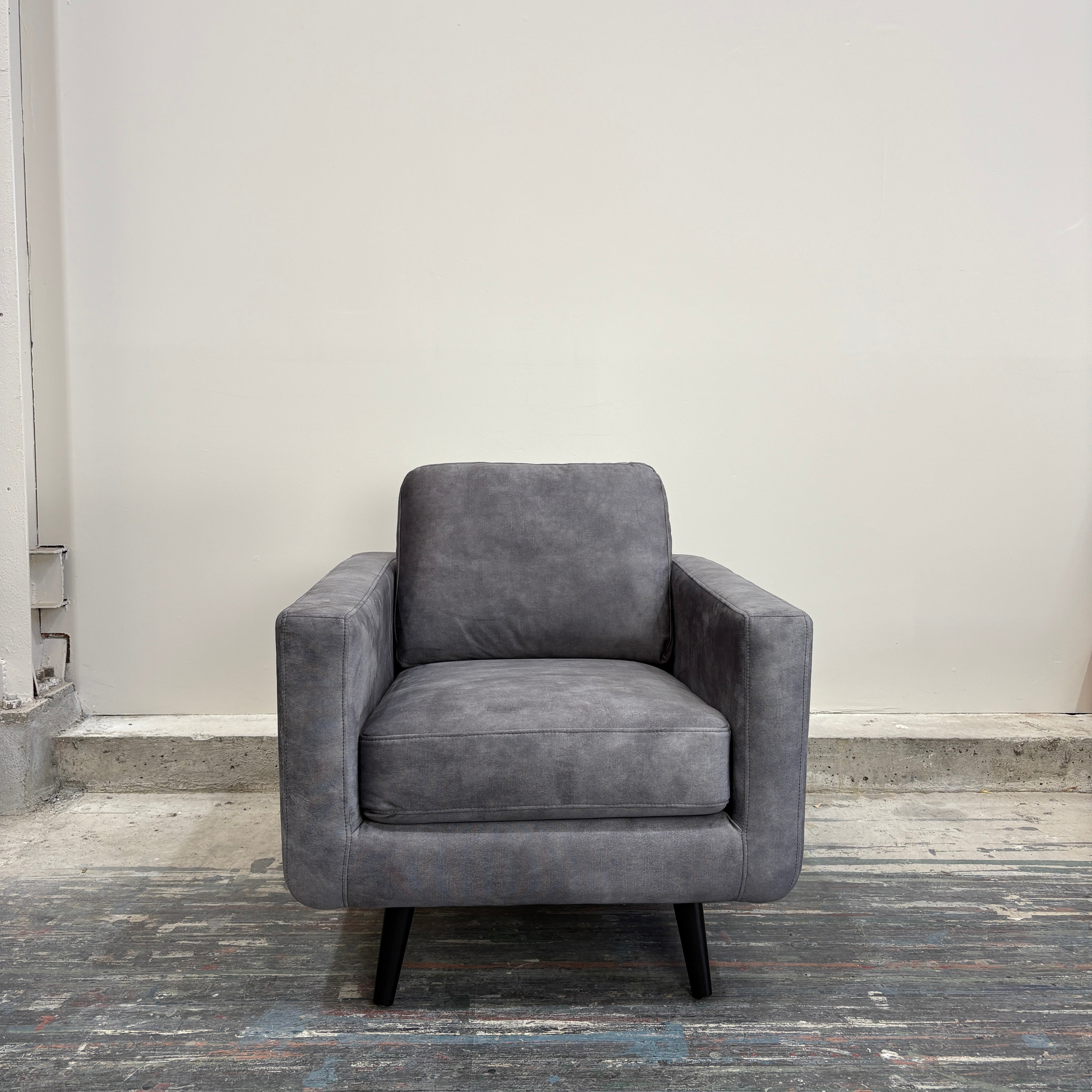 The Stationary Chair brings modern simplicity and everyday comfort together in one sleek package. Upholstered in a soft grey suede-look fabric, it’s the perfect accent chair for your lounge, office, or reading nook.