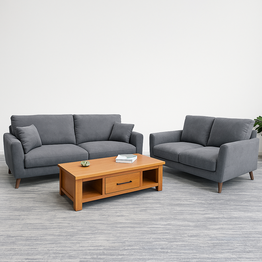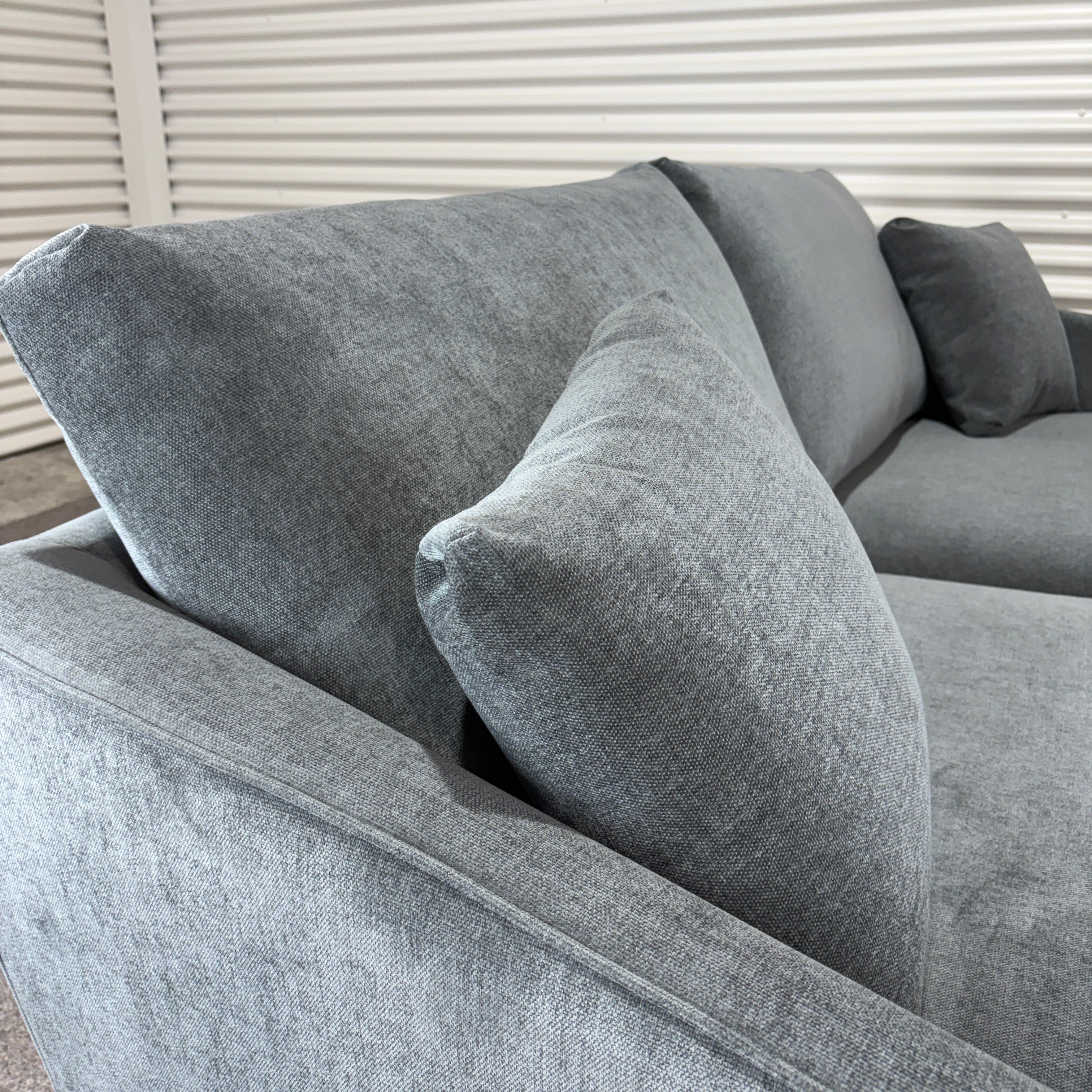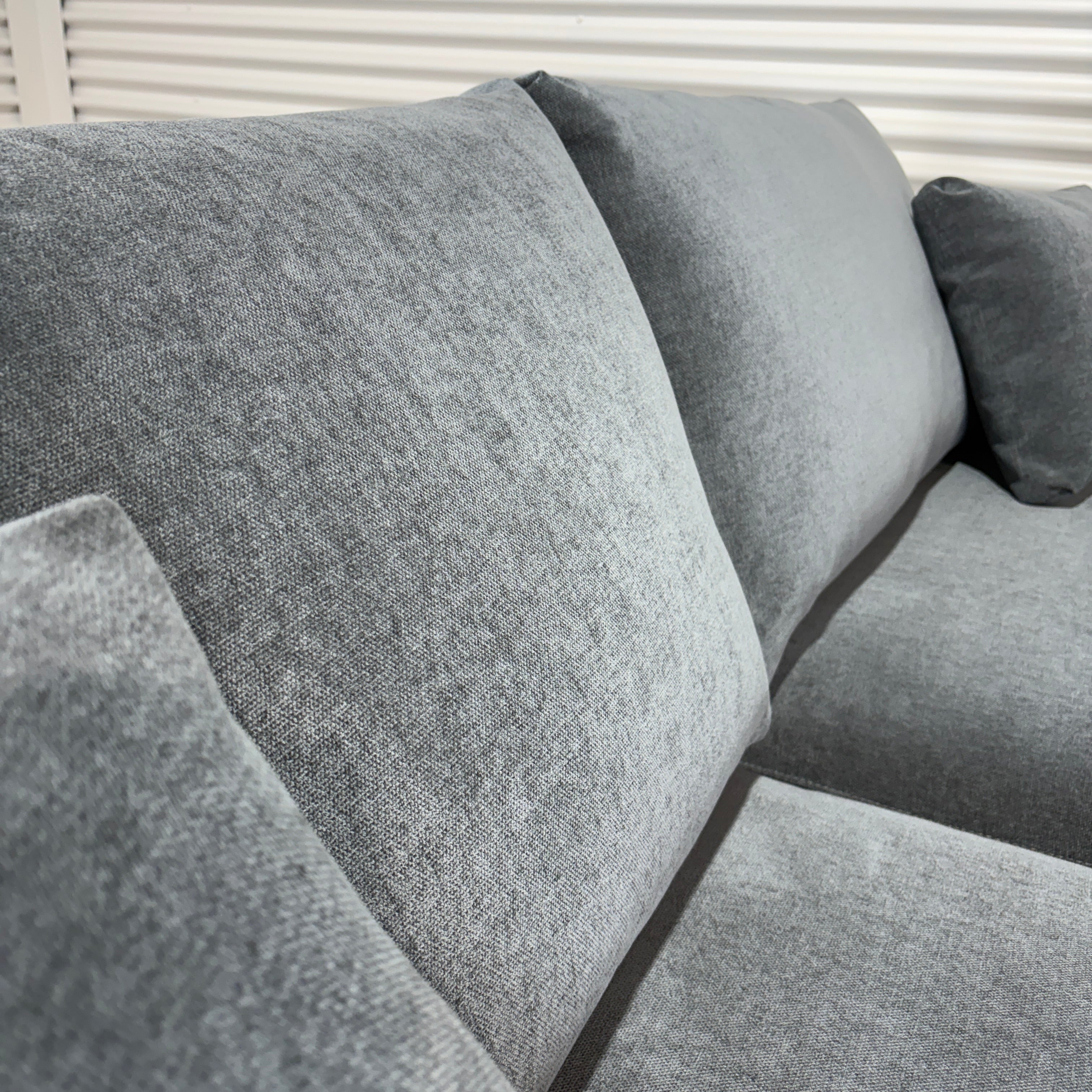 The Swanson Sofa Range brings a sleek, modern feel to your living space — designed for comfort, crafted for real life. Upholstered in a soft Licorice grey fabric, this sofa offers deep cushioning, clean lines, and a relaxed contemporary look that fits any home.