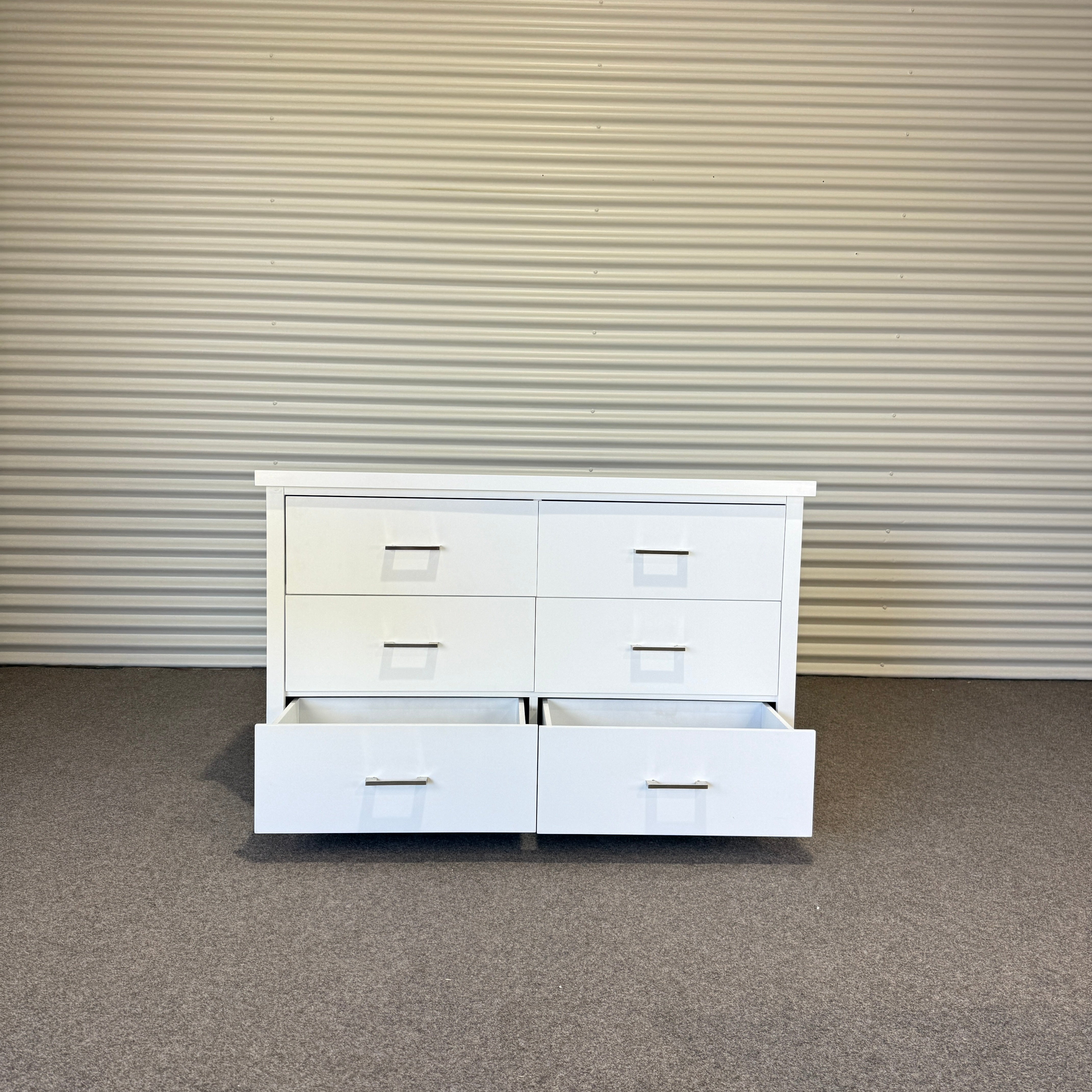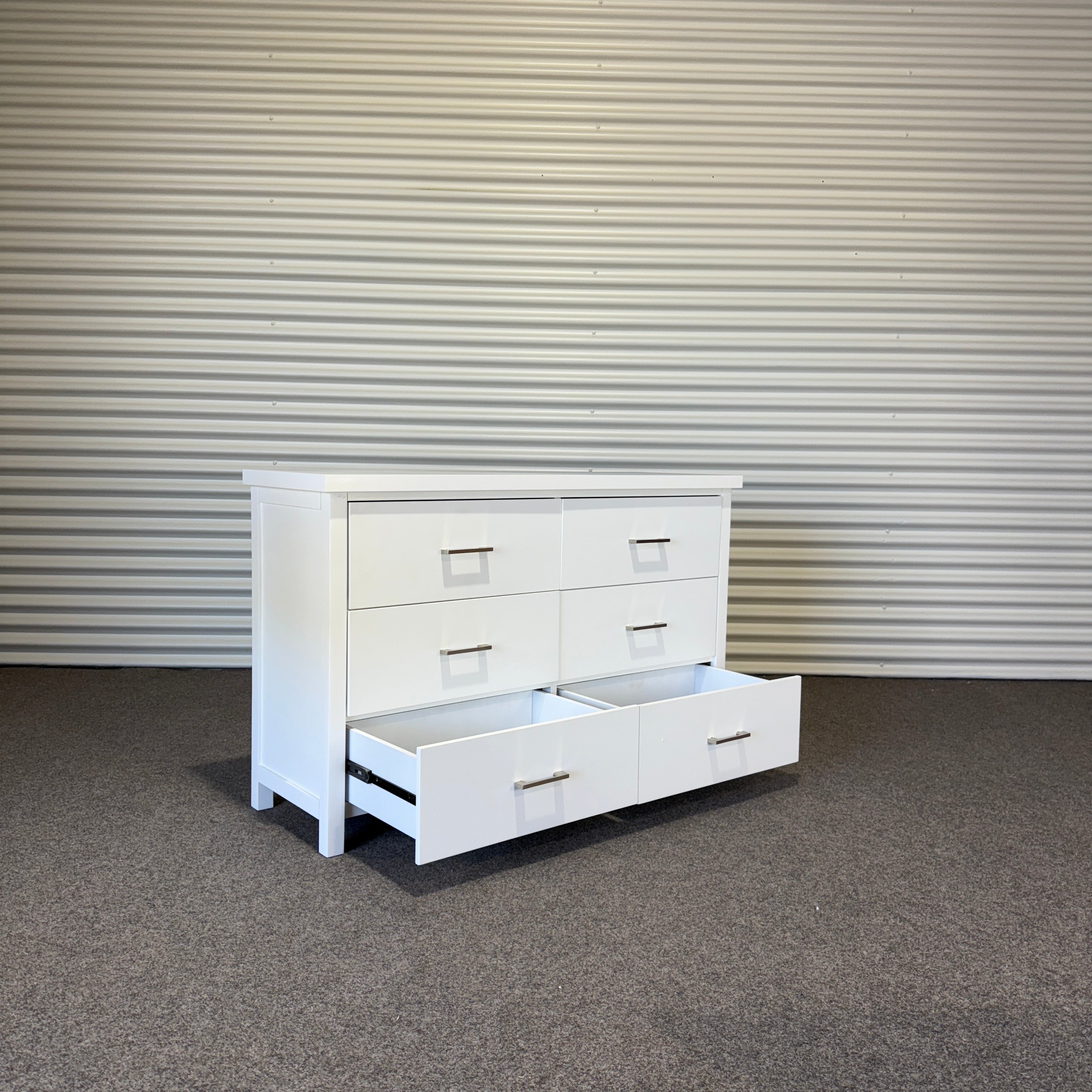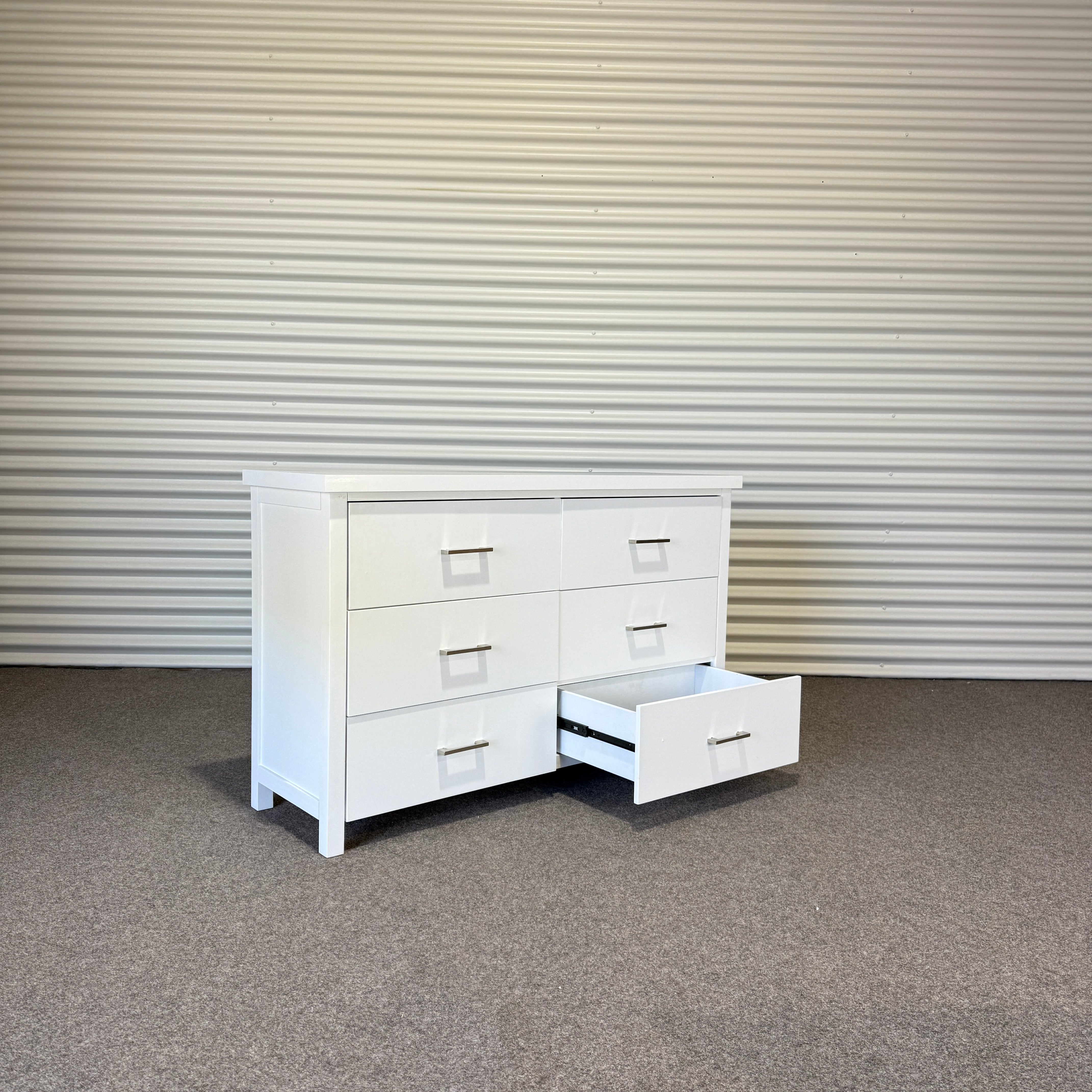 Brighten your bedroom with the timeless White 6-Drawer Lowboy — a simple, functional piece that never goes out of style. Its crisp white finish and clean lines make it a perfect fit for both classic and modern spaces.