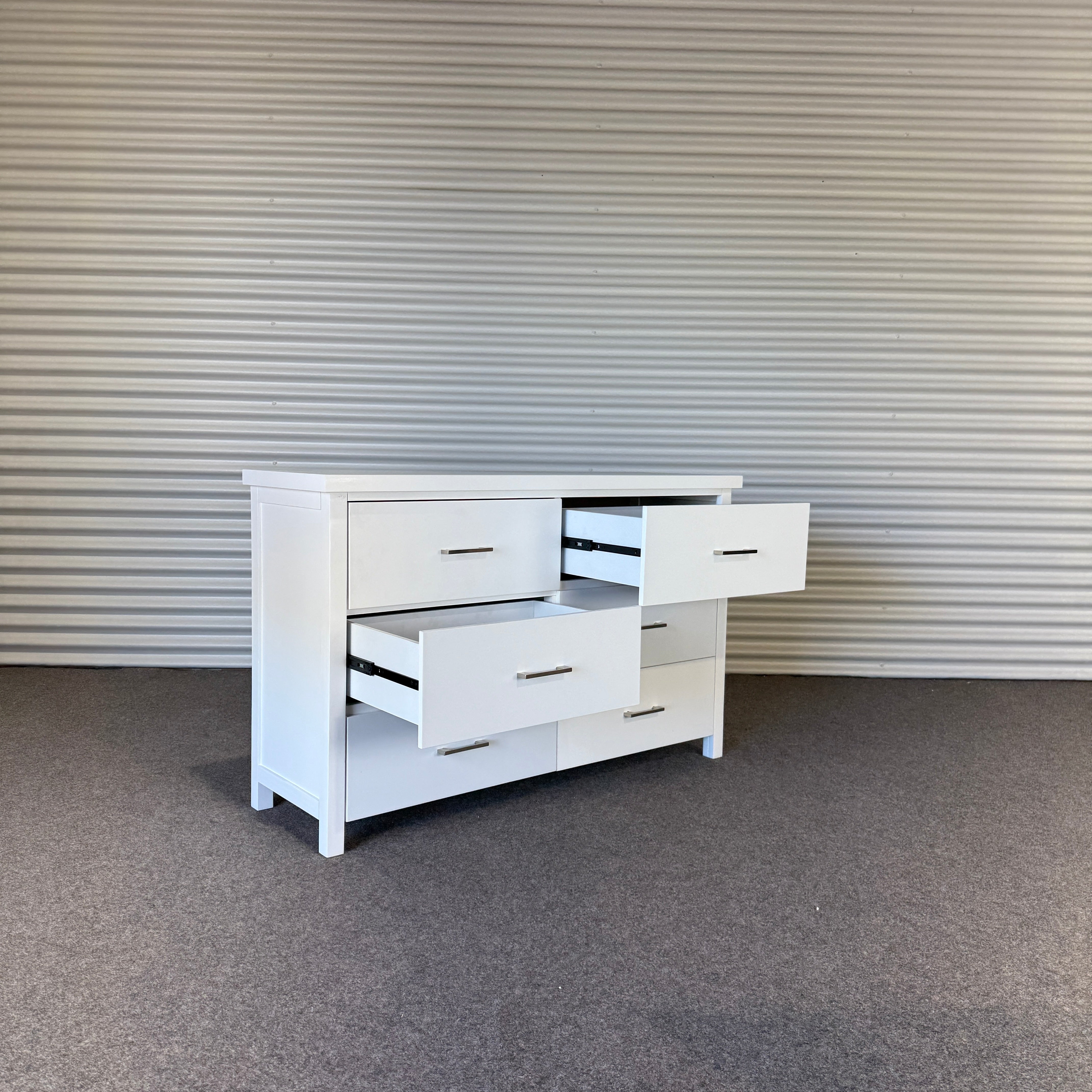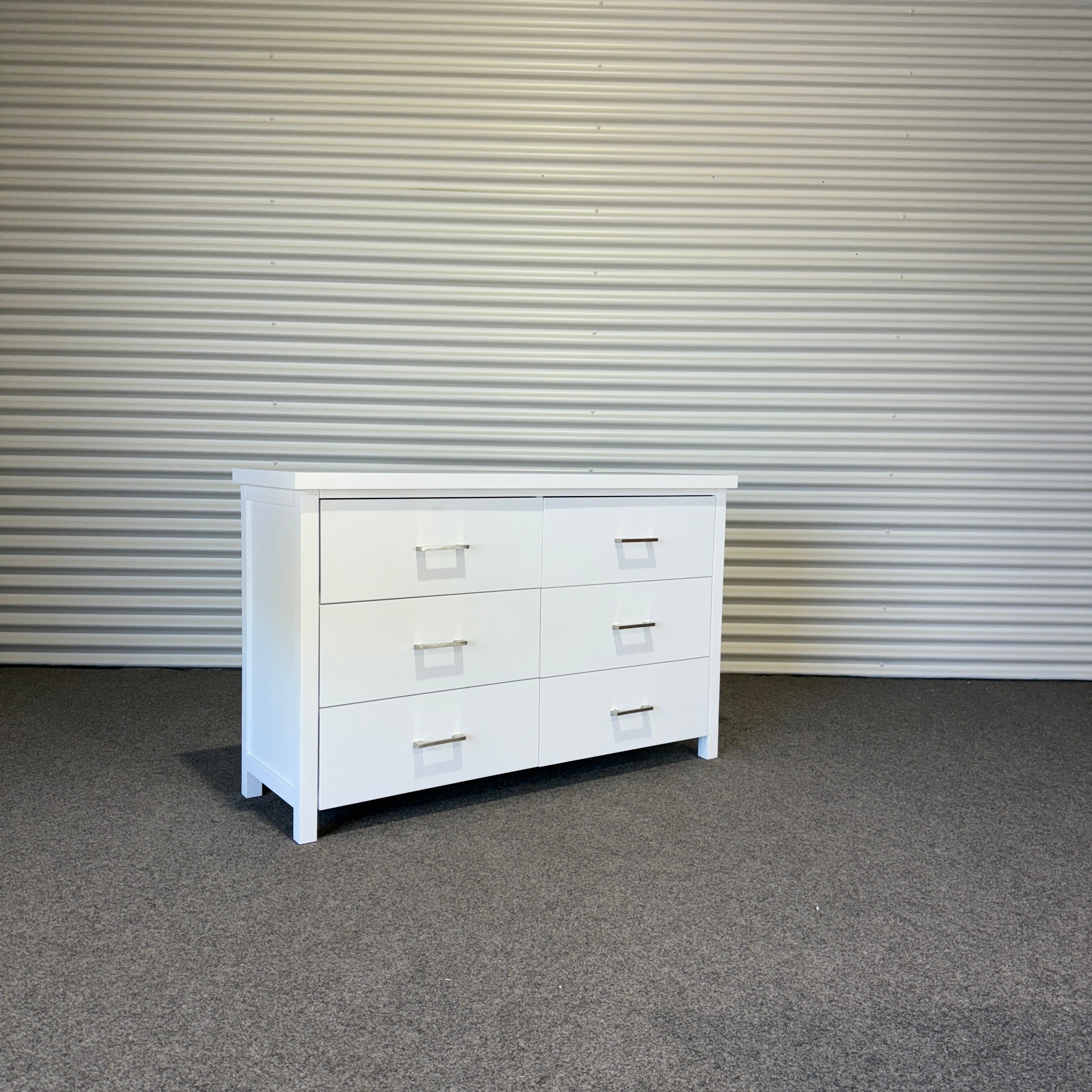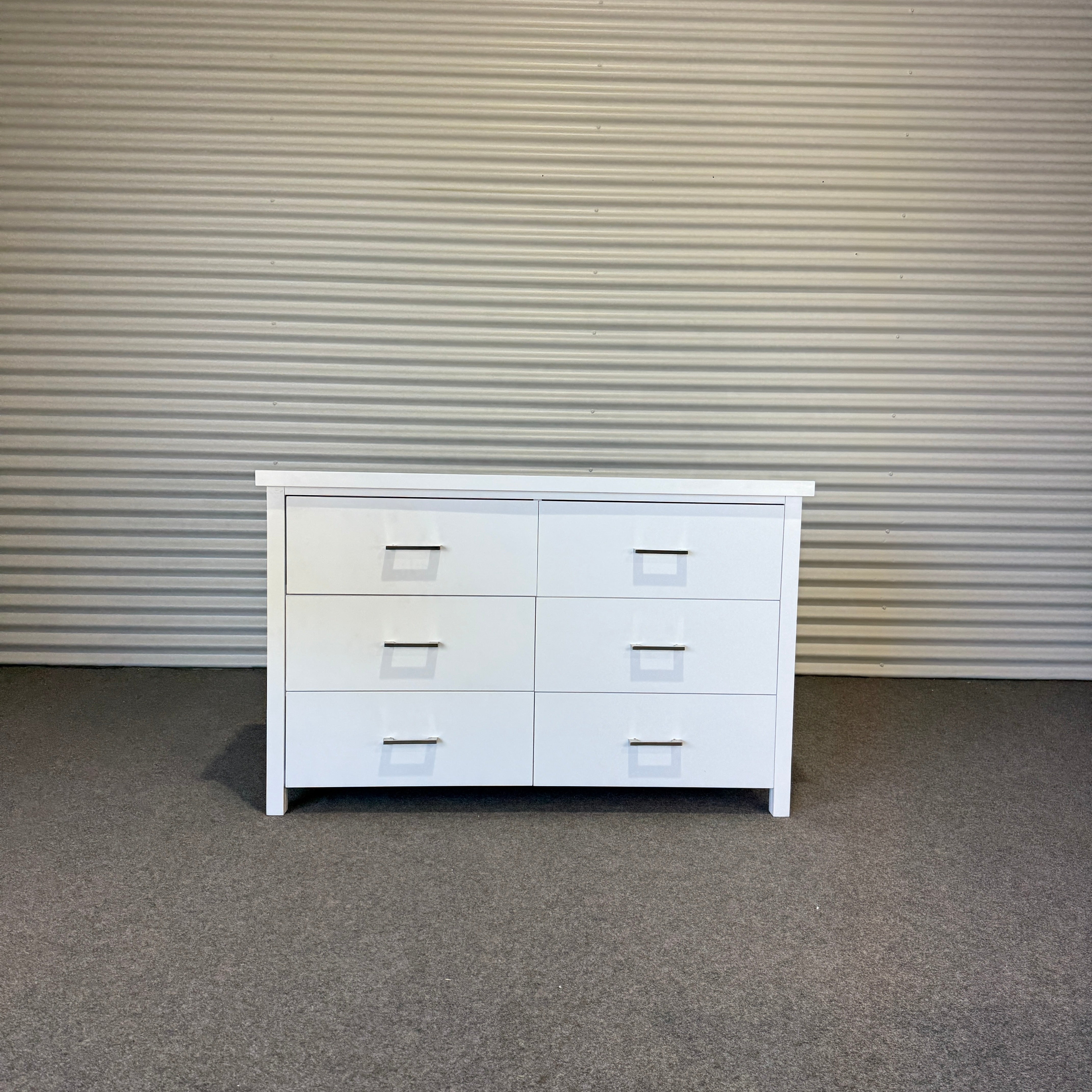 Brighten your bedroom with the timeless White 6-Drawer Lowboy — a simple, functional piece that never goes out of style. Its crisp white finish and clean lines make it a perfect fit for both classic and modern spaces.