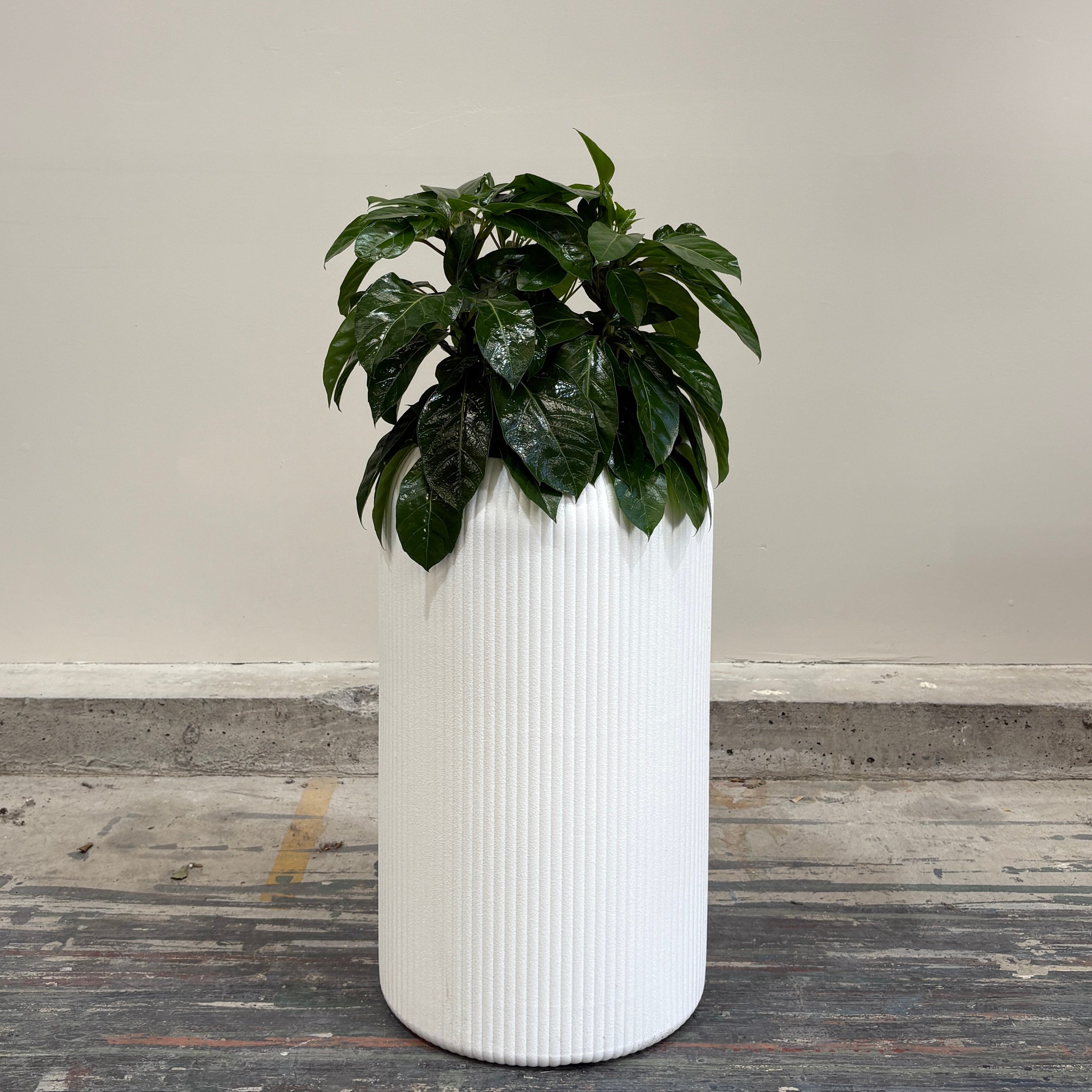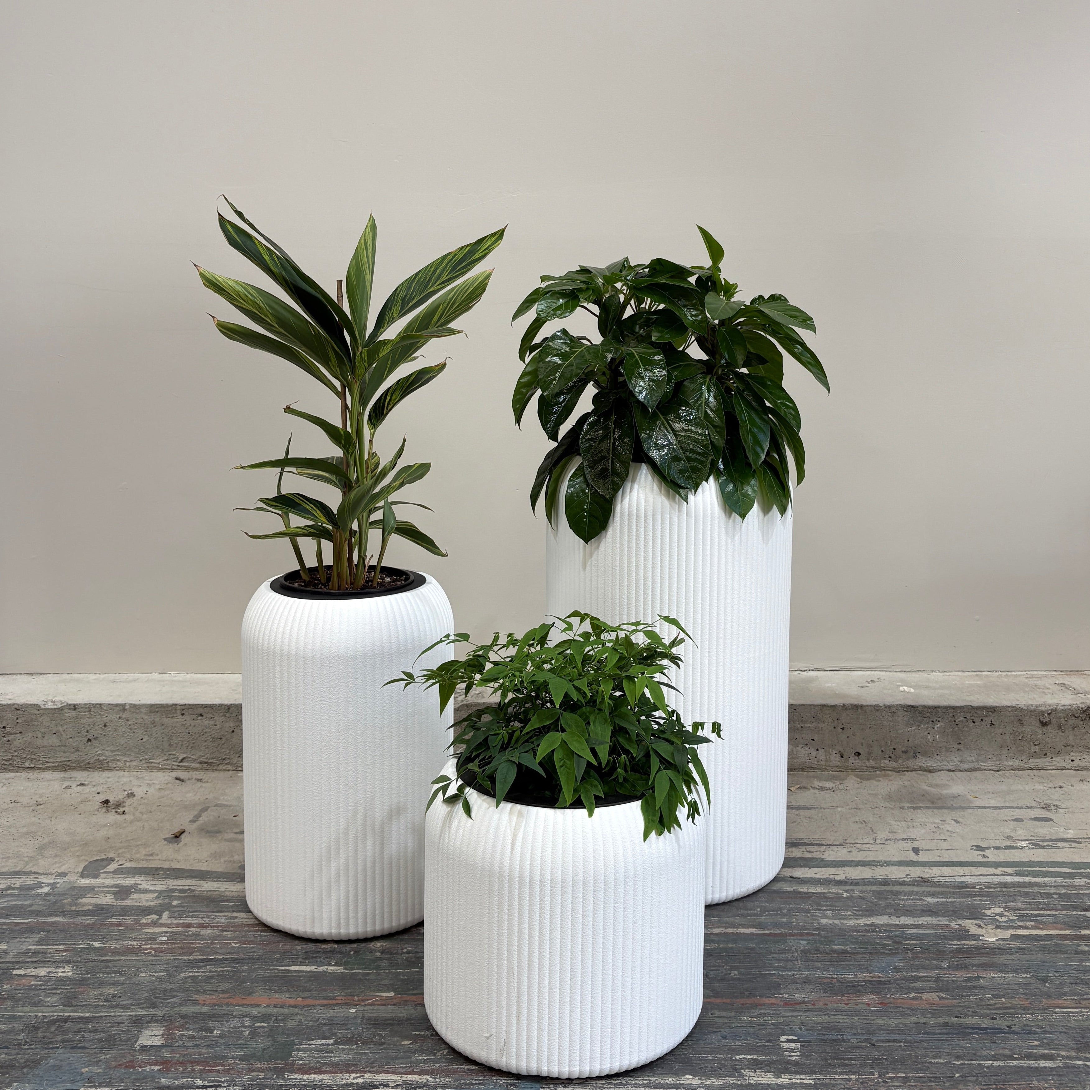 Bring a bit of fresh style (and oxygen) into your space with these sleek white ribbed planter pots. Lightweight, modern, and clean — they look good everywhere from your lounge to your patio.